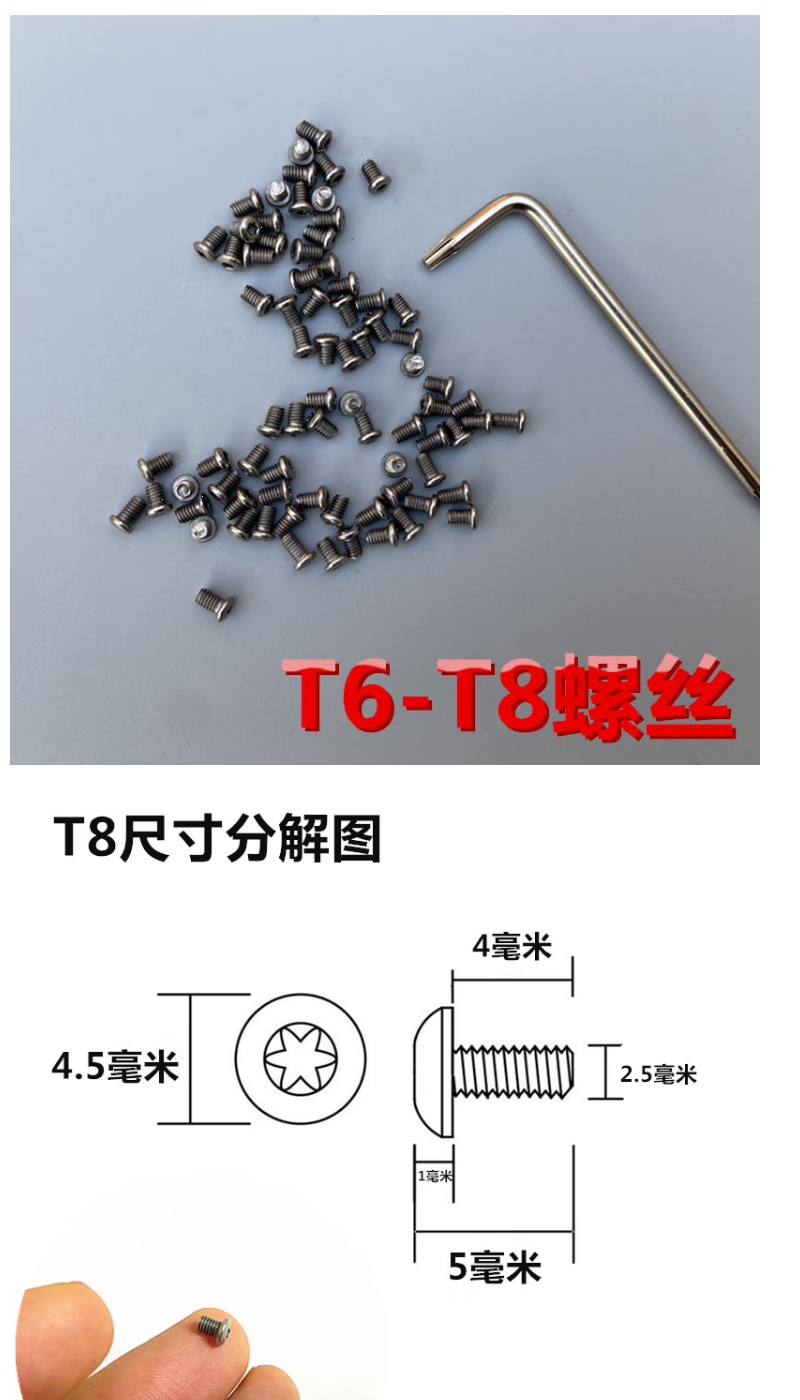 Vinoa independent T6 plum blossom screw T8 knife bar screw butterfly knife repair screw folding knife back screw cutter screw T6 to T8 5 pieces each + 1 wrench