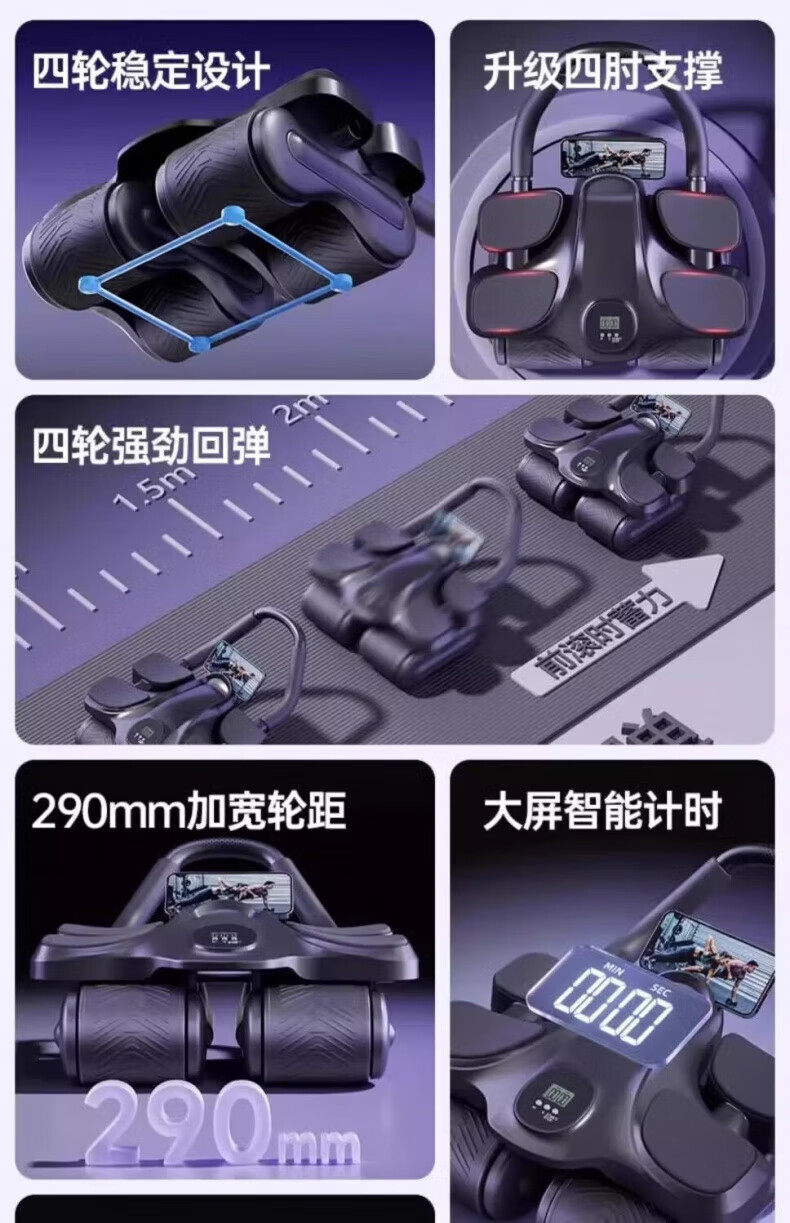 Sawang German quality abdominal wheel, automatic rebound elbow support, four-wheel abdominal muscle training tool for men and women, household abdominal curling and slimming belly, flagship counting model - black abdominal wheel + abdominal wheel pad