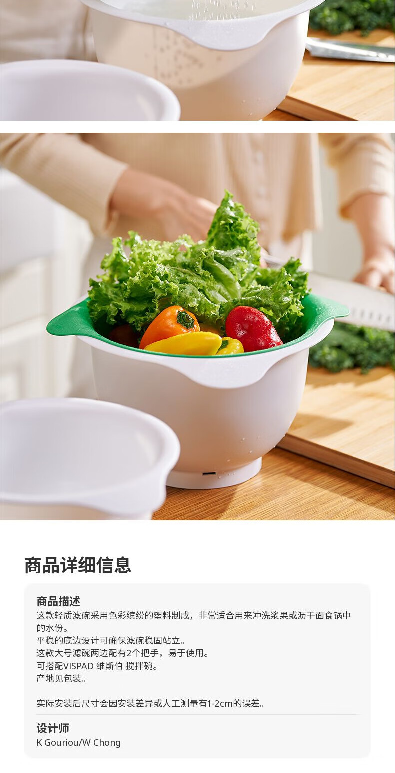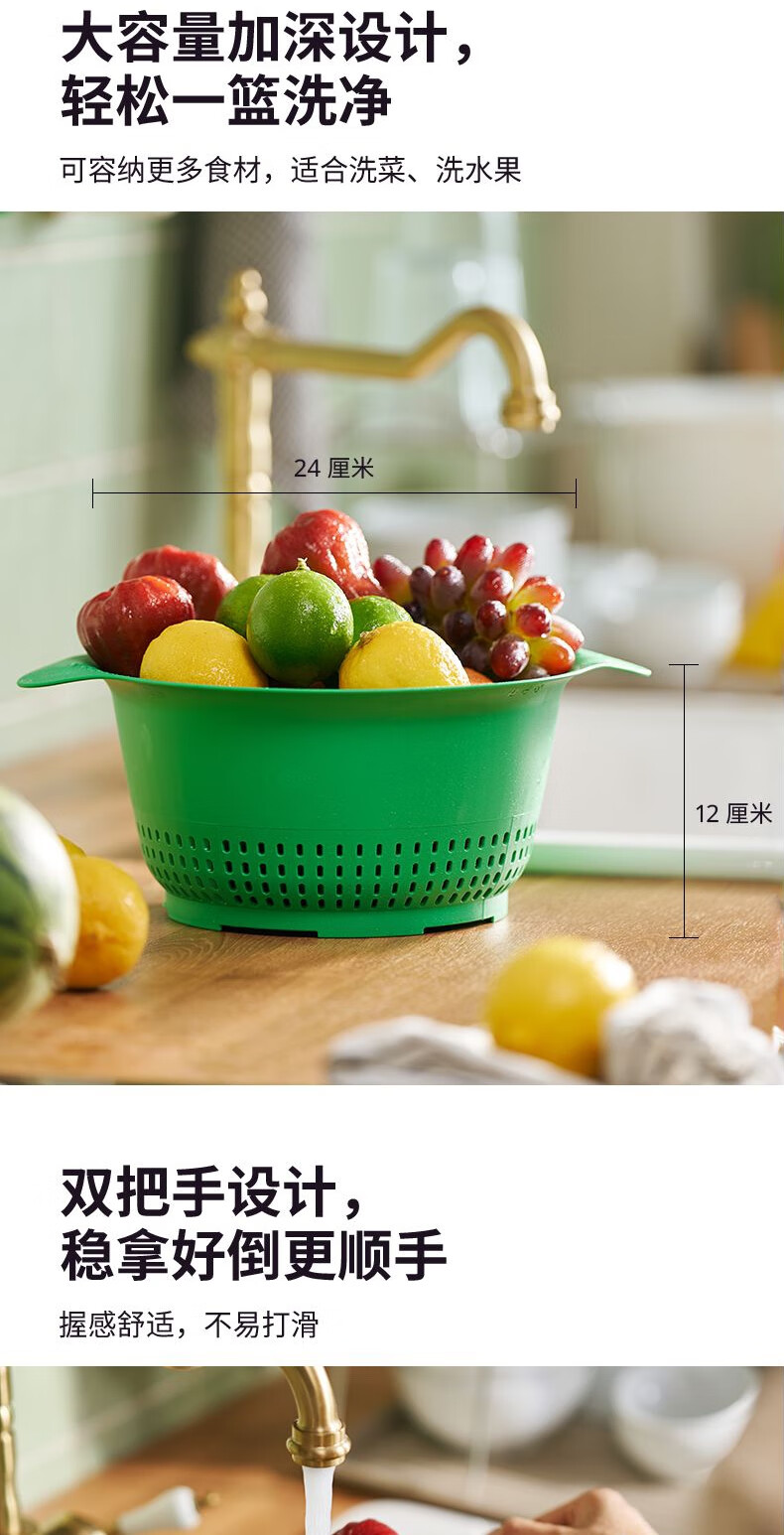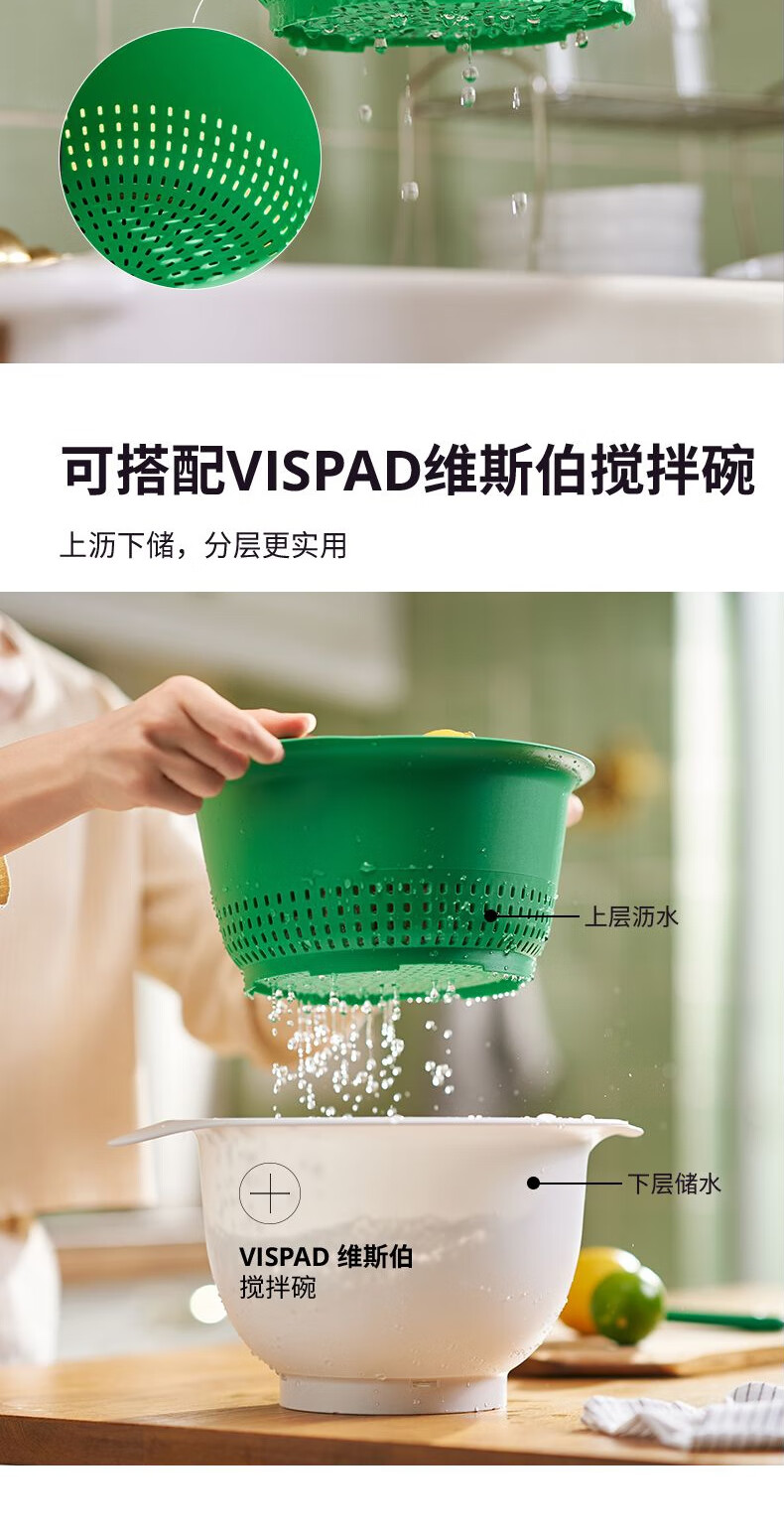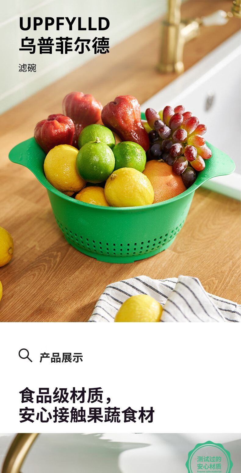 IKEA (IKEA) UPPFYLLD Upfield colander, washing bowl, plastic drain basket, drain basin, vegetable basin, colander, bright green 24cm