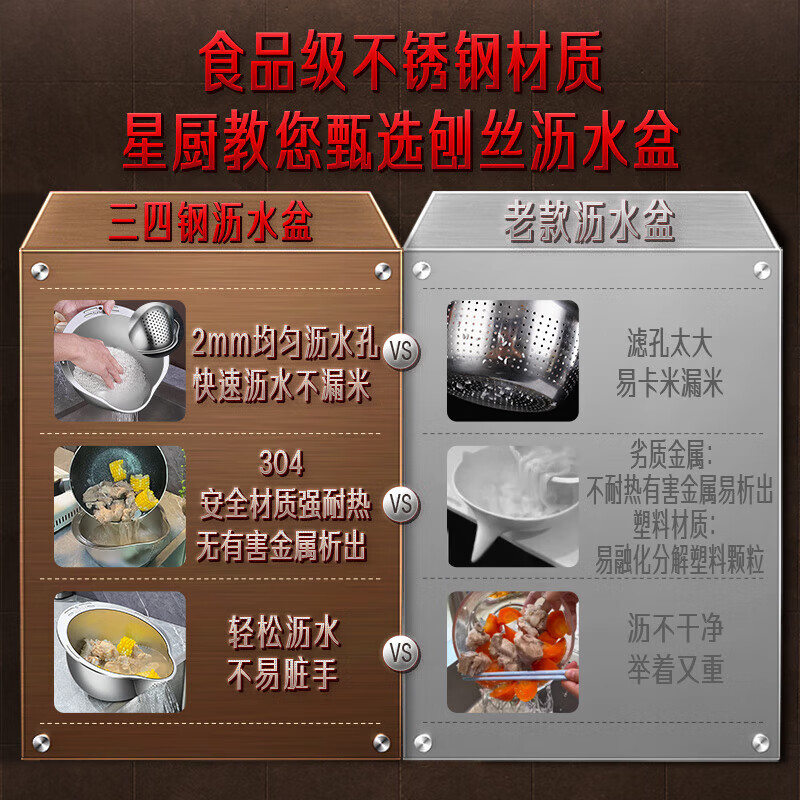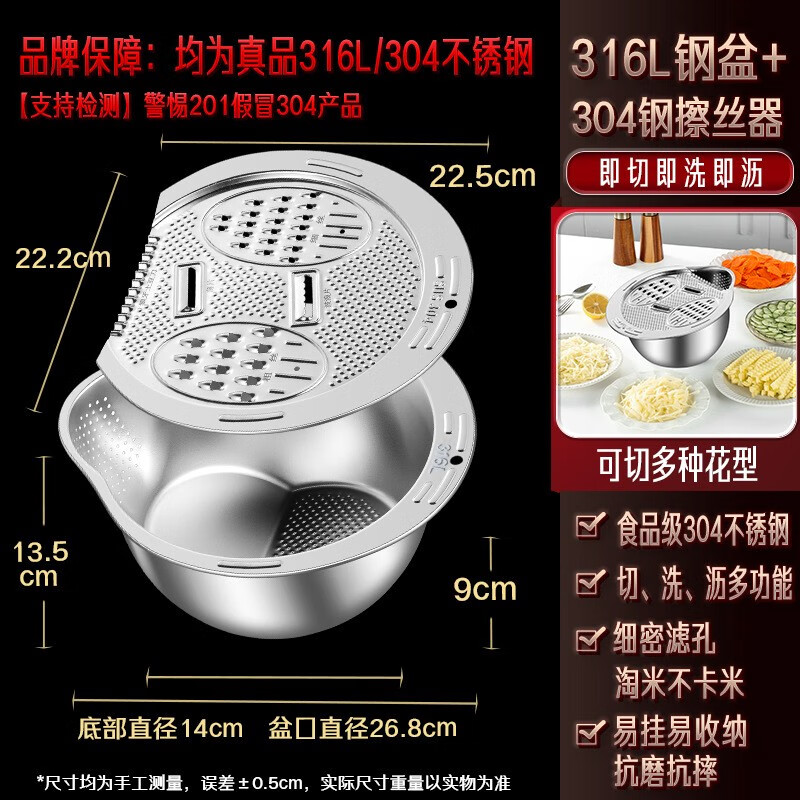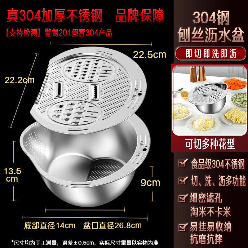 SSGP 304 food-grade stainless steel multifunctional vegetable cutter 304 Wolf tooth potato grater kitchen grating drain basket basin 304 steel drain basin + 304 steel grating plate