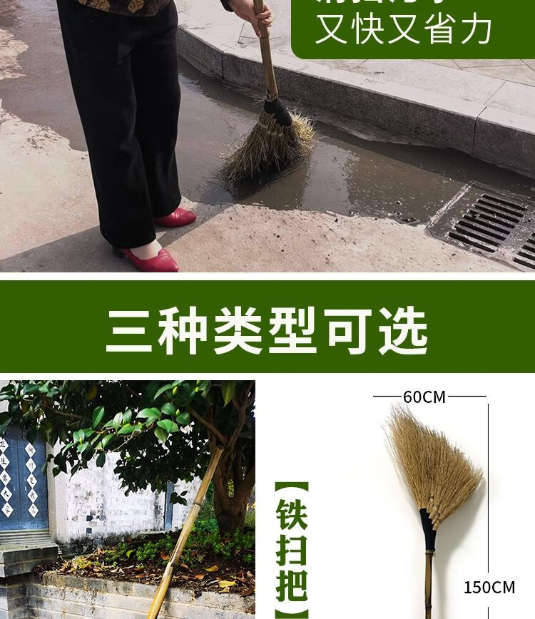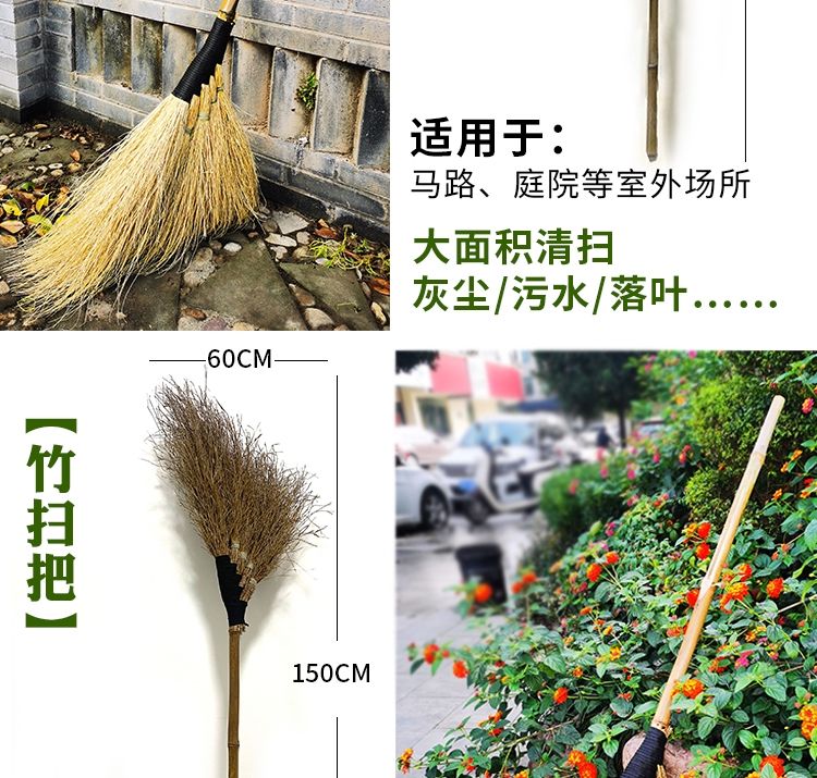 Bamboo broom outdoor special handmade large broom household courtyard broom broom workshop iron broom yard large broom grass broom 2 thickened and durable