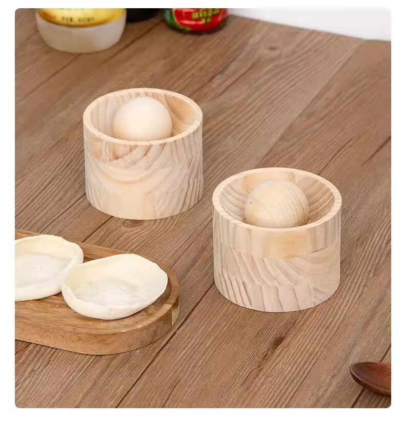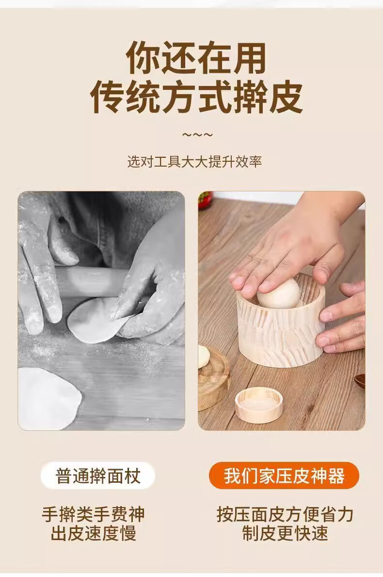 Man Gong Dumpling Skin Presser, 200 household dumpling skin presses per minute, wooden round dumpling rolling device, blessing, wealth and longevity seal, 4 pieces in total