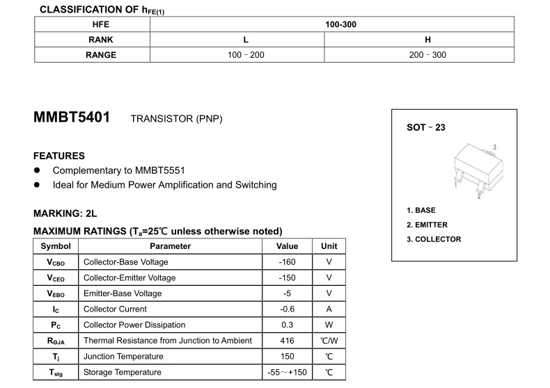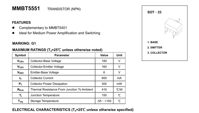 MMBT3904 5551 39062N5401 transistor 1AM2AG12L patch SOT23NPN/PNP MMBT5551 silk screen G1 (50 pieces) No specifications