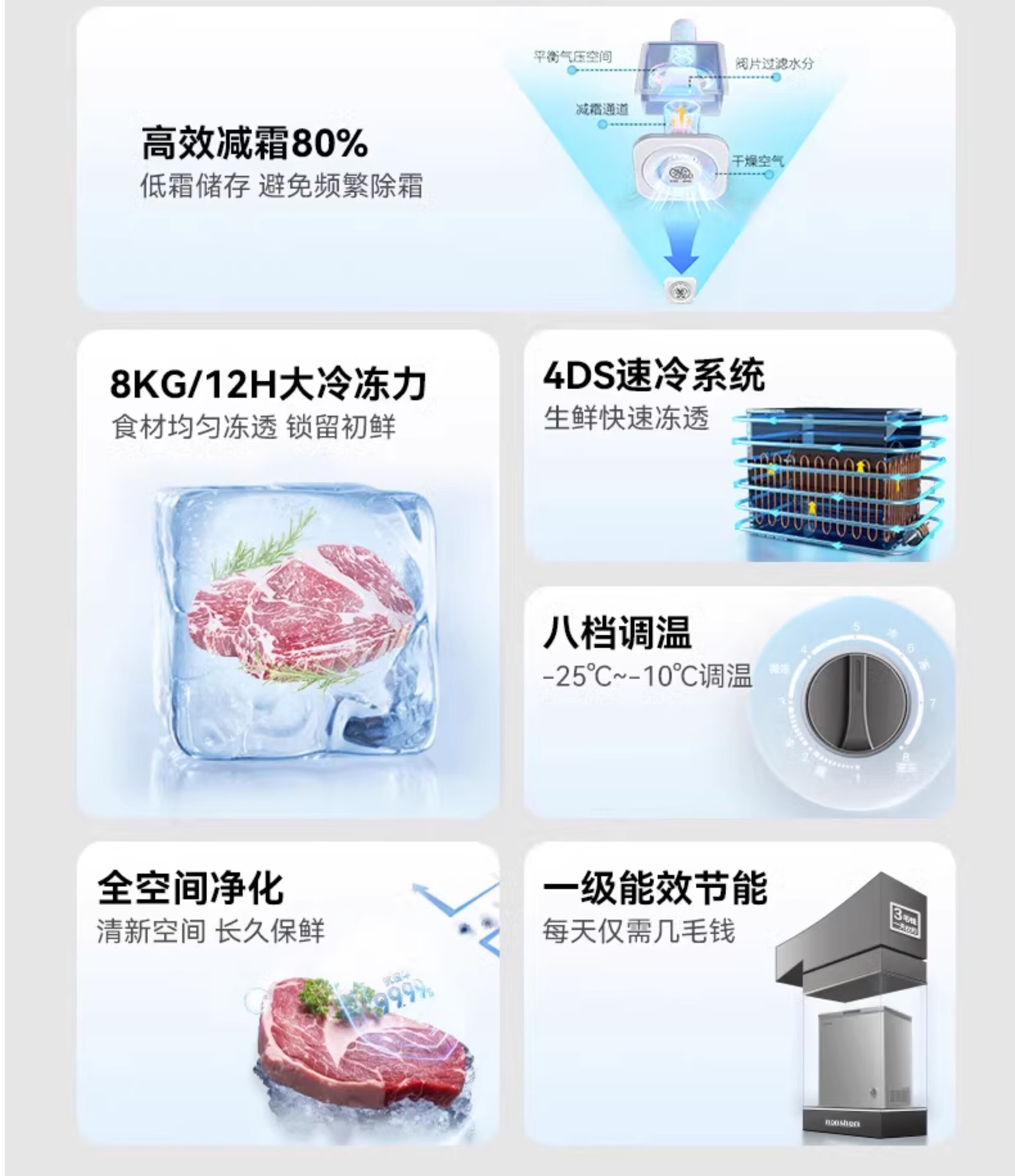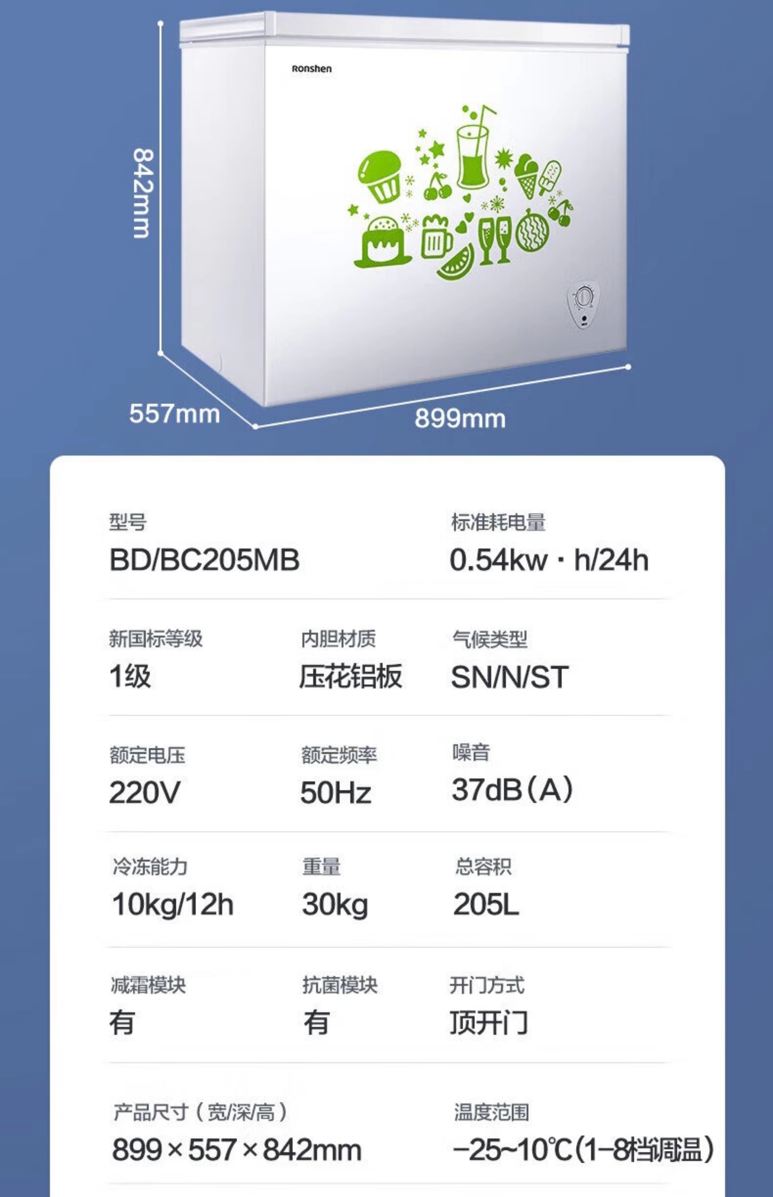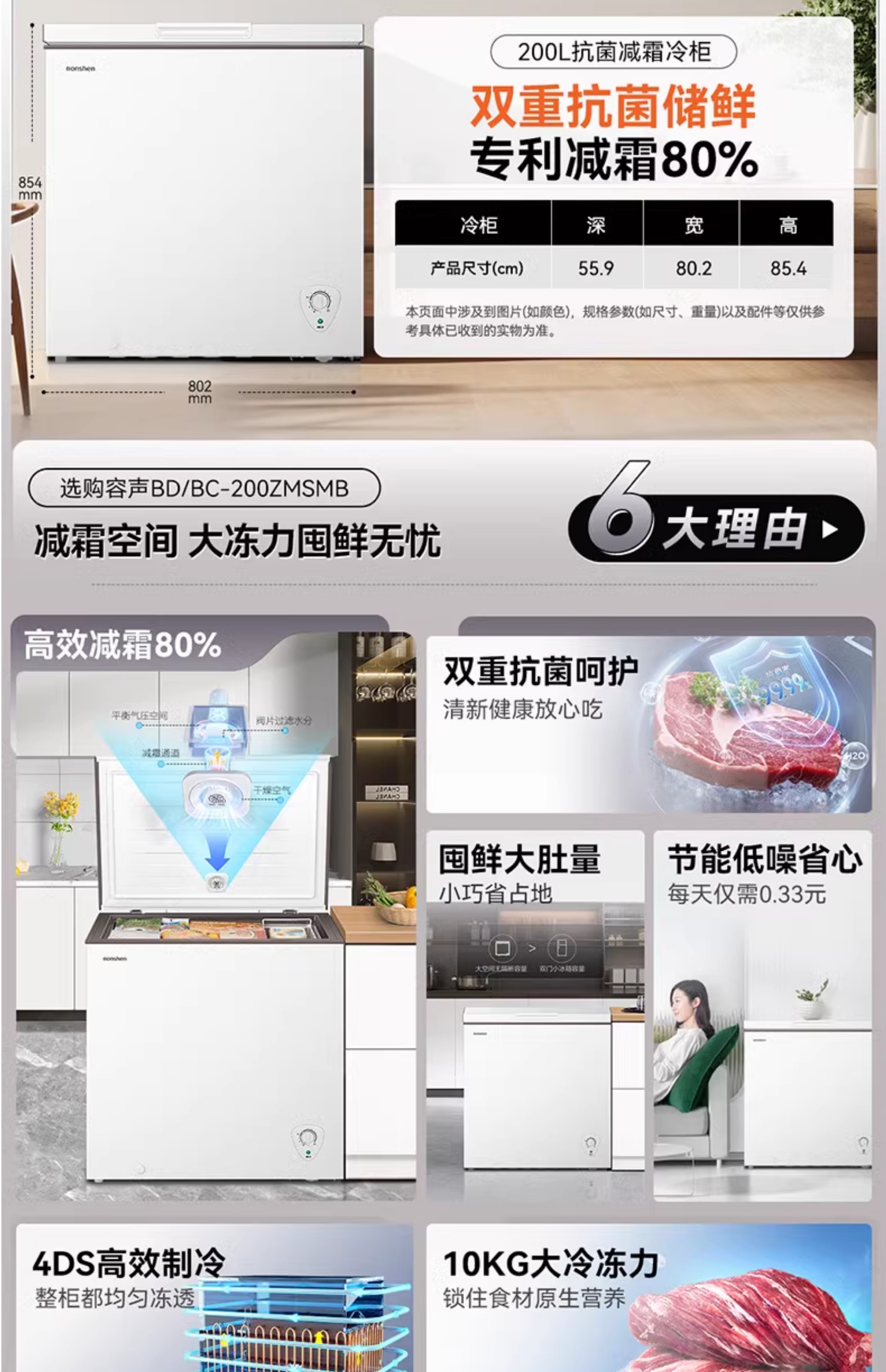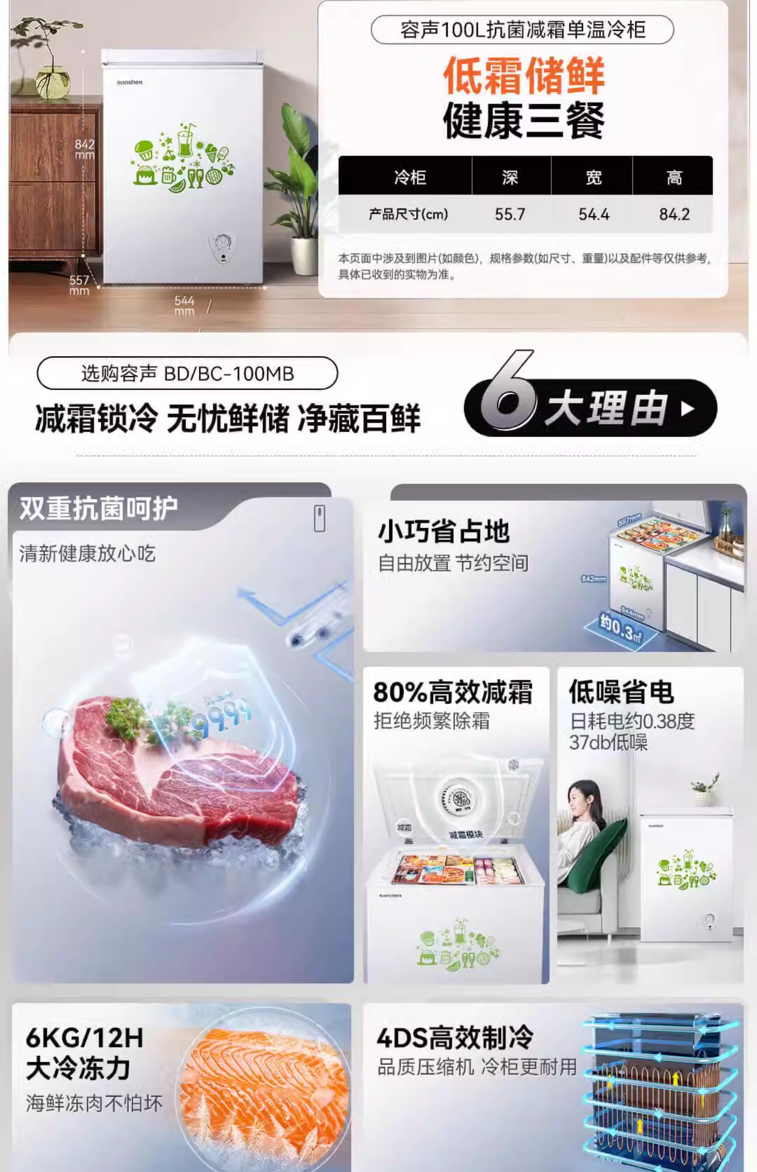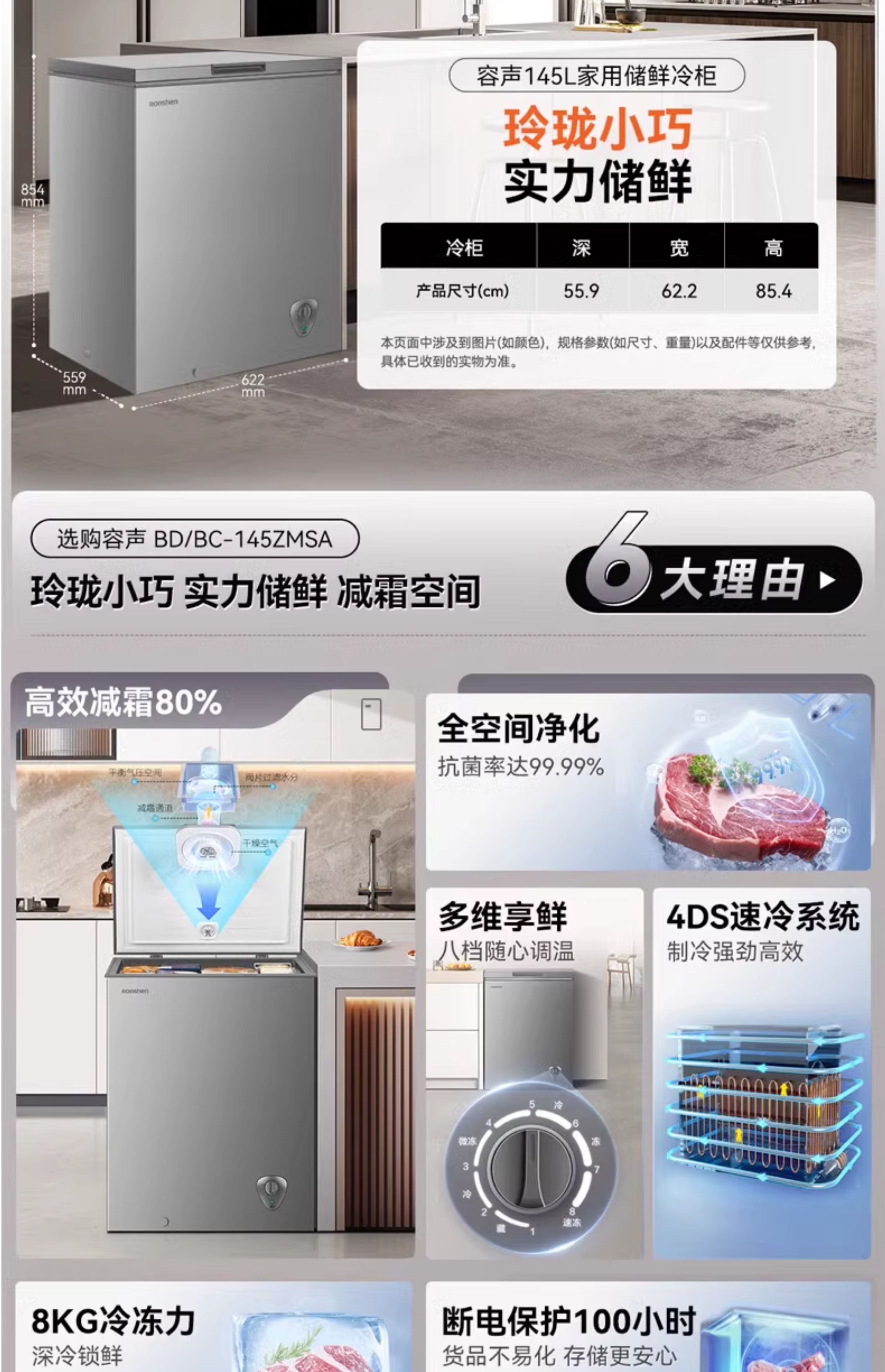 Rongsheng household freezer 143/249/300/506 liters 1.64 meters long horizontal single temperature/dual temperature energy-saving frost-reducing freezer single temperature 506L -36 degrees deep cold fresh-locking freezer