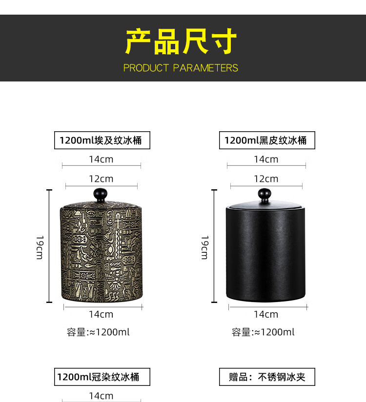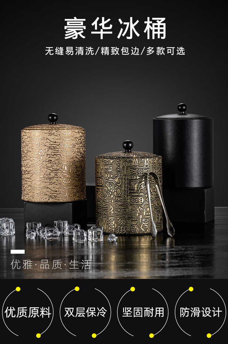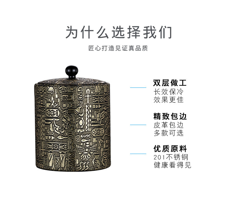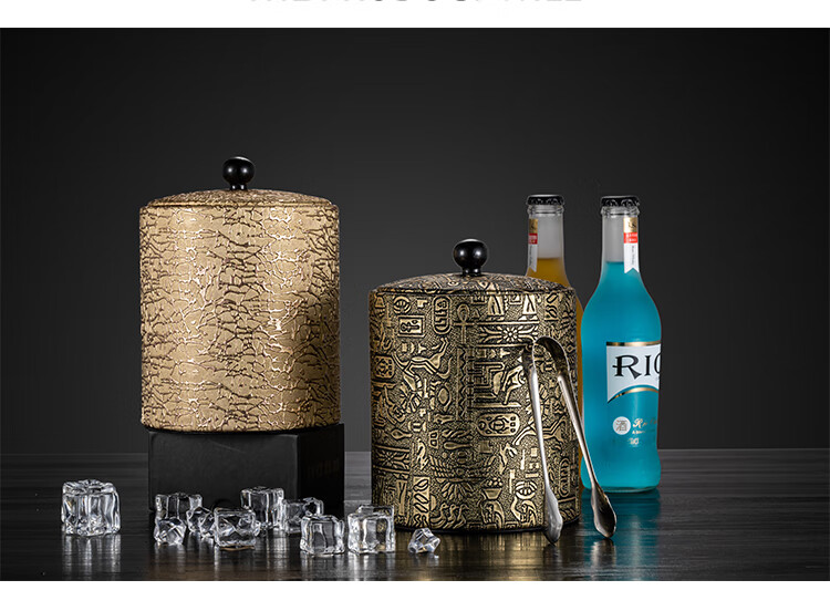 MUMU official authentic 201 stainless steel ice bucket home ktv bar champagne beer bucket large capacity ice storage bucket Egyptian pattern ice bucket 1200ml