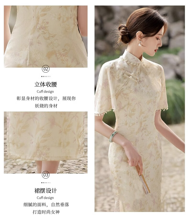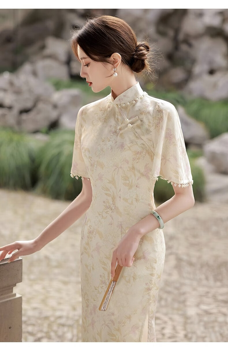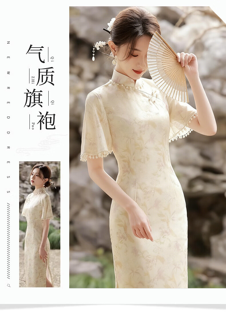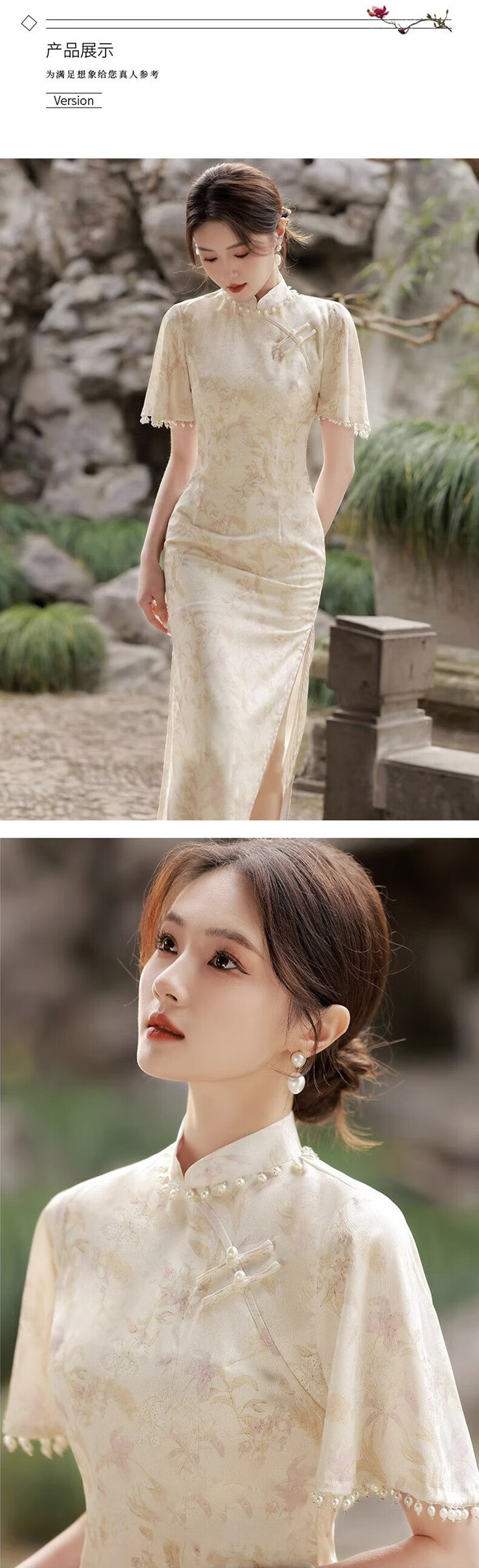 Bangbo Shi New Chinese Style Improved Cheongsam Women's 2025 National Style Elegant Long Slit Dress Slim Fit New Year's Gift New Chinese Style Improved Cheongsam Color S Size (Suitable for 85 Jin-110 Jin)