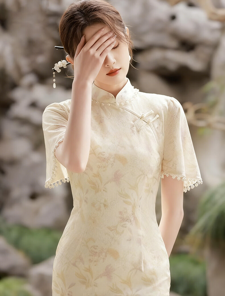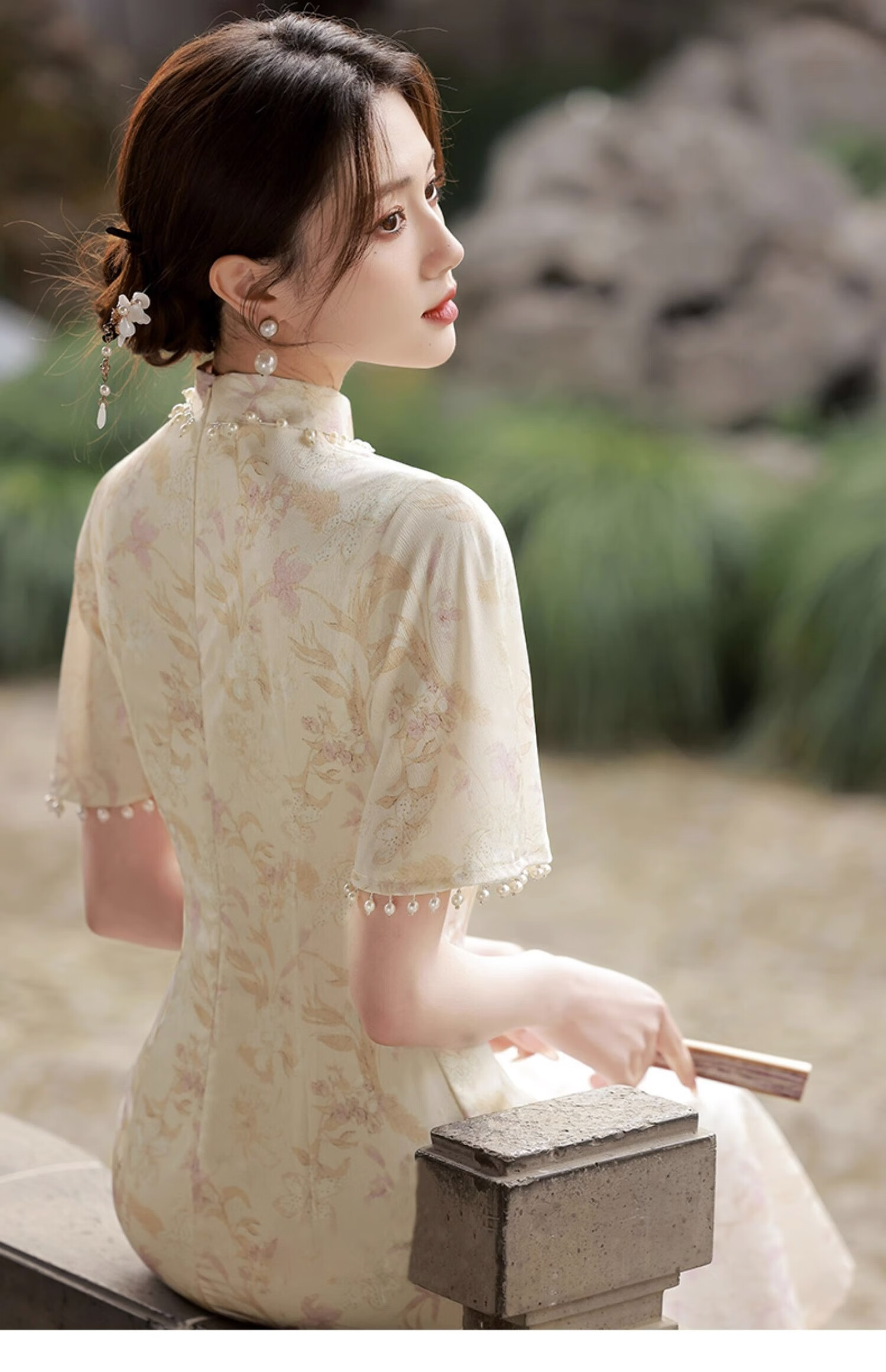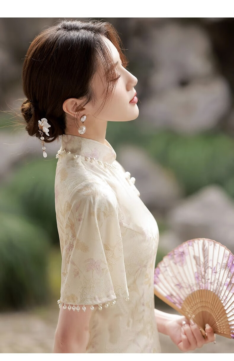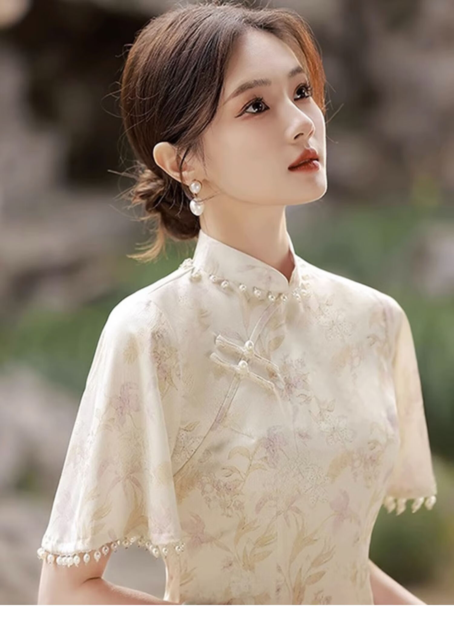 Bangbo Shi New Chinese Style Improved Cheongsam Women's 2025 National Style Elegant Long Slit Dress Slim Fit New Year's Gift New Chinese Style Improved Cheongsam Color S Size (Suitable for 85 Jin-110 Jin)