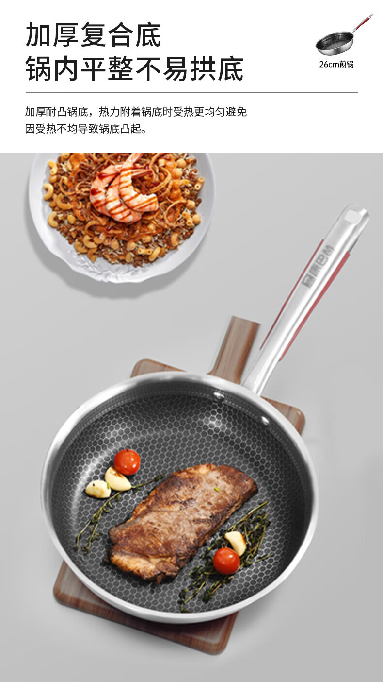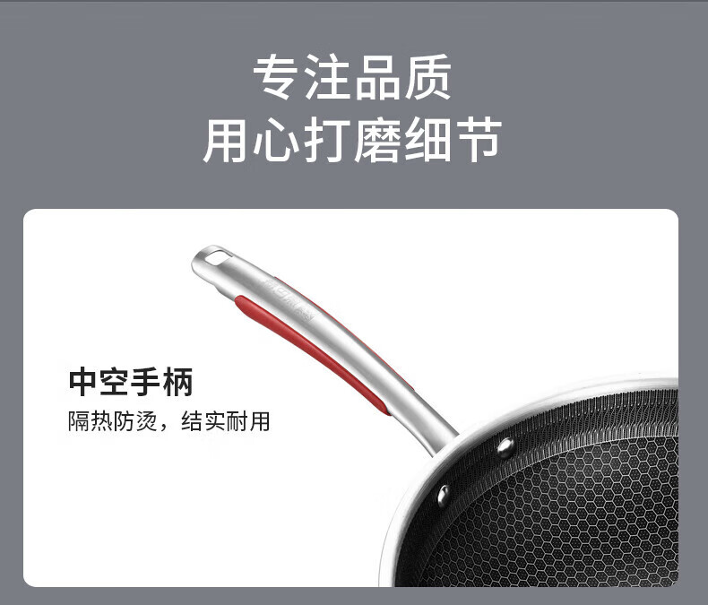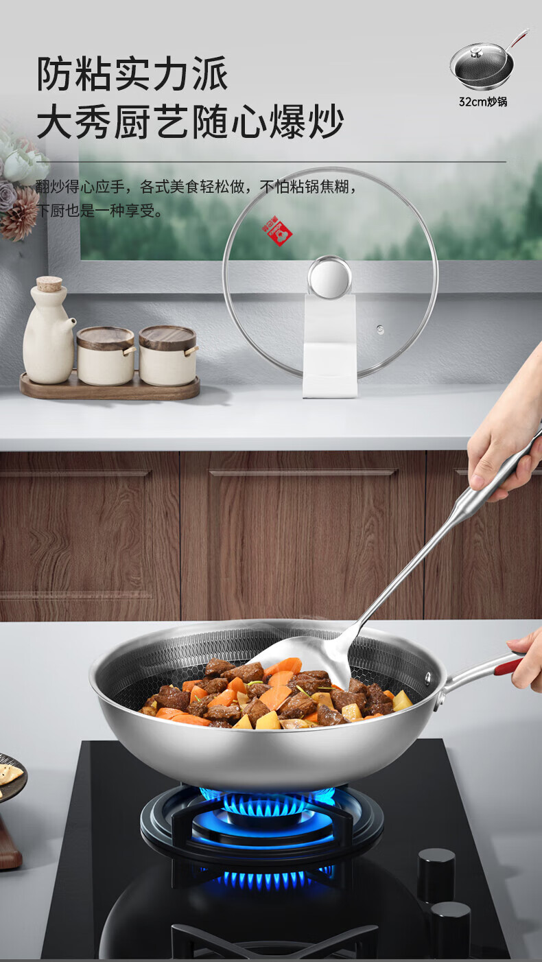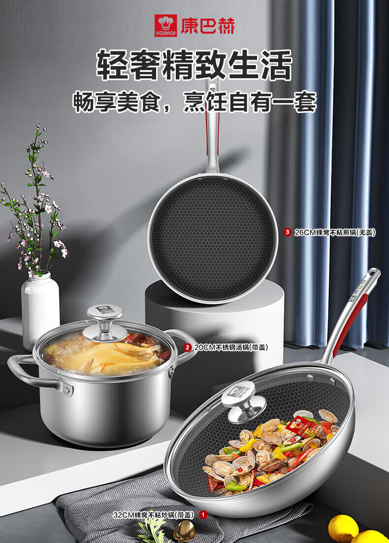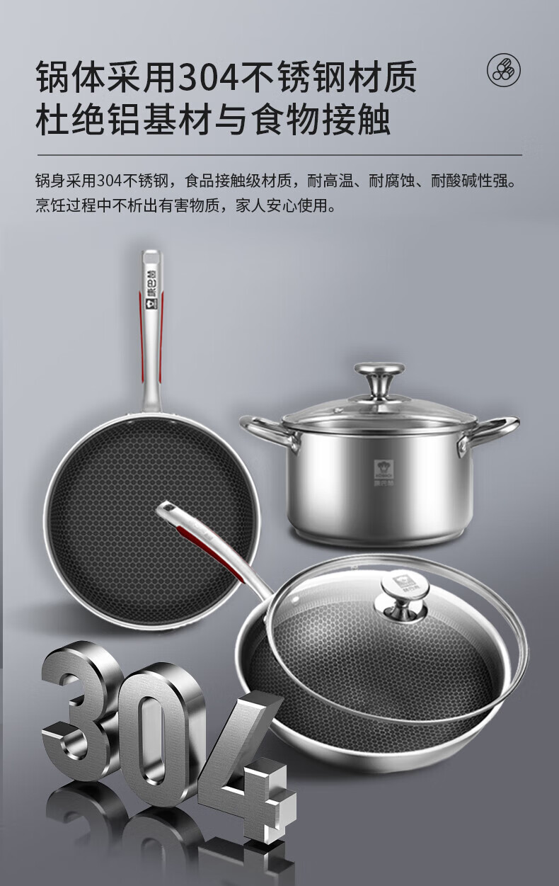 Konbach stainless steel honeycomb non-stick wok soup pot frying pan three-piece gift box set induction cooker gas universal wok gift box three-piece set soup frying pan 32cm