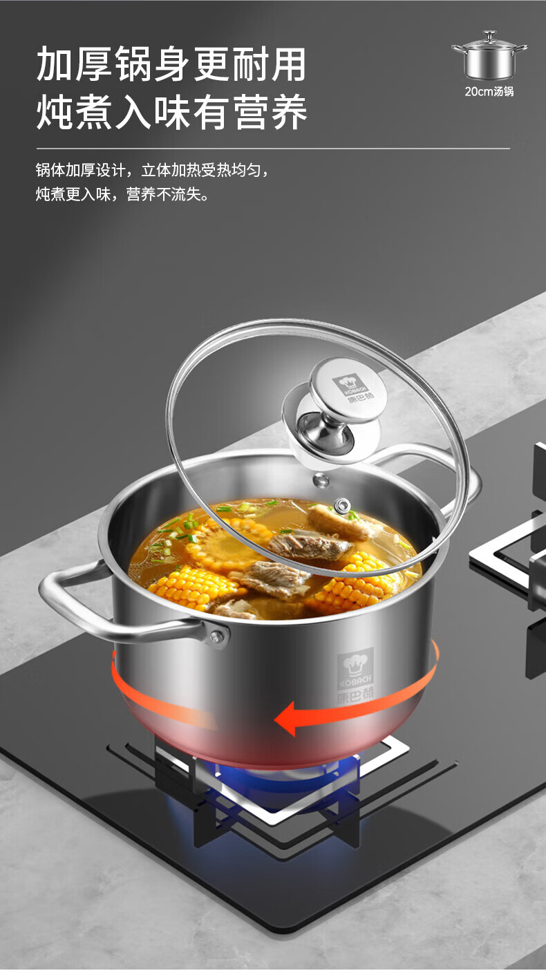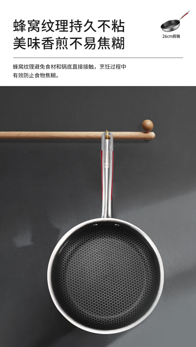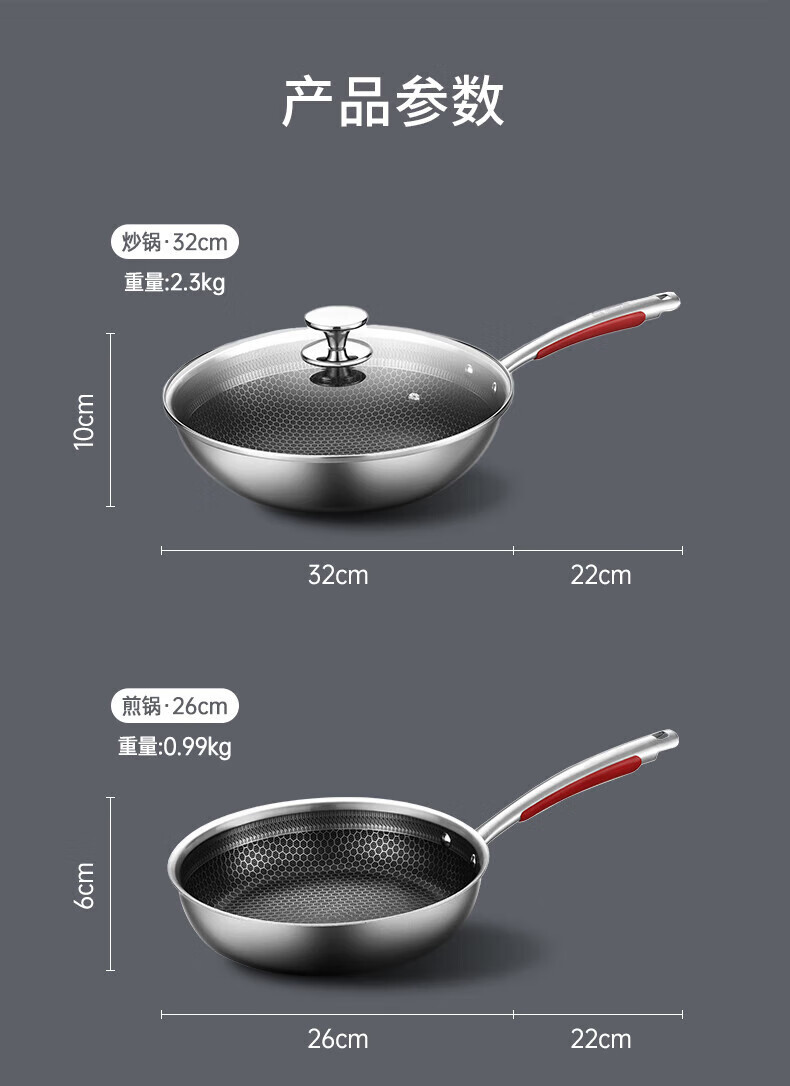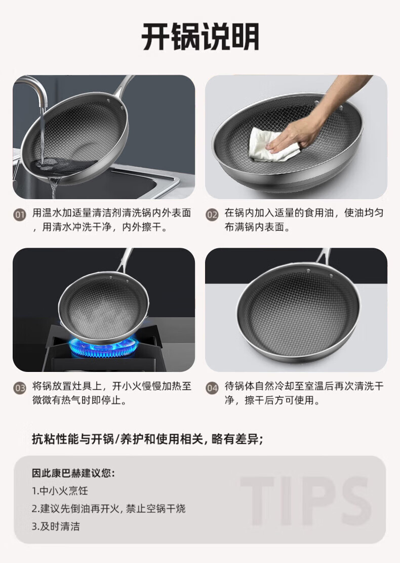 Konbach stainless steel honeycomb non-stick wok soup pot frying pan three-piece gift box set induction cooker gas universal wok gift box three-piece set soup frying pan 32cm