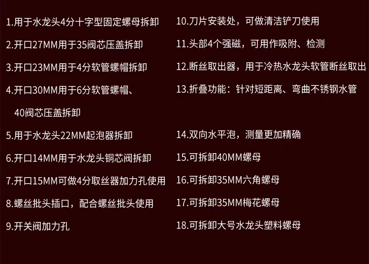 Zhewei multifunctional sink special wrench faucet plumbing installation artifact kitchen bathroom repair tool socket wrench upgraded twelve-in-one plug-in card installation