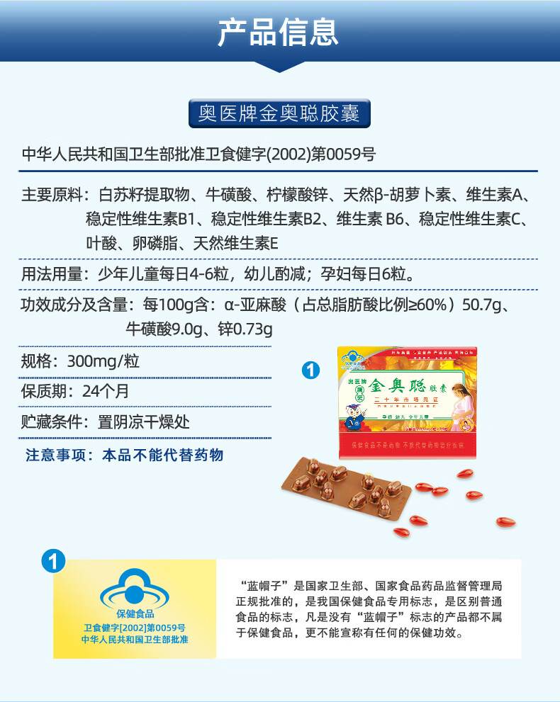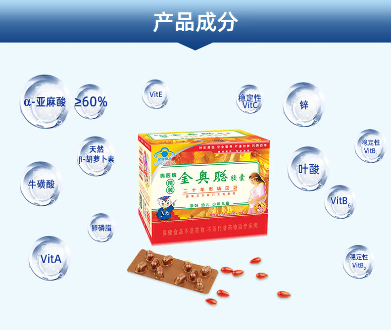Aoyijin Aocong Capsules have been officially approved for the market for 23 years. Pregnant women, young children and children's memory nutrition 300mg 30 capsules * 1 box. Platinum DHA has been marketed for 23 years to strengthen the brain and increase intelligence.