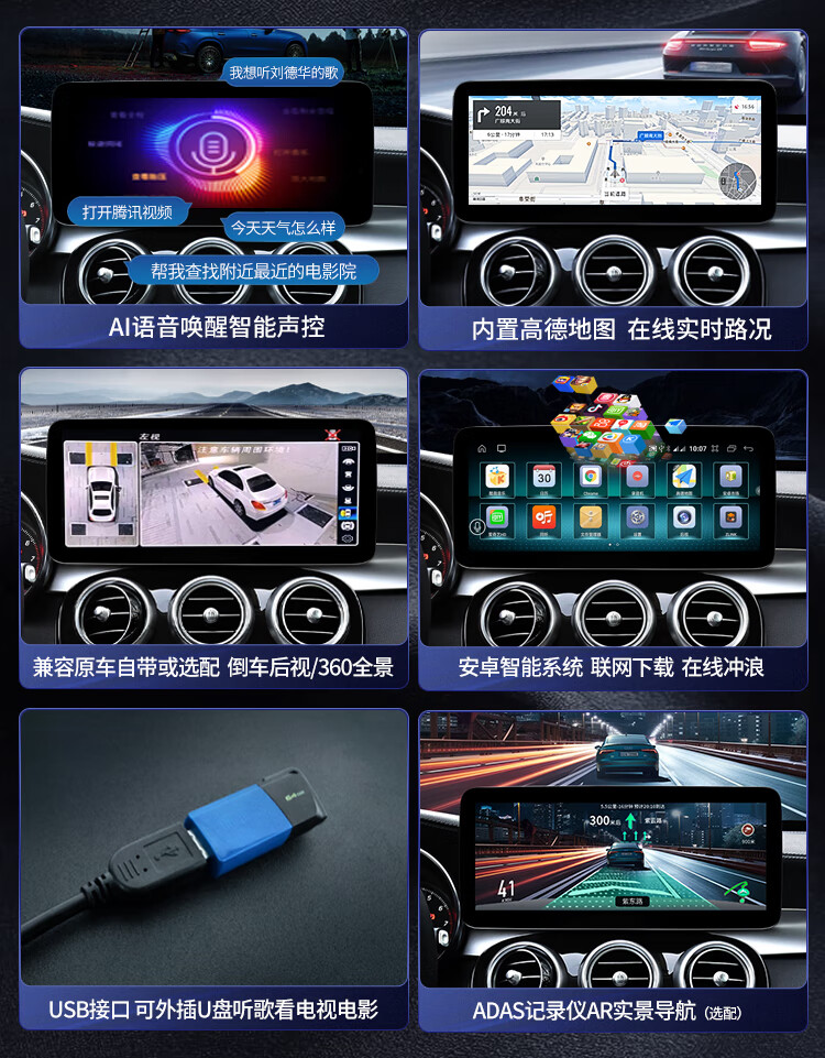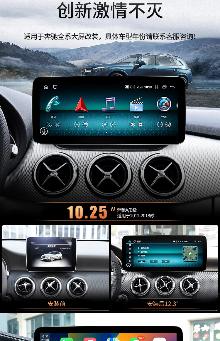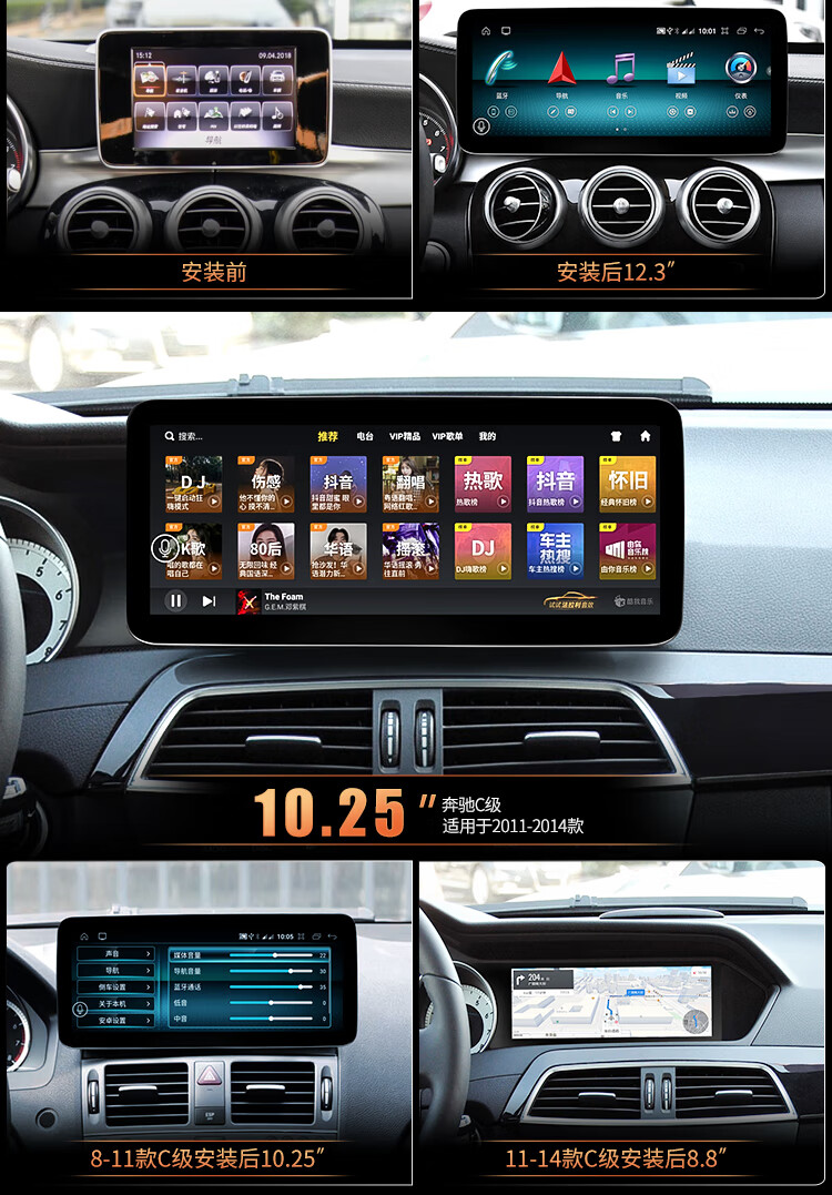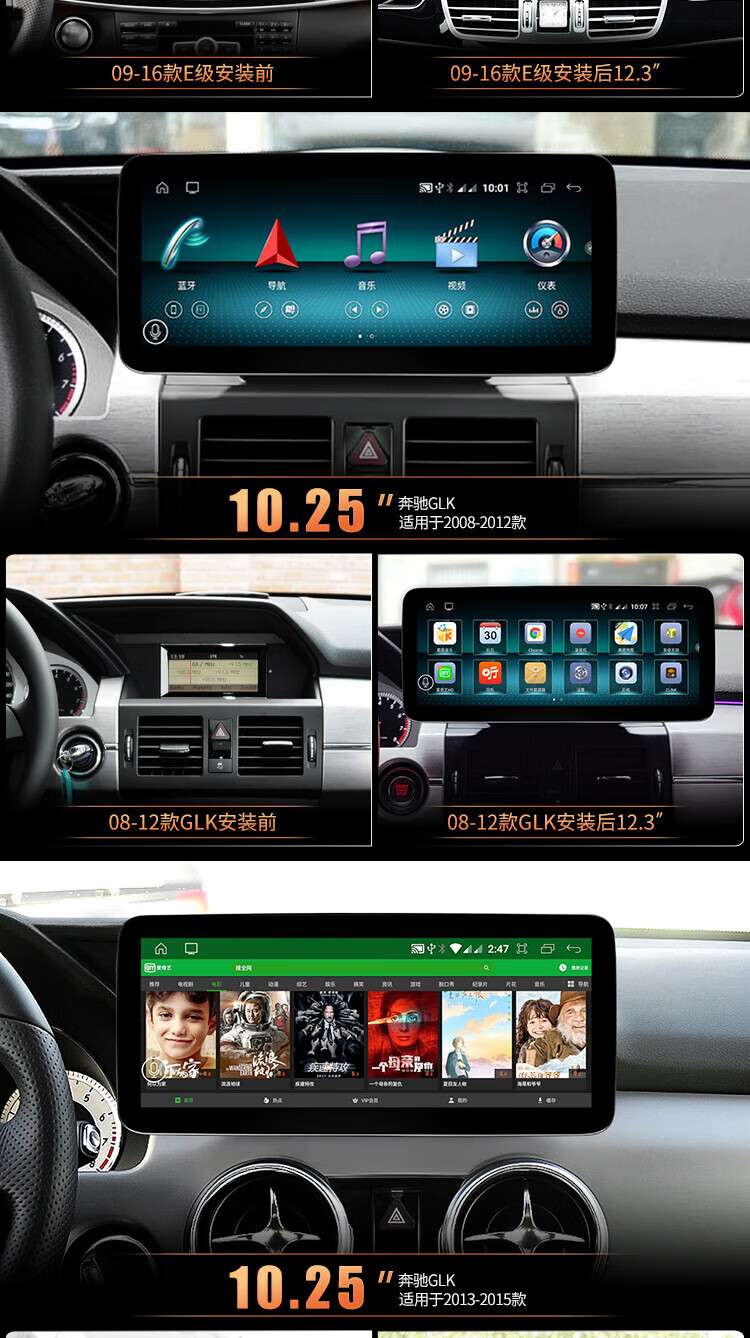 Shencheshield is suitable for Mercedes-Benz C200GLC/GLA/GLK/ABCE-class navigation modified central control large-screen reversing image all-in-one machine 19 2K ultra-narrow bezel Qualcomm 680 8+128 12.8 official standard configuration
