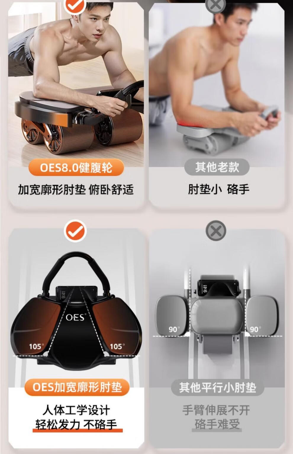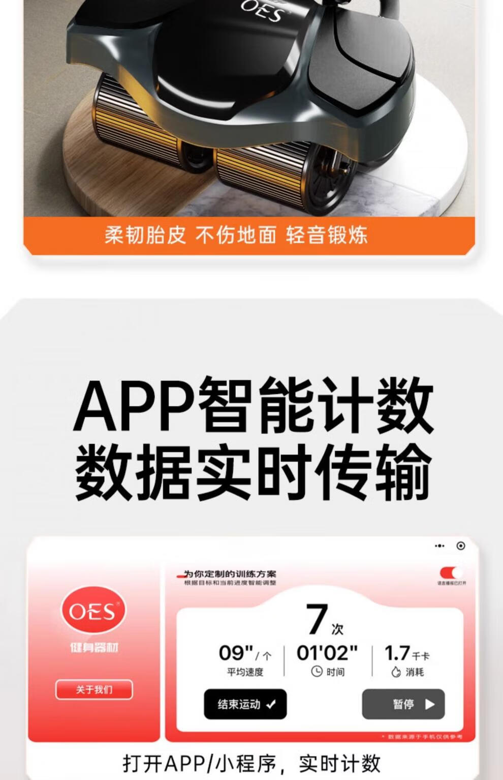 OES German Quality Abdominal Wheel Automatic Rebound 2025 New Abdominal Wheel Sports Equipment Abdominal Muscle Trainer Slim Widened Adjustable Elbow Support - Upgraded Smart Counting/Double Rebound/Stable