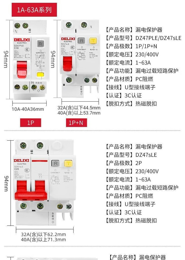 Open switch main air with leakage protector 63a household circuit breaker 220v circuit breaker 2p leakage protection 32a three-phase 2P circuit breaker 32A