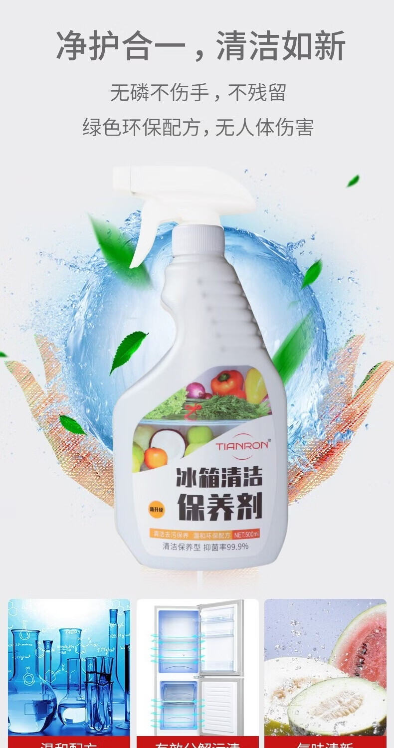 TIANRON refrigerator cleaning and maintenance agent, stain remover, household appliances, refrigerator, freezer, dishwasher, oven, microwave oven, stain remover, vegetable stain cleaning and sterilizer, housekeeping service commercial model, 1 box * 30 bottles (including 30 nozzles/box)