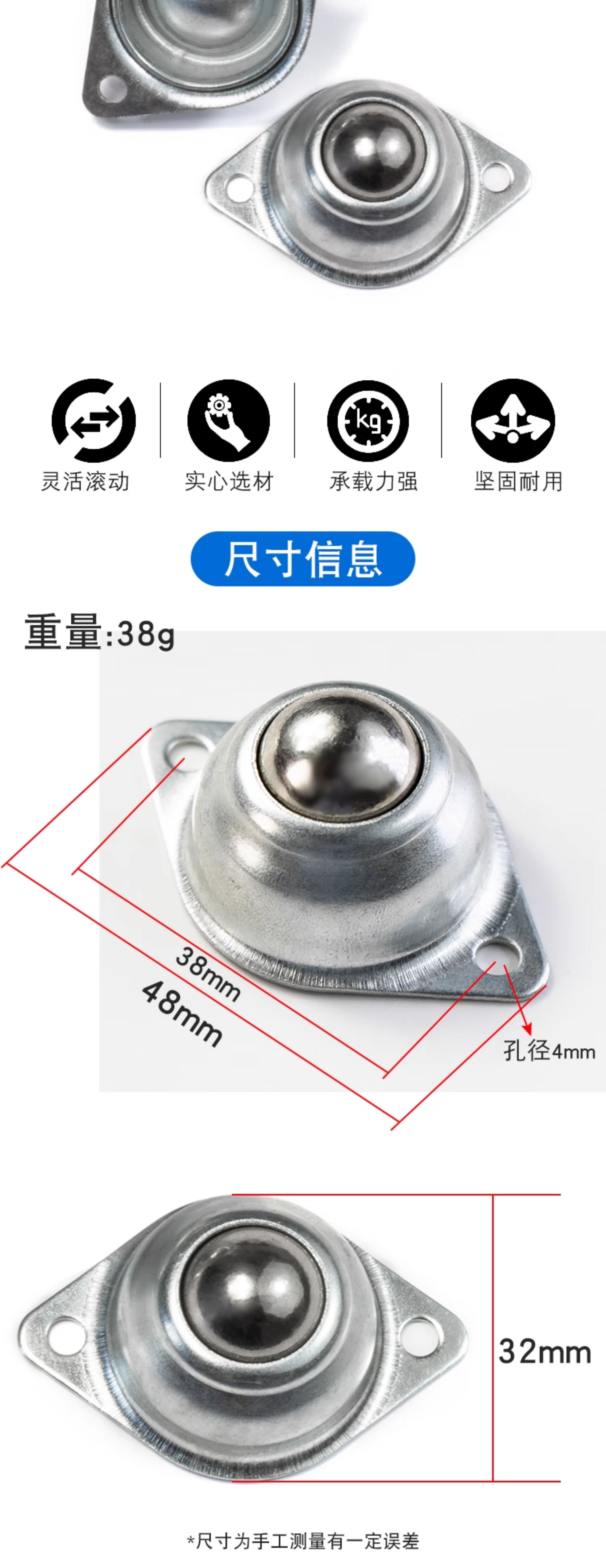 Bull's-eye universal wheel carbon steel bull's-eye ball wheel spherical small mobile base caster 16 cm diamond-shaped universal ball bull's-eye universal wheel