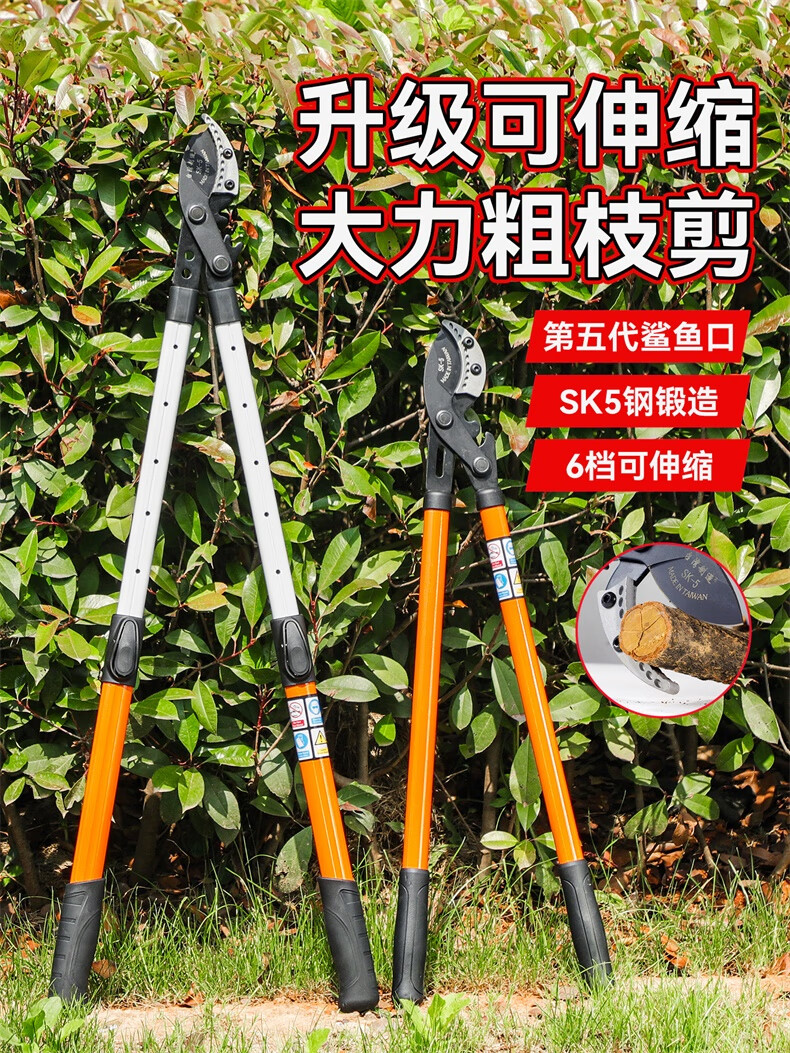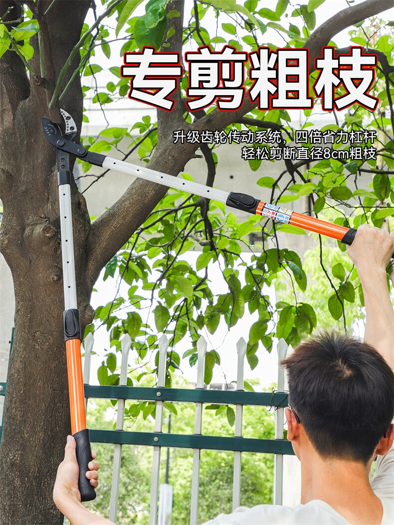 牛享剪枝剪刀修枝果树专用园艺树枝剪修剪神器省力修大枝强力粗枝剪刀 加粗铝杆鲨鱼齿 伸缩2