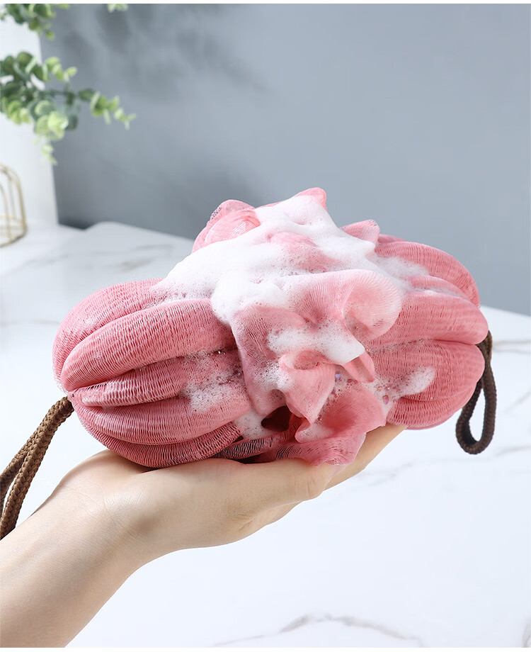 Fat Donglai's same style bath strips, bath flower balls, large size, non-scattering, super soft, plus bath towel, bath flowers, ladies' bathing and back rubbing, bathing and back rubbing two-in-one, pink non-scattering flowers