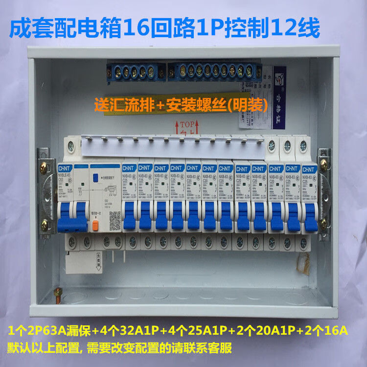 A complete set of air-open leakage protection integrated switch strong current box 16-circuit distribution box 1P and 2P set household distribution switch leakage concealed installation surface installation (finished product has been wired)