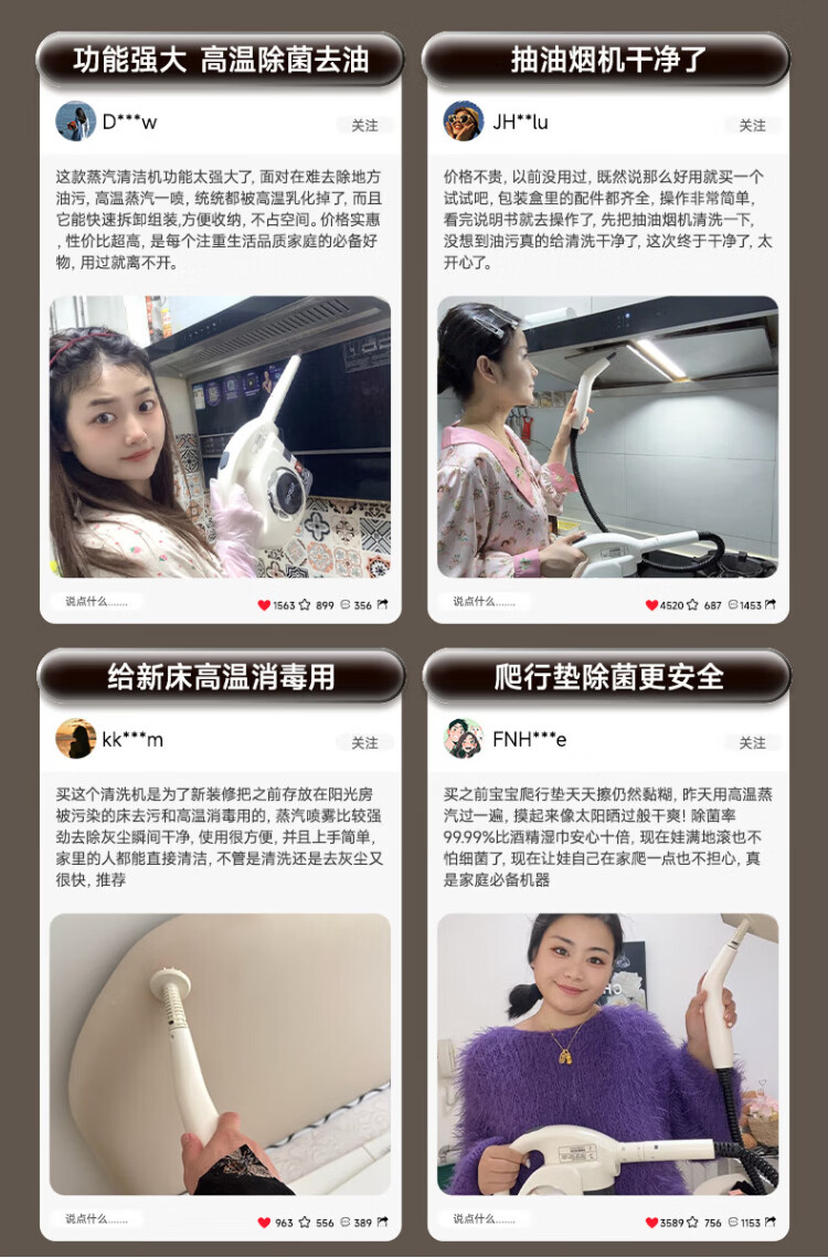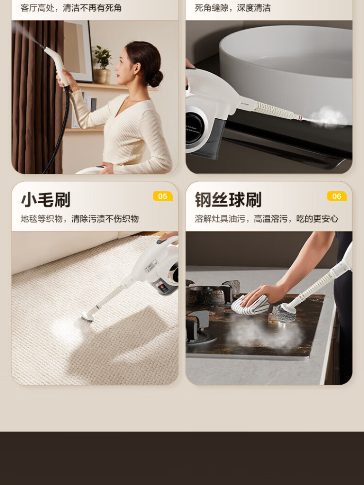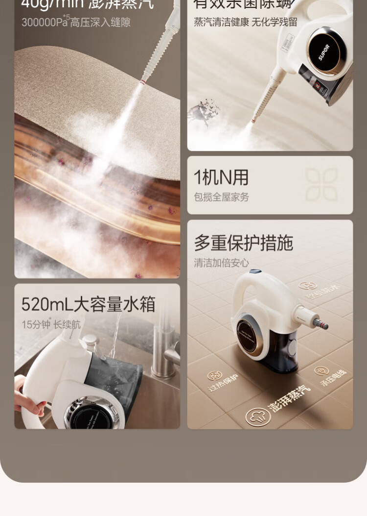 Supor Official Genuine Steam Cleaner Home Portable Kitchen Oil Removal High Temperature Pressure Cleaner Sterilization and Mite Removal Air Conditioning Fabric Whole House Cleaner-C Mechanical Model High Temperature Cleaning 99% Sterilization 100% Mite Removal