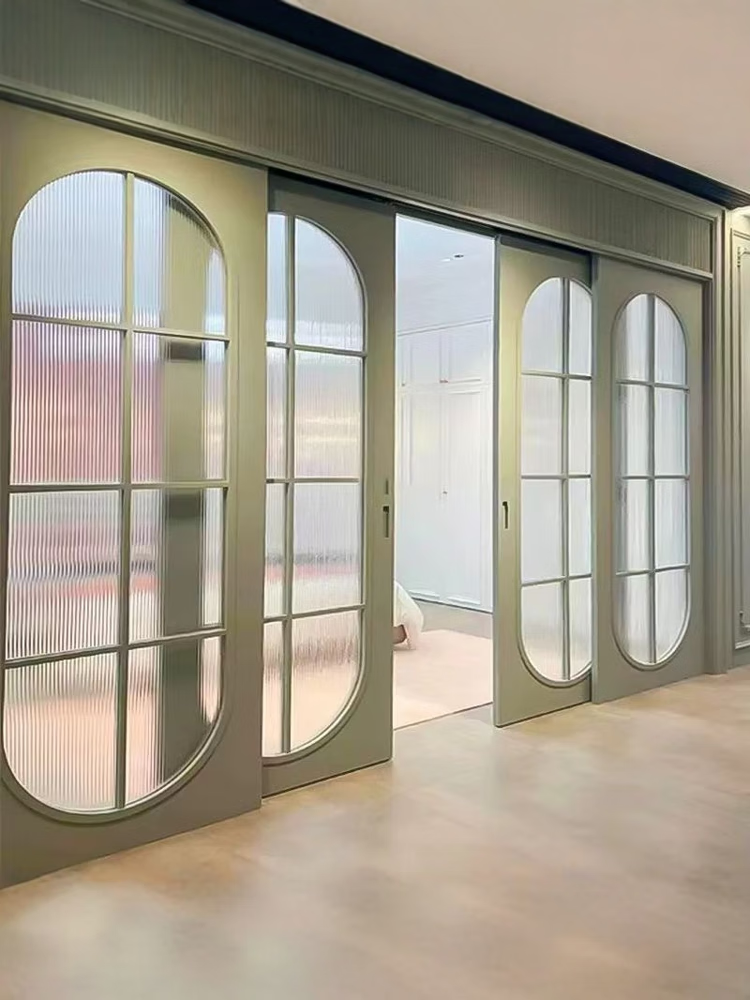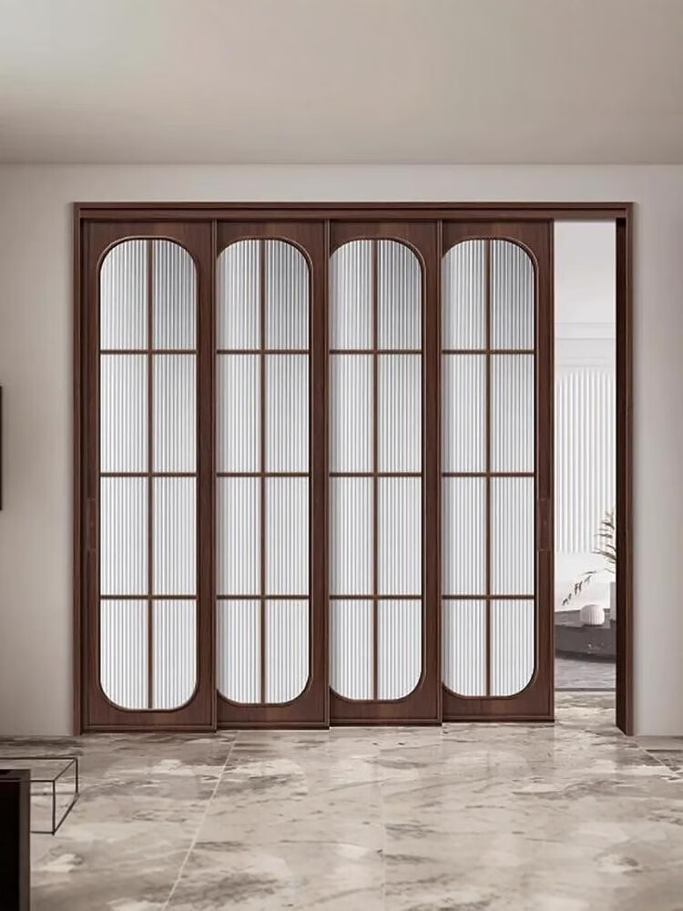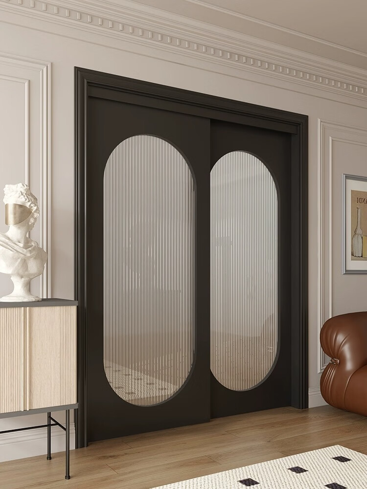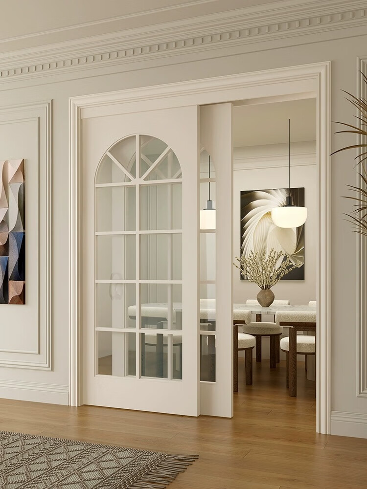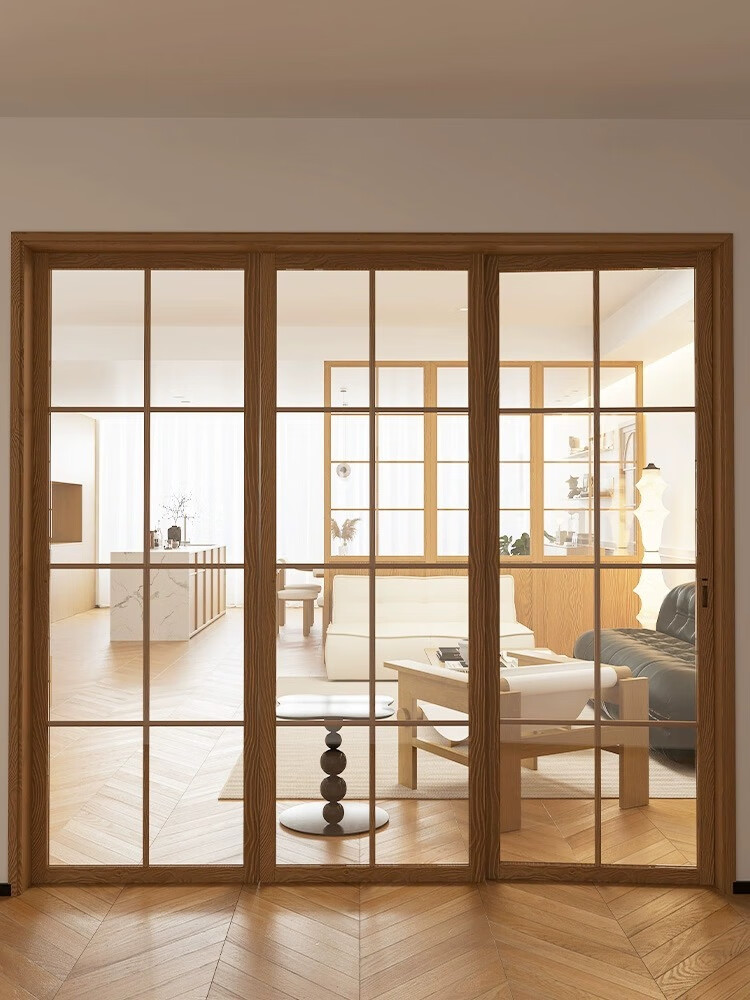 Solid wood sliding door balcony partition door interior door customization simple kitchen door French retro folding door glass door color style size can be customized