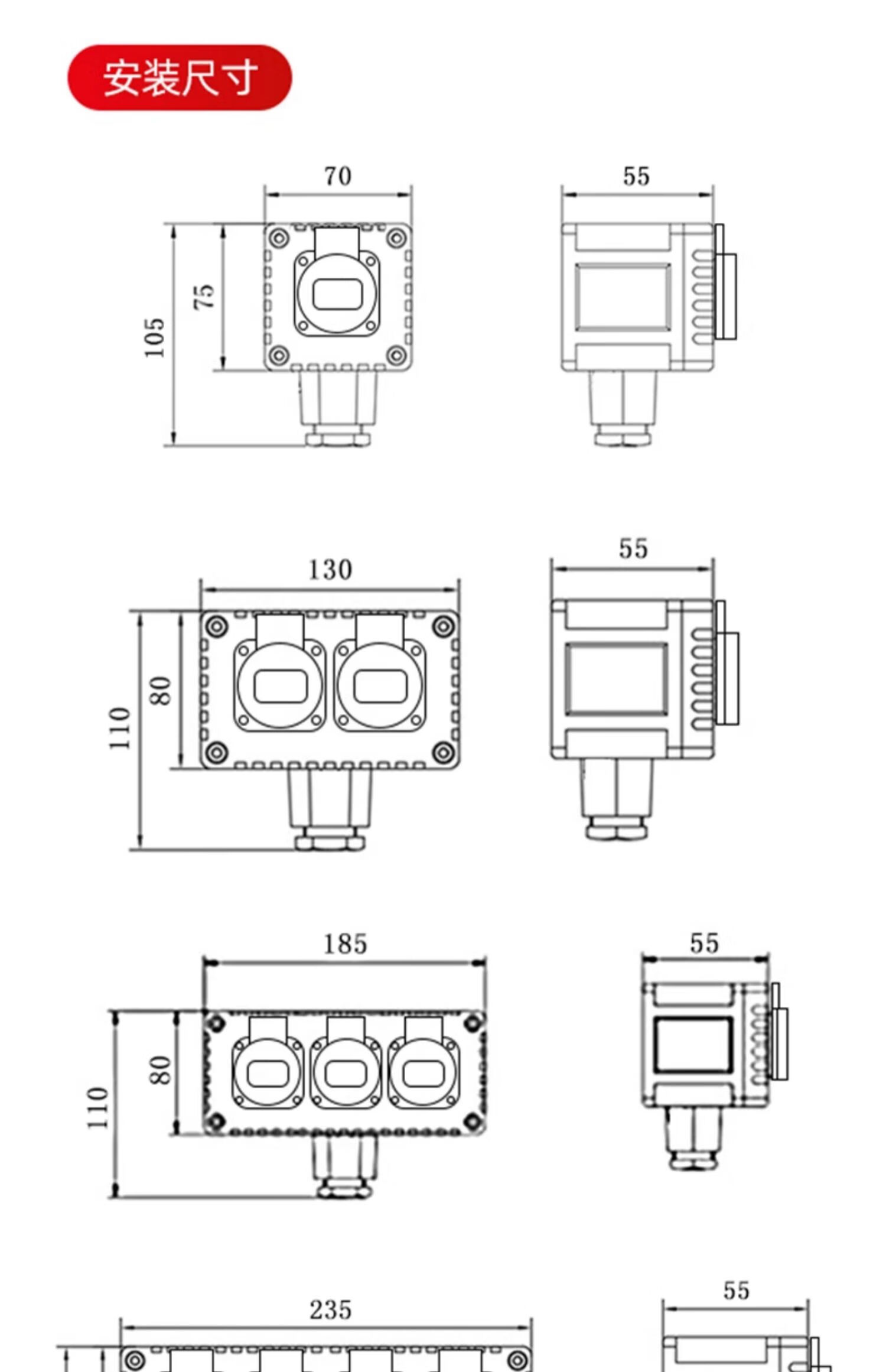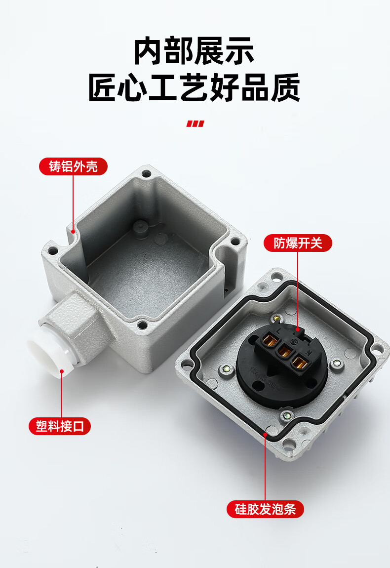 SMVP industrial explosion-proof socket 220v outdoor 10A national standard 16A waterproof rain-proof wall plug strip 1 position five-hole socket small shell-10A