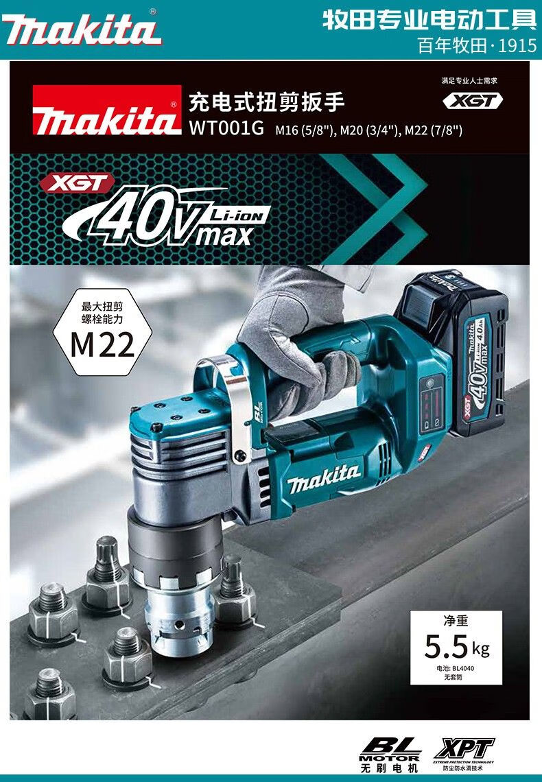 Makita Japan WT001 rechargeable torsion shear wrench M22 M20 M16 socket 40V lithium battery wrench WT001 bare metal