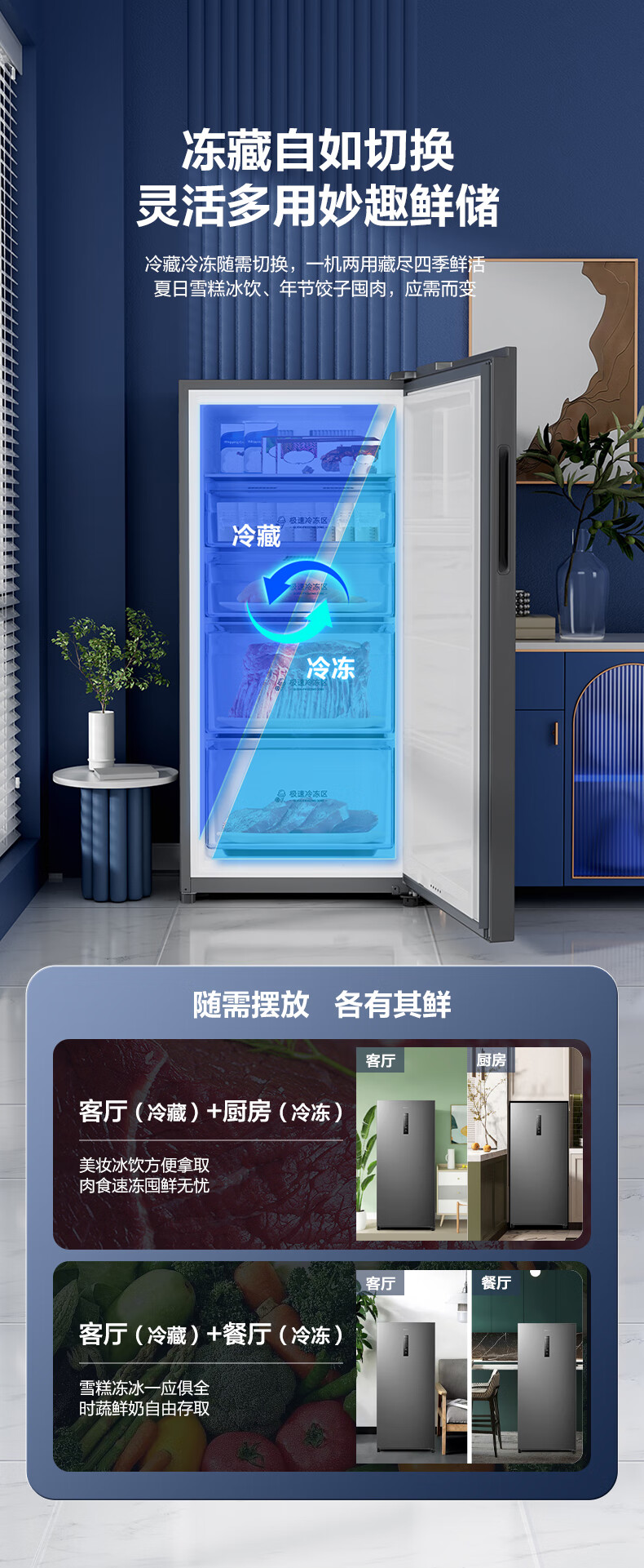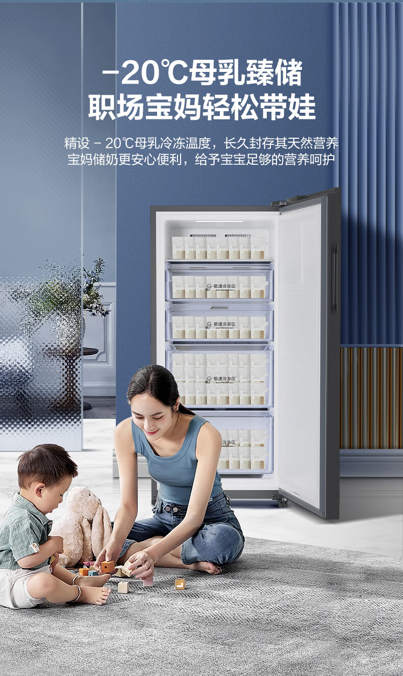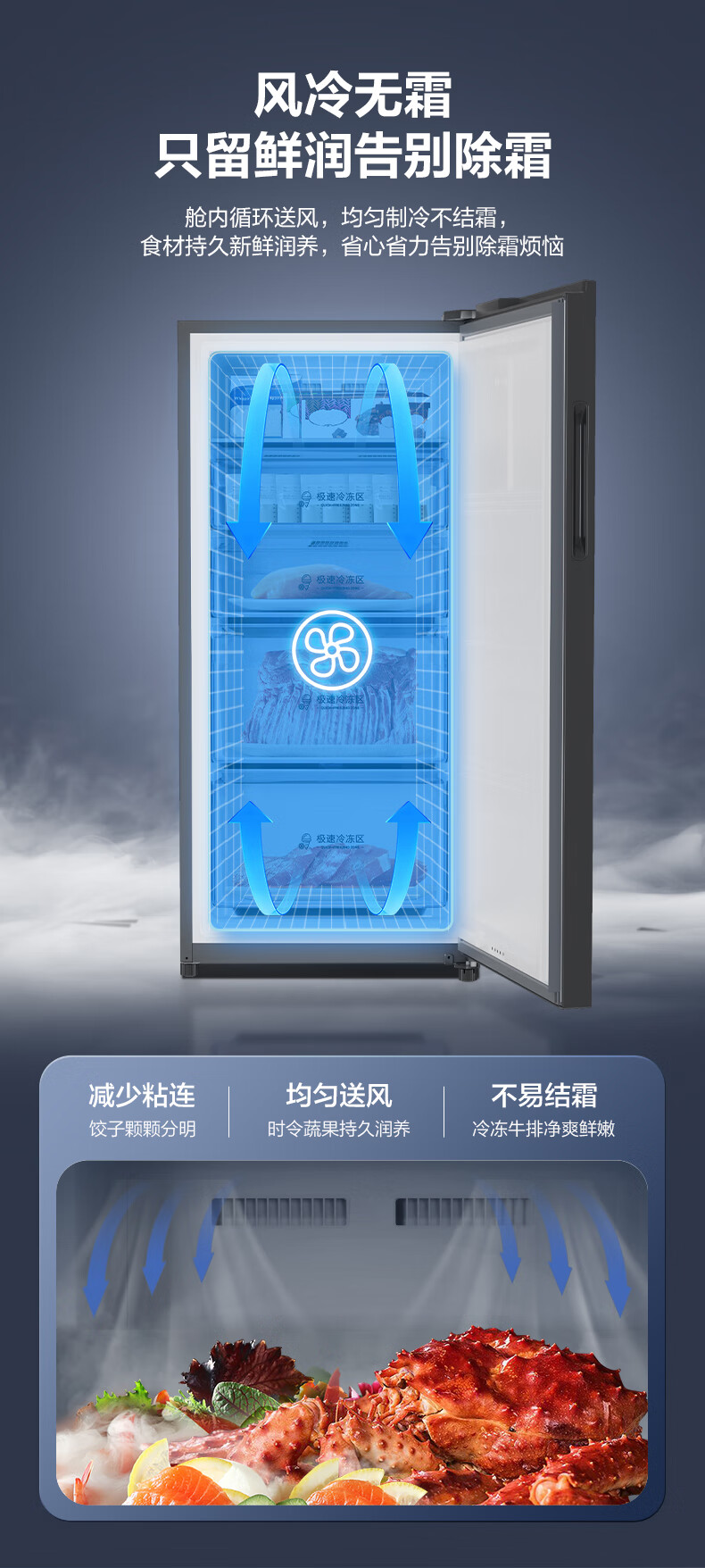 Rongsheng vertical freezer 1.34/1.5/1.72 meters high first-class air-cooled frost-free breast milk refrigeration and freezing conversion freezer vertical freezer 201L first-class air-cooled frost-free -30 degrees deep cooling quick freezing