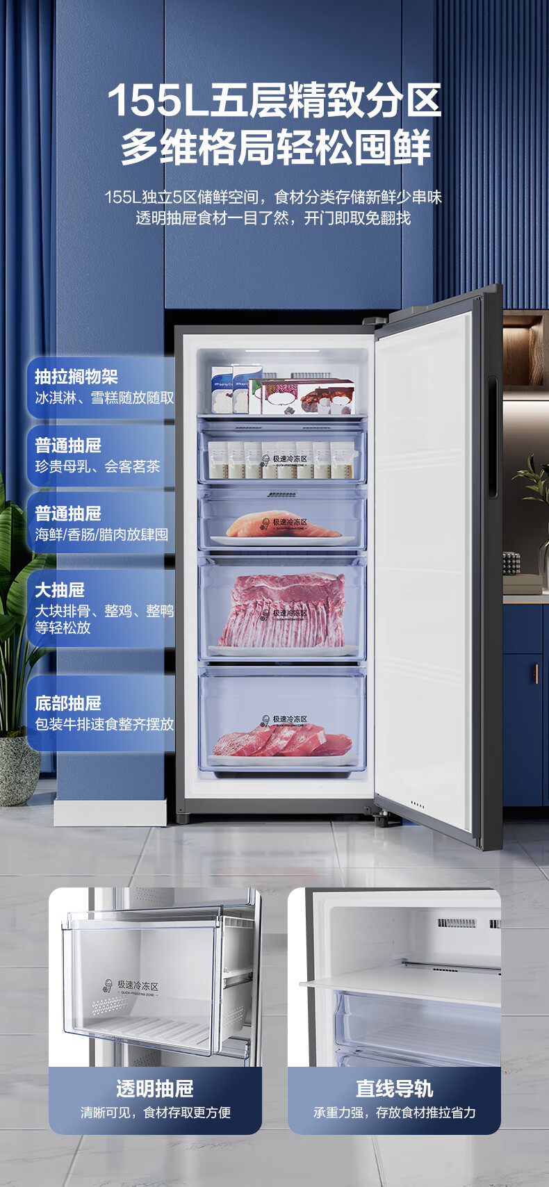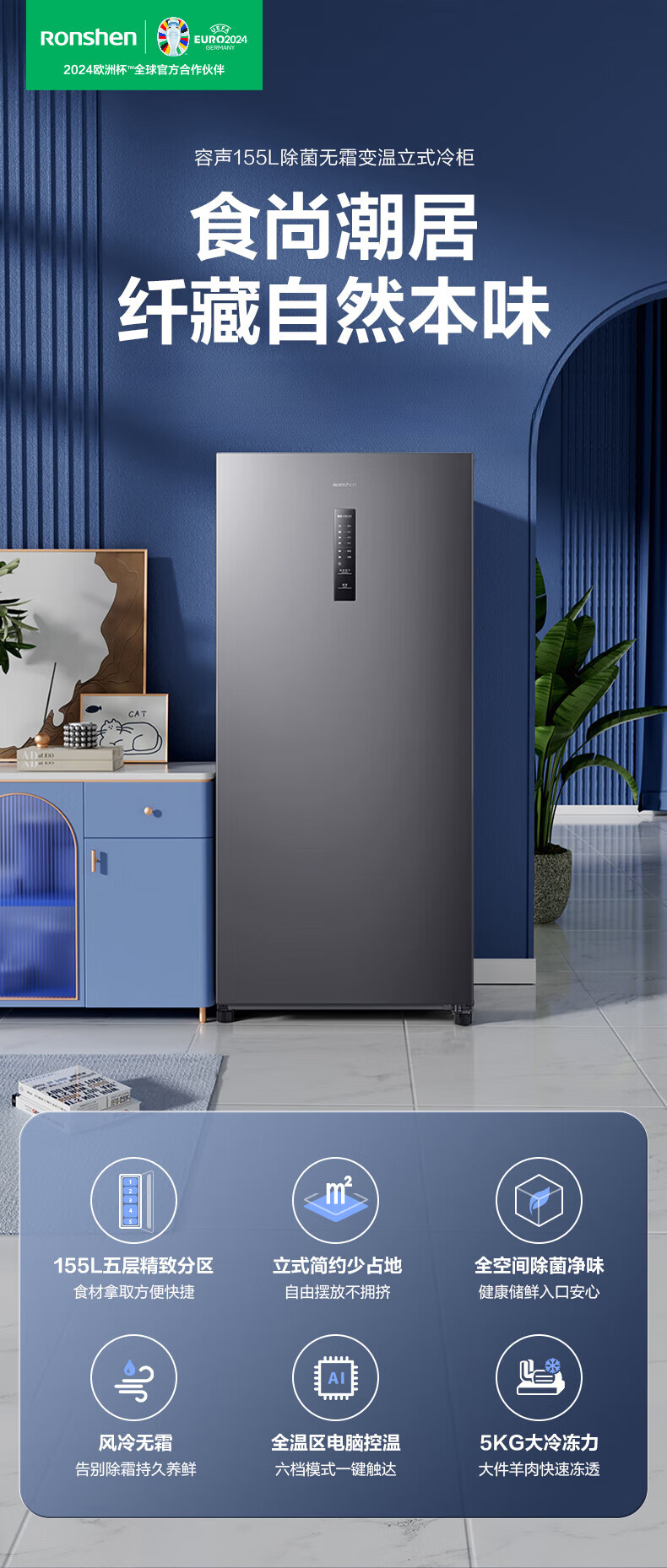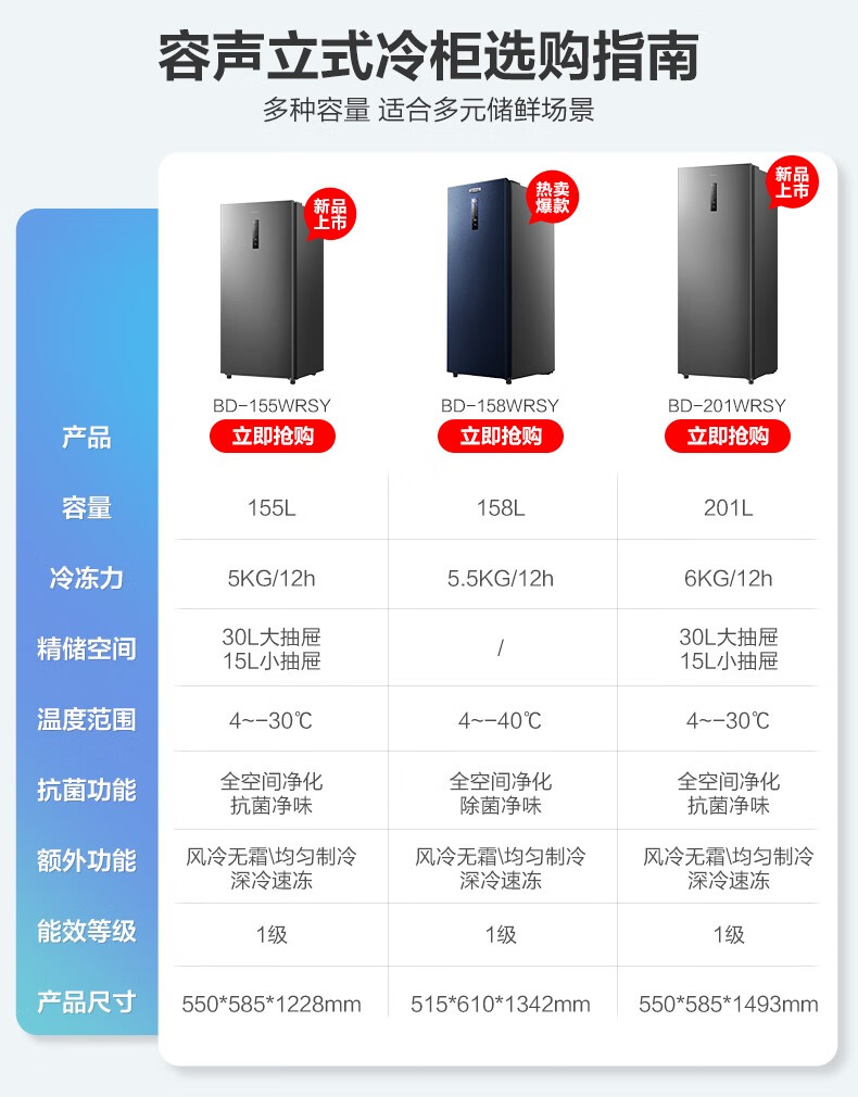 Rongsheng vertical freezer 1.34/1.5/1.72 meters high first-class air-cooled frost-free breast milk refrigeration and freezing conversion freezer vertical freezer 201L first-class air-cooled frost-free -30 degrees deep cooling quick freezing