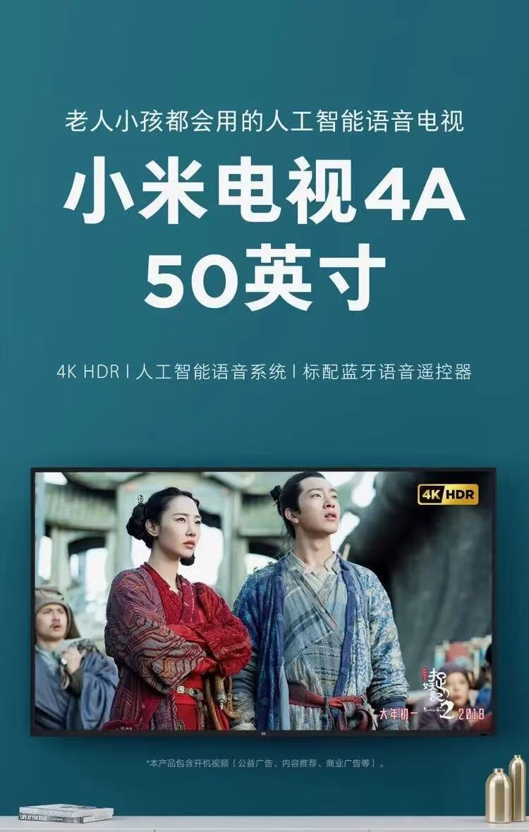 Xiaomi 4A50 TV 4K Ultra HD 2+8G Smart Network Living Room Home Tablet Eye Protection Projection LCD TV 50 inches Model L50M5-5A Base 98% new