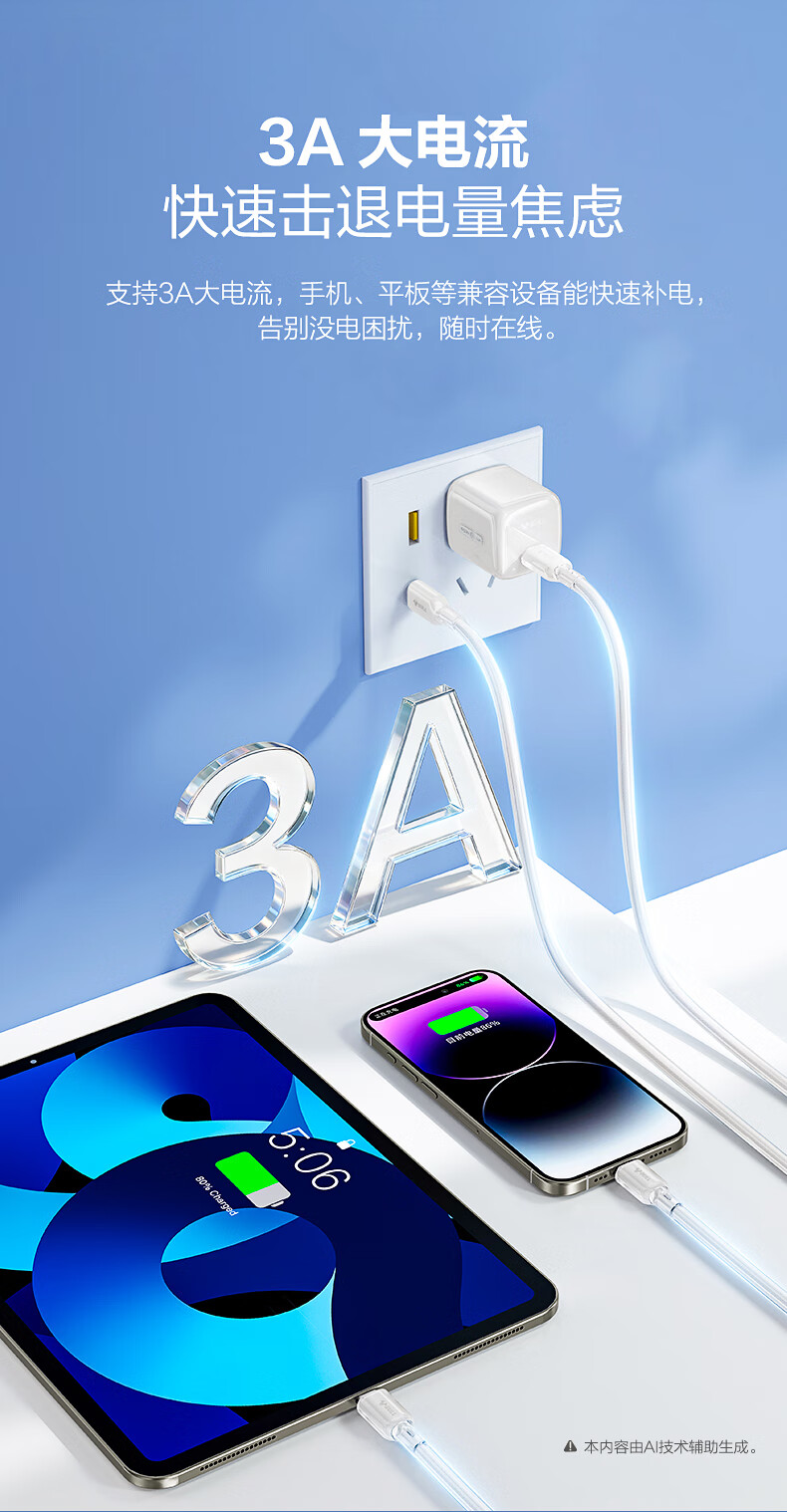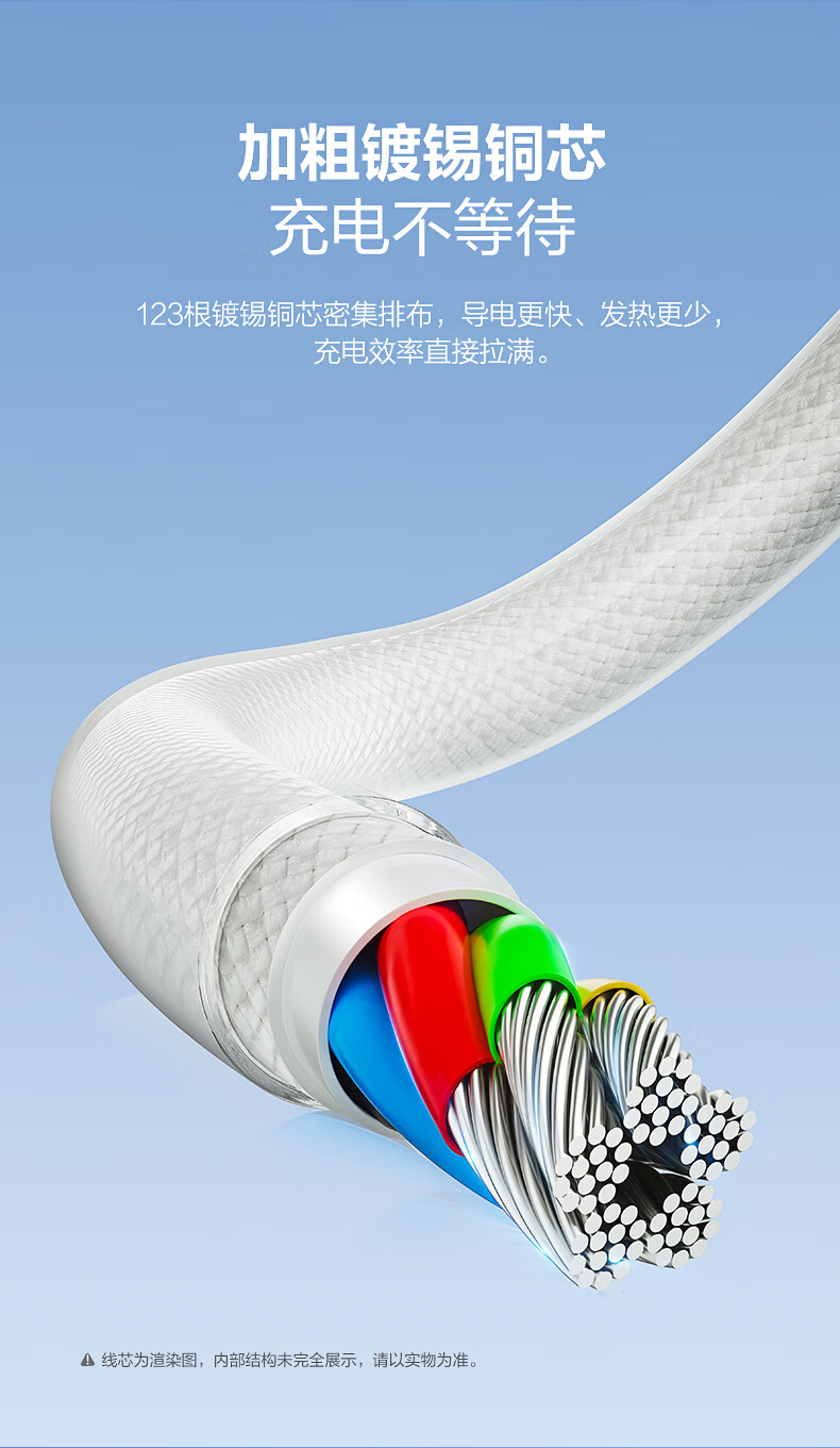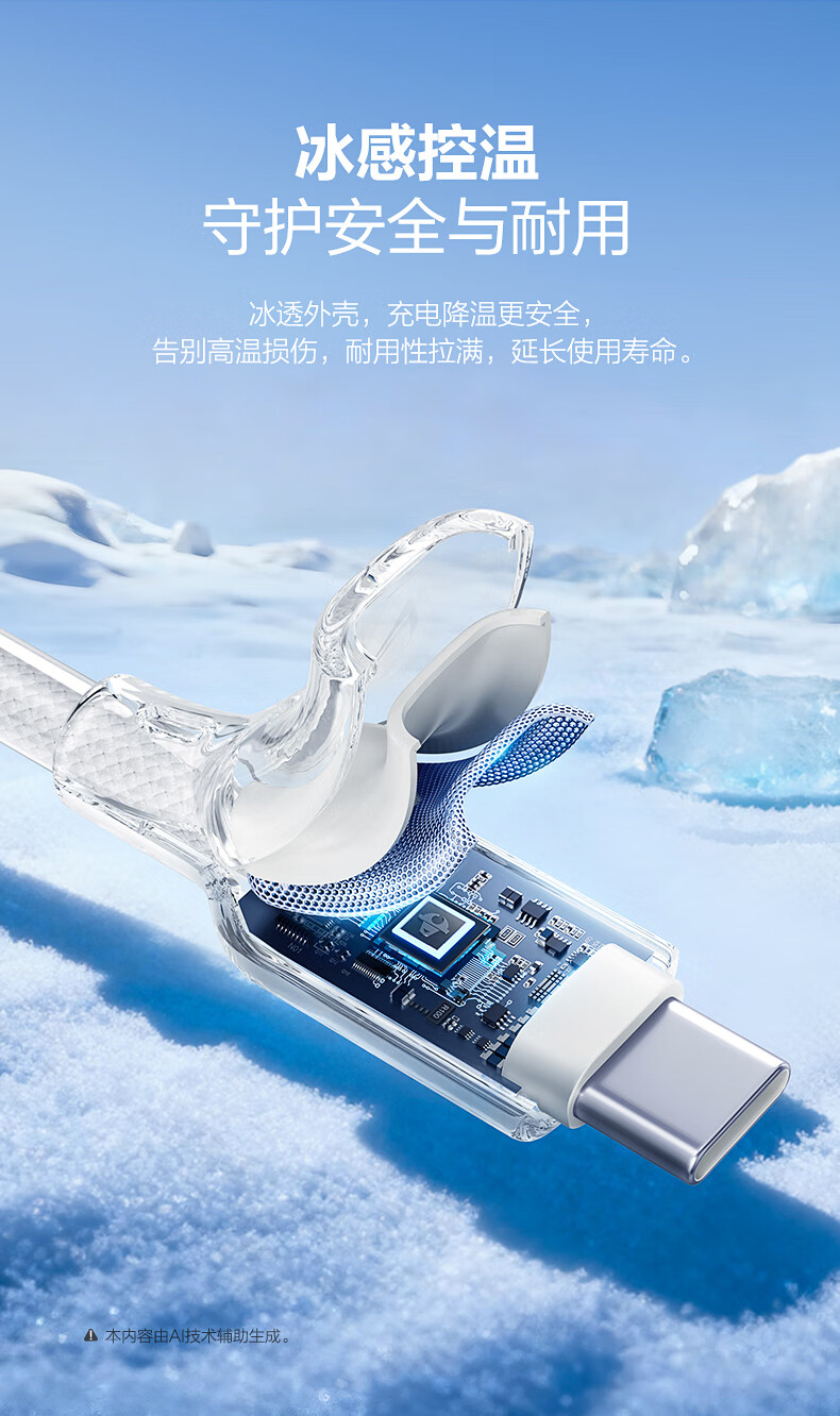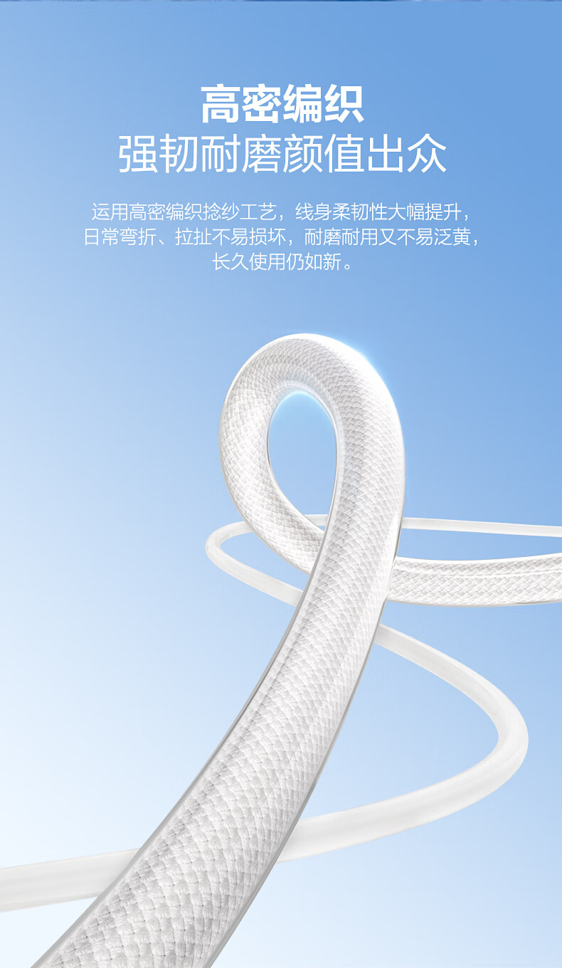 Bull (BULL) Xiaobing line type-c data cable Apple 17 charger cable iphone17promax mobile phone 16 fast charging cable suitable for Huawei Android ipad tablet computer Ice white - suitable for Apple 17-15 dynamic power adjustment