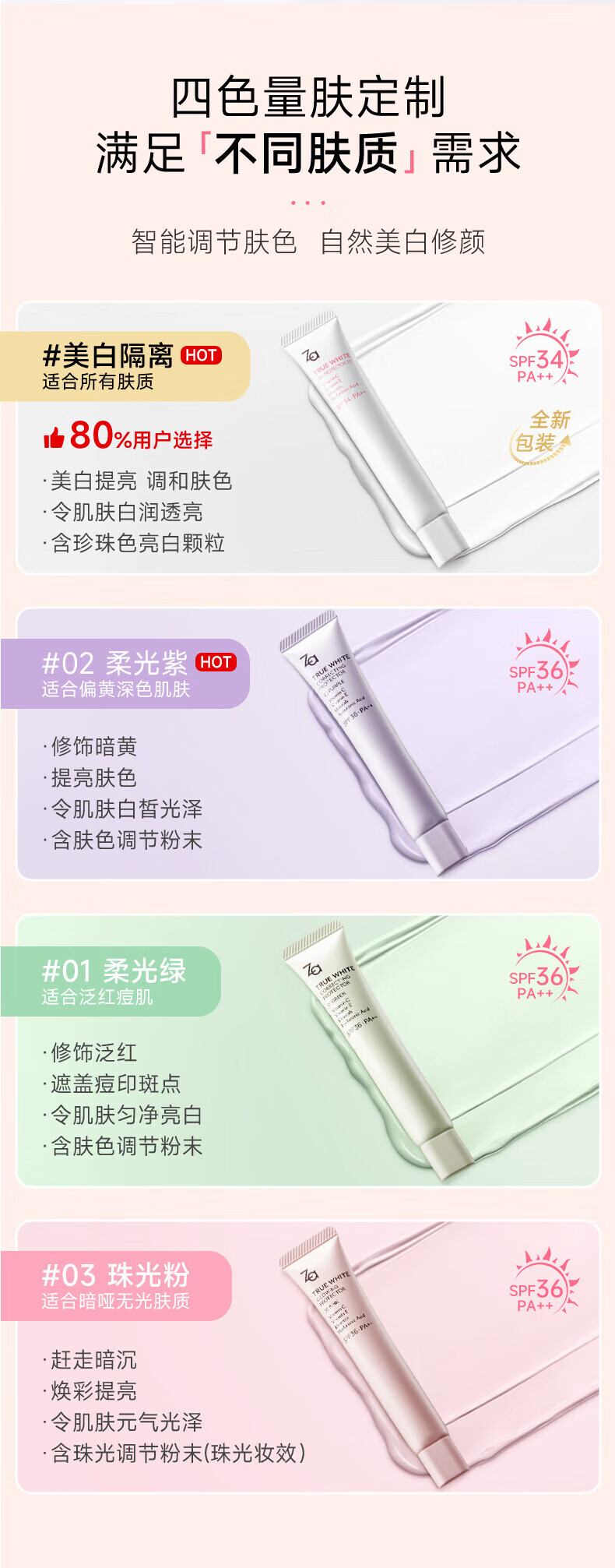 Ji Rui's new version of ZA isolation three-in-one brightening skin tone makeup primer isolation cream za isolation white