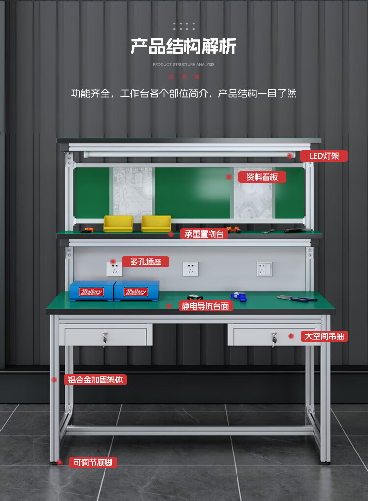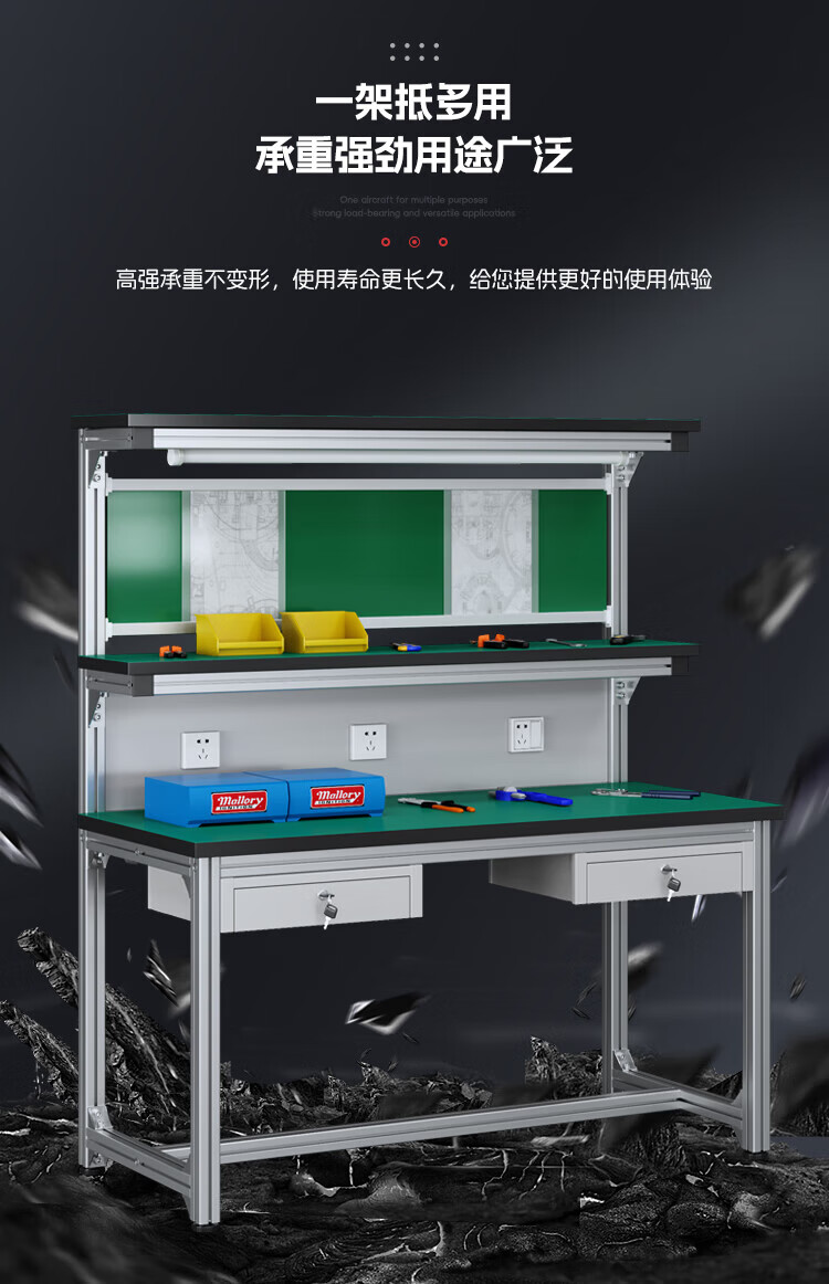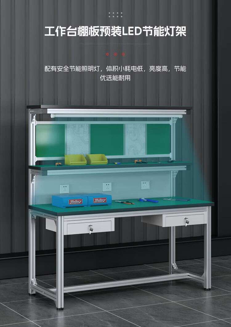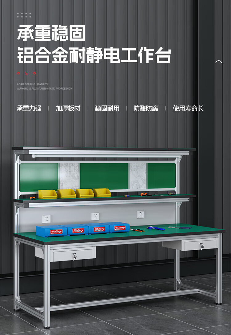Kegan diy aluminum alloy anti-static workbench aluminum profile operating table computer desk workshop factory assembly line assembly table repair table can be customized including accessories 2000*600*1600 double drawer
