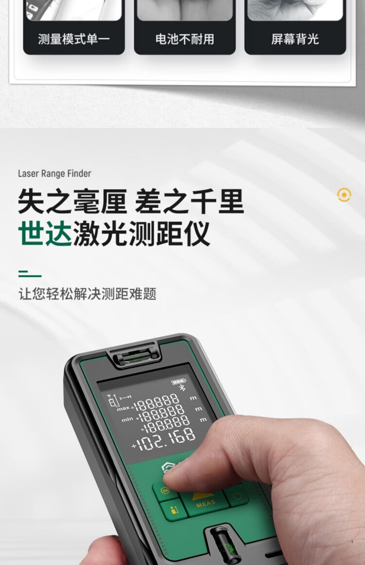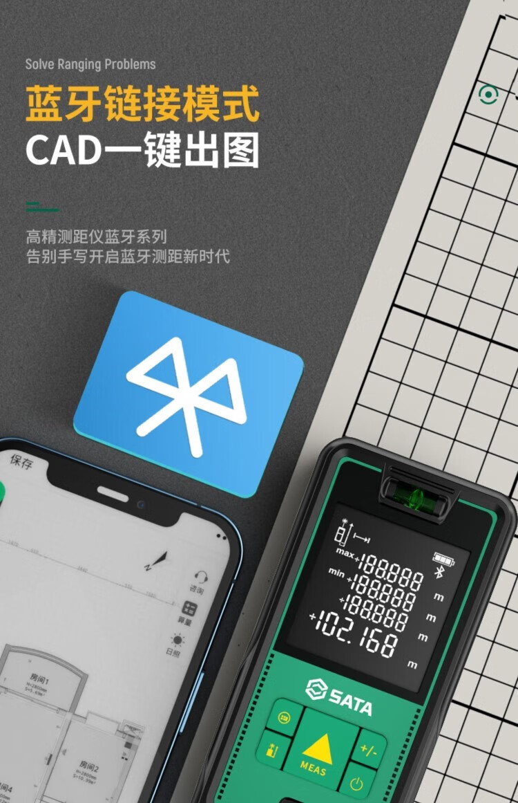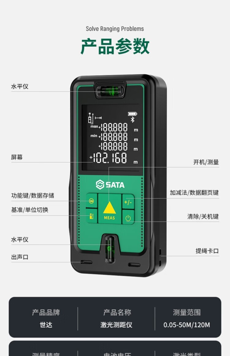 SATA laser rangefinder handheld D05901 D05902 D05903 D05905 (A-B) mm-level Bluetooth mm-level voice model 120 meters + two-way horizontal + 2.0