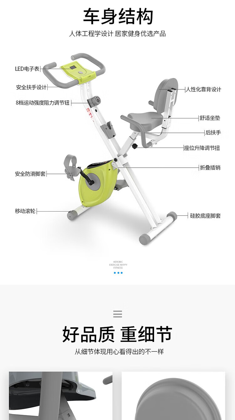 MPPMCK home exercise bike magnetically controlled pedal bicycle foldable spinning bicycle indoor sports equipment grass green without backrest
