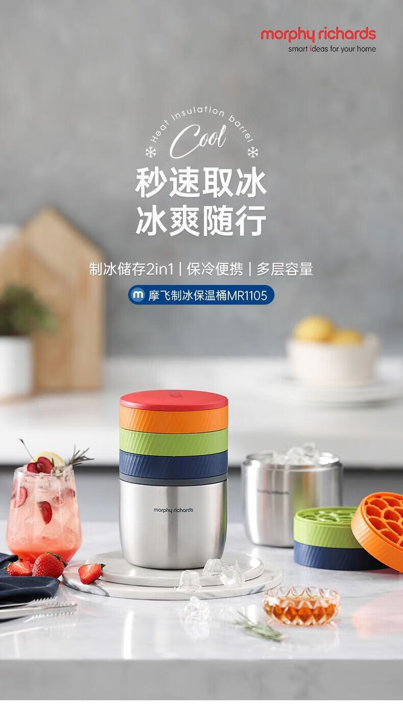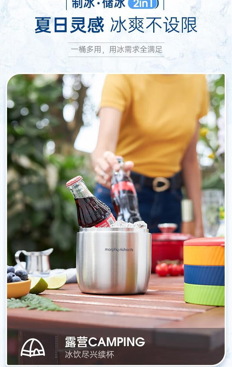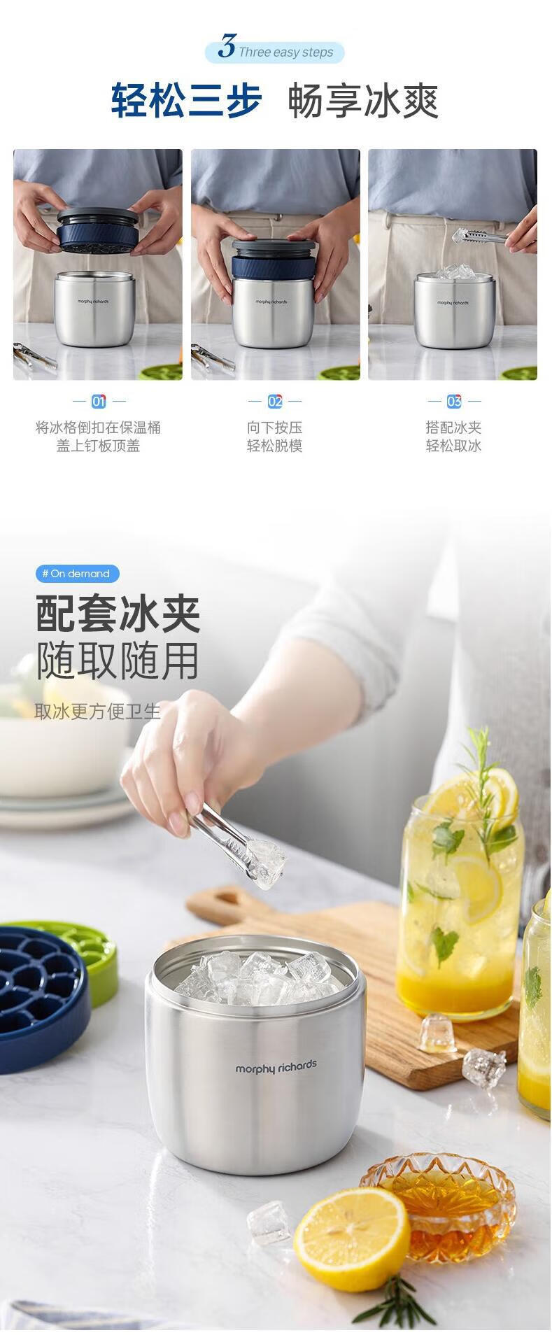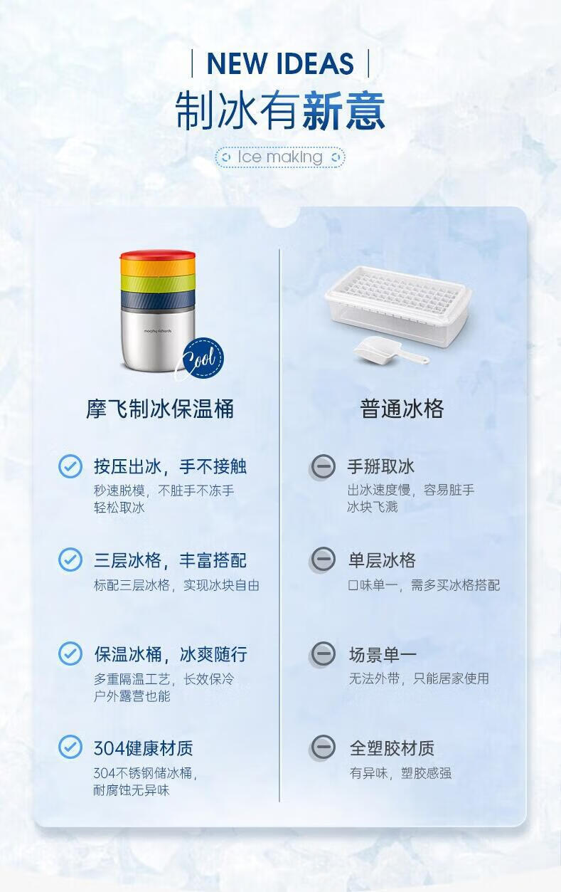 Mofei Electric Ice Making Insulated Bucket Stainless Steel Ice Bucket Large Capacity Ice Cube Mold Ice Storage Ice Tray with Cover Three-layer Ice Box MR1105