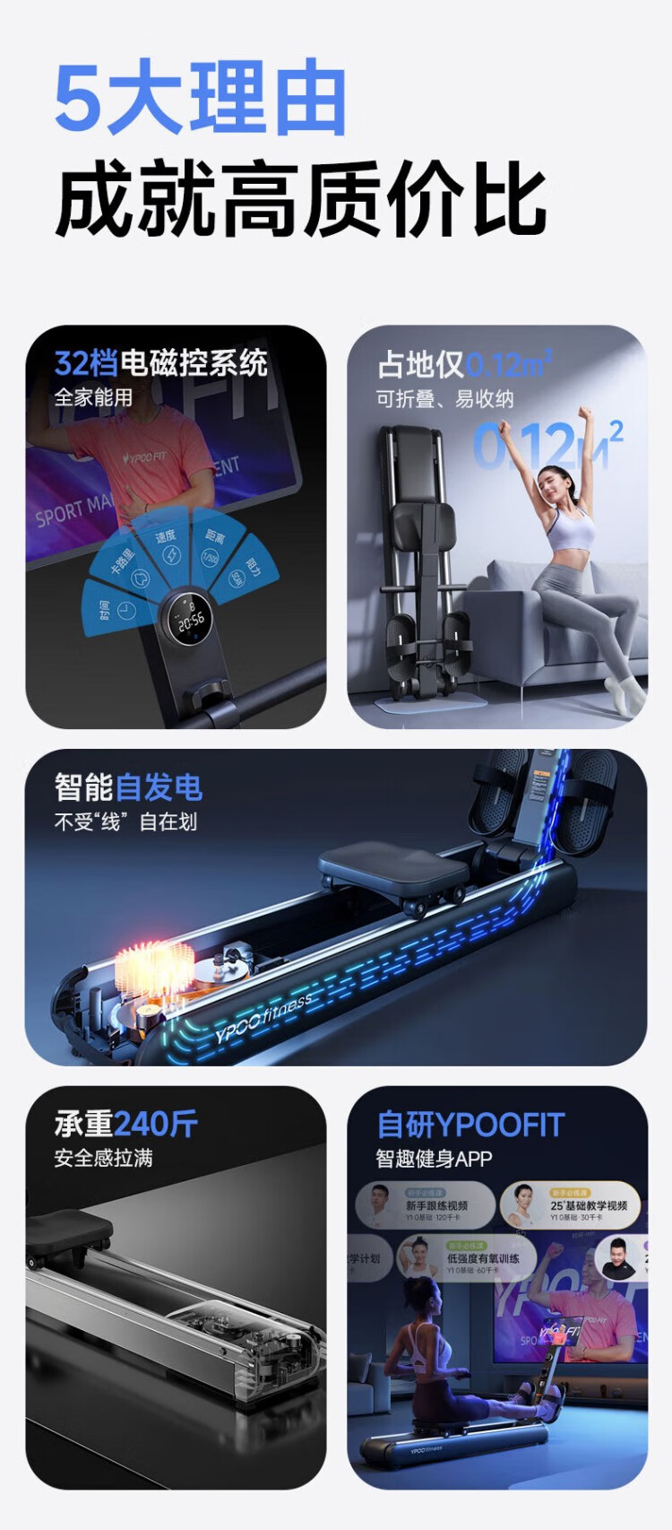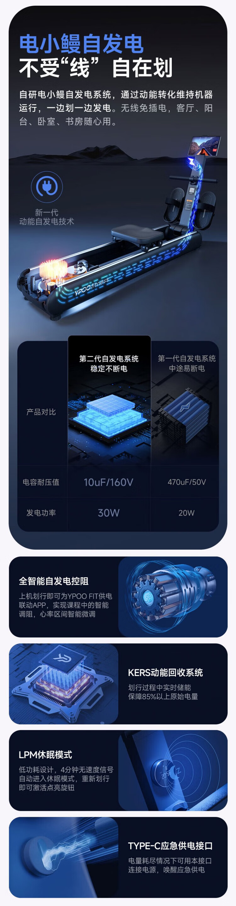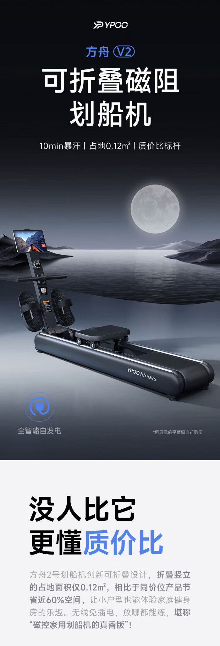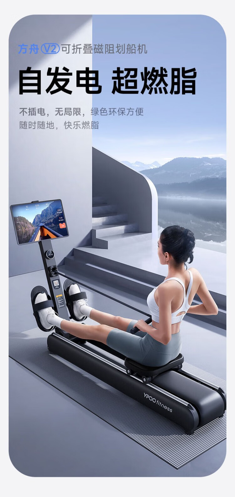 Easy-to-run Ark V2 rowing machine home fitness self-generating smart magnetic resistance indoor dragon boat training equipment self-generating version of Moon Shadow White 32-speed electromagnetic resistance adjustment