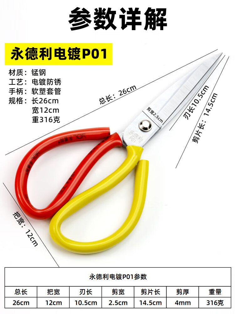 Yongdeli scissors industrial strong Yongdeli scissors old-fashioned iron scissors manganese steel P large notch leather scissors extra large scissors P large_1 pair_real hair 1 pair