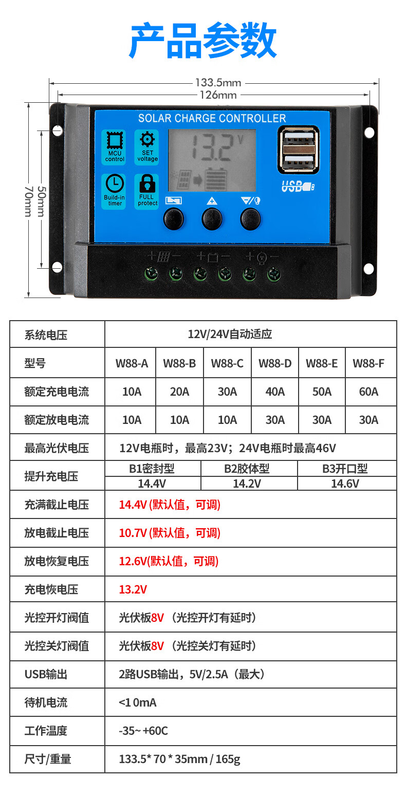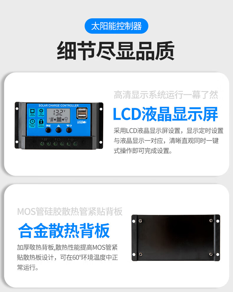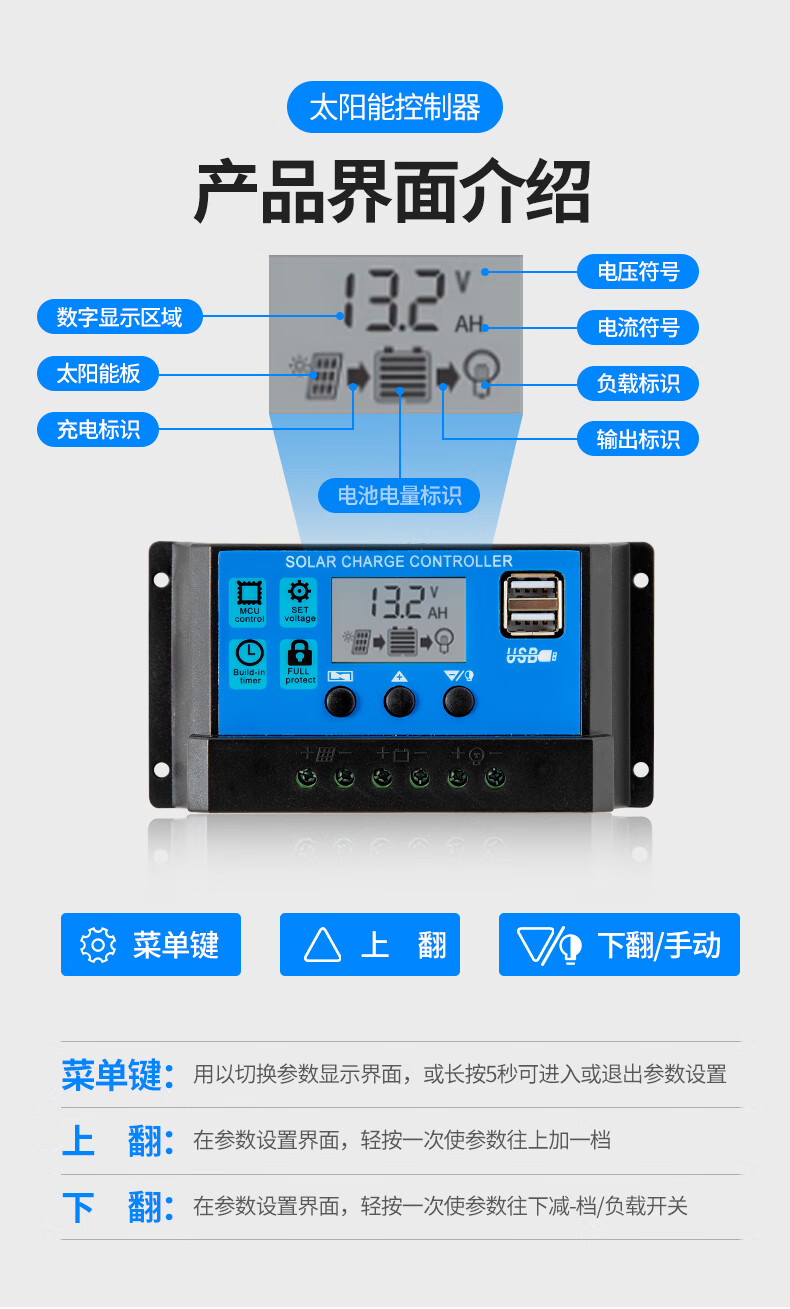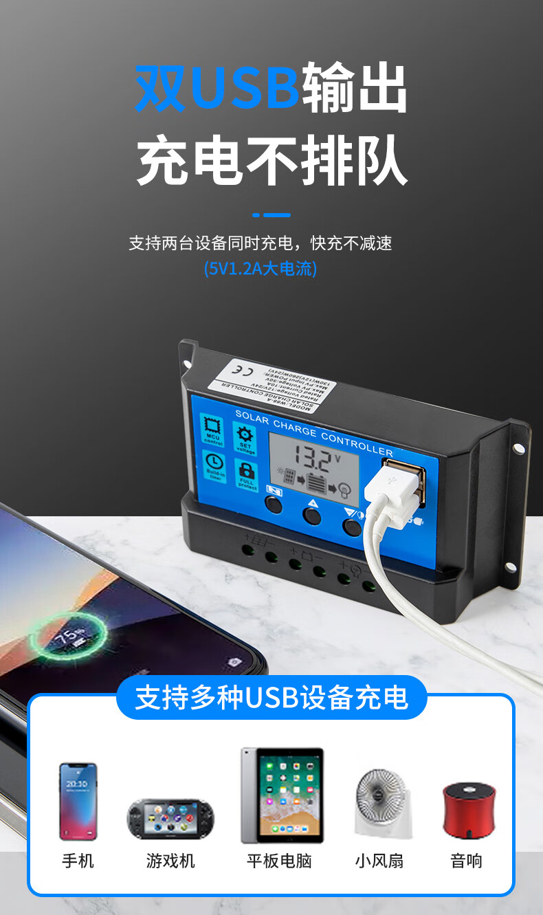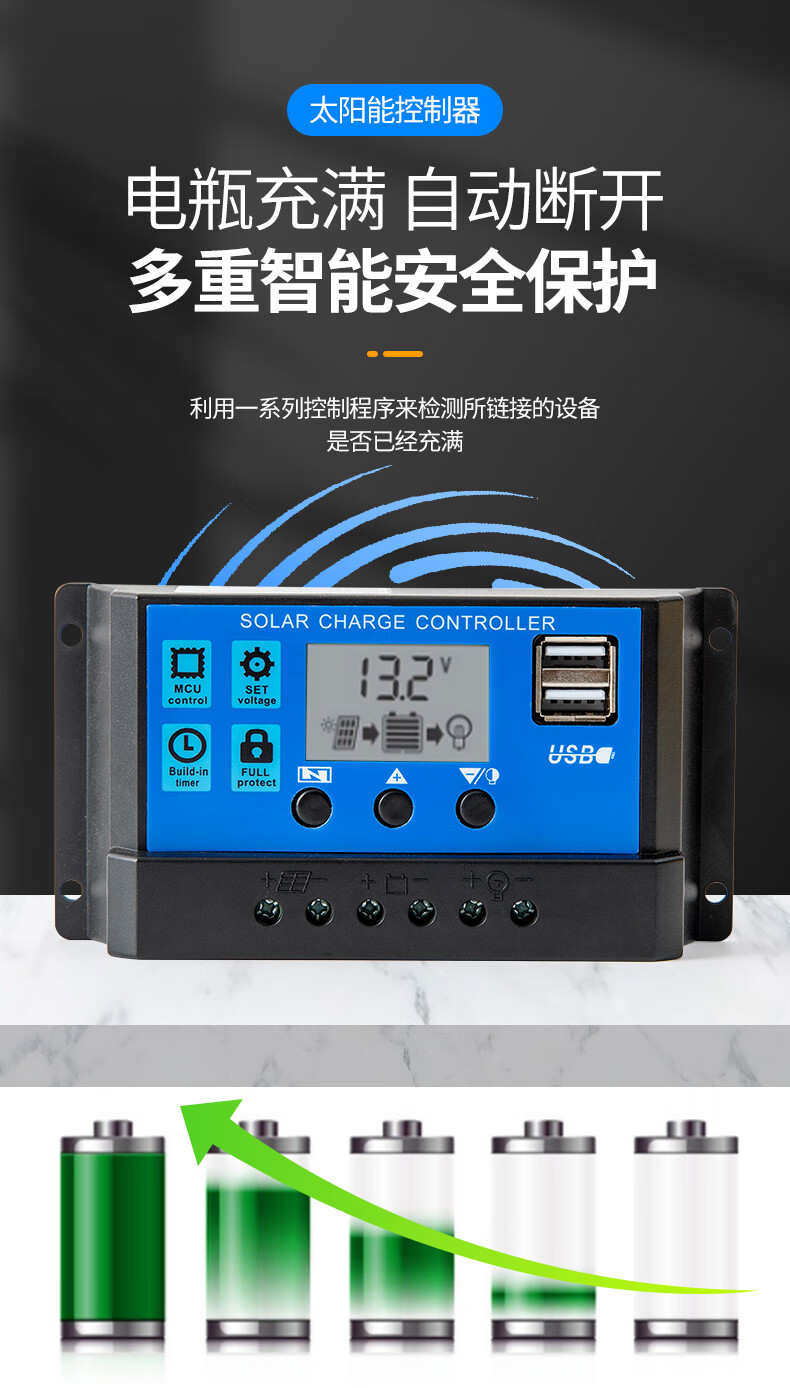 Multifunctional solar photosynthetic silicon controller charging control module 12v24v solar panel controller 40A 12/24V with current model
