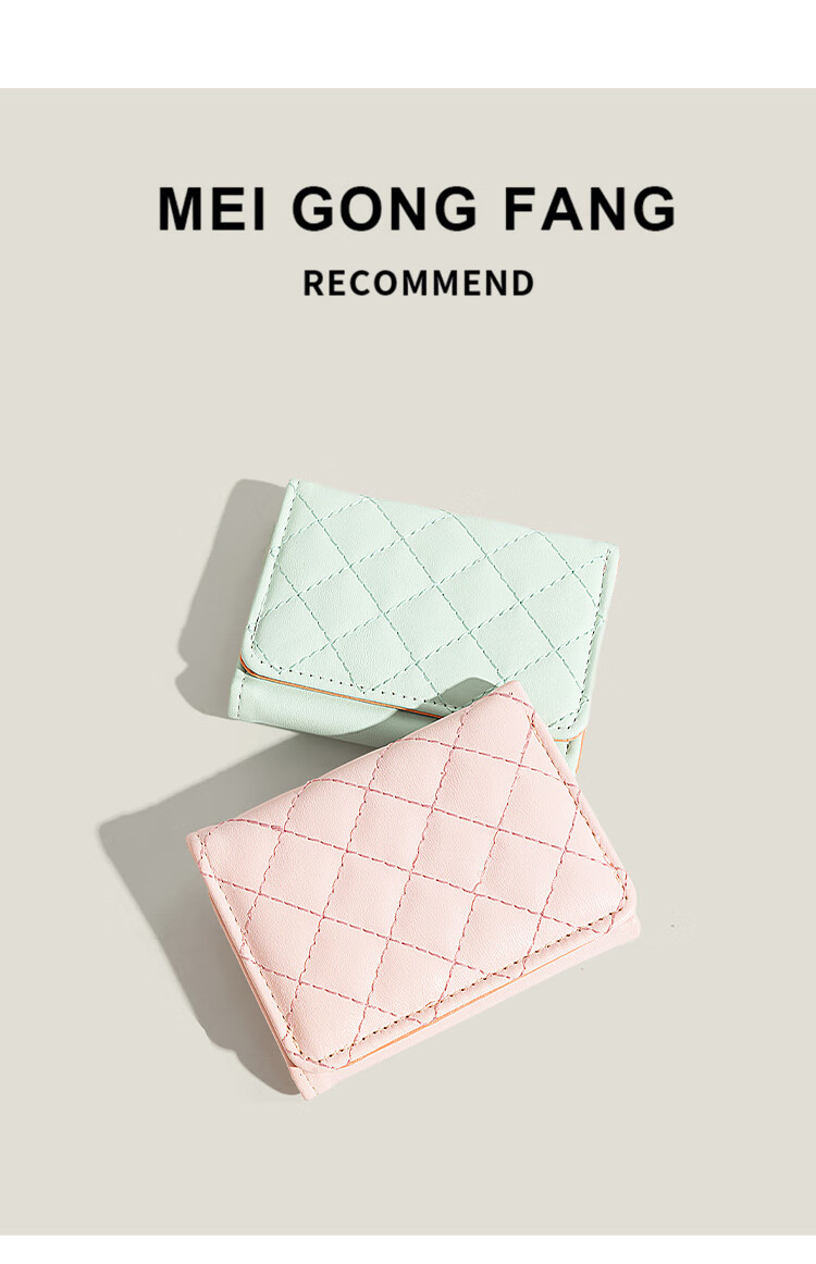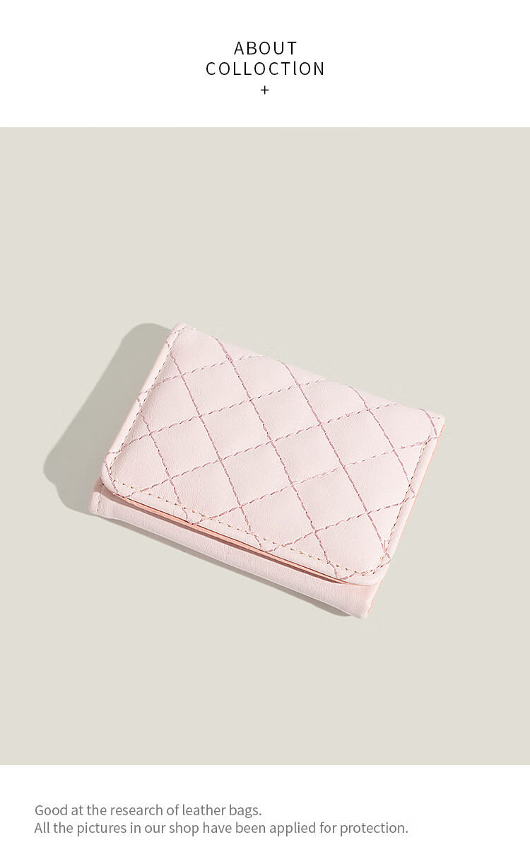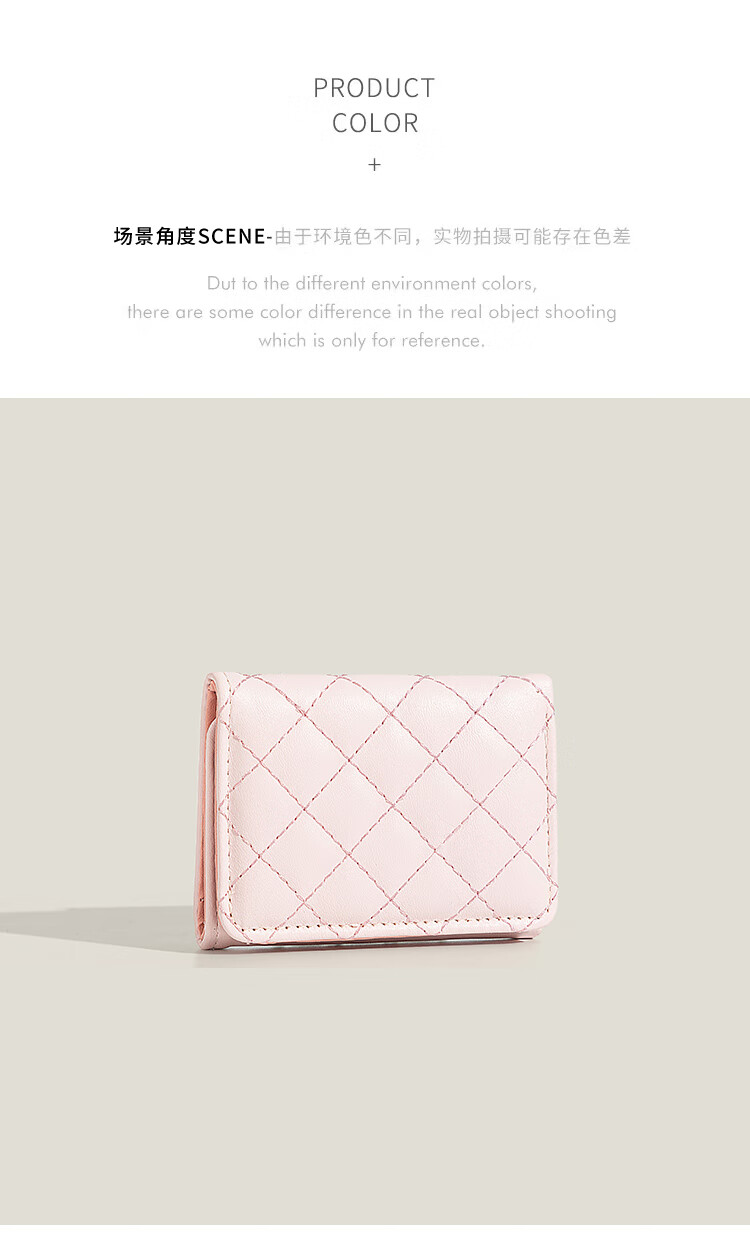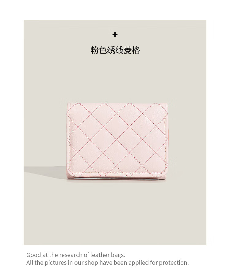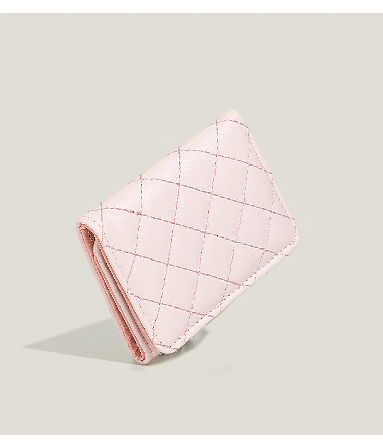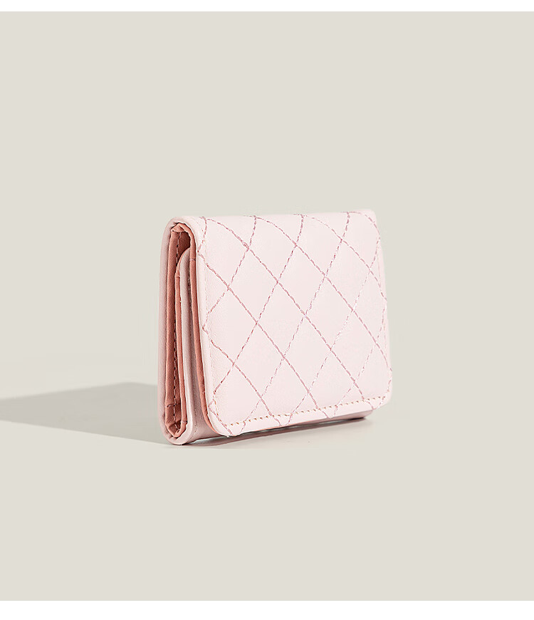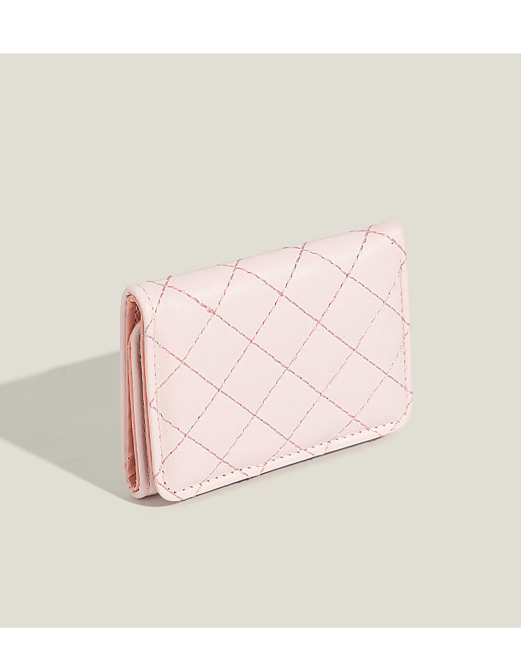 Casa-kups simple small fragrant style rhombus wallet for women 2025 new style exquisite multi-card slot anti-degaussing card bag pink embroidery rhombus