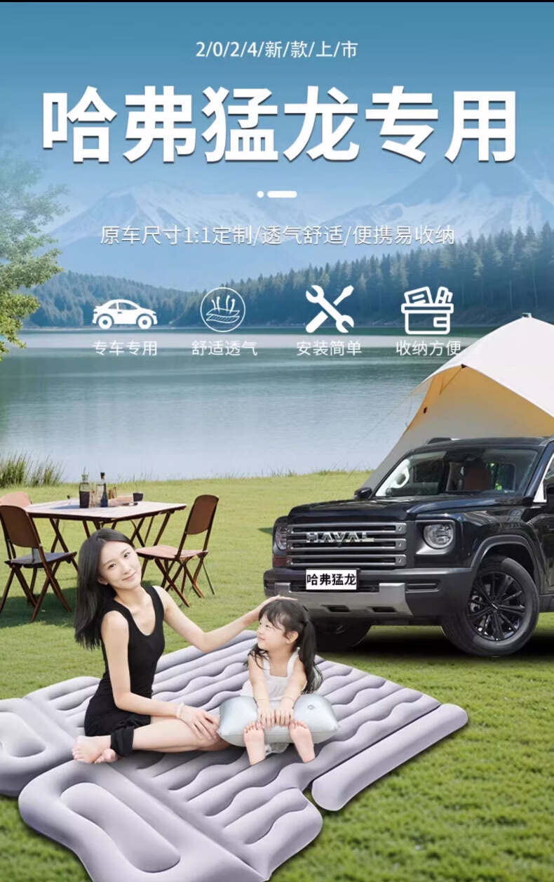 Jixiao Haval Raptor Air Mattress Air Cushion Bed Inflatable Bed Rear Car Car Supplies Special Car Sleeping Artifact Dual-use Model Gray Trunk + Camping Official Original Equipment 24-25 Haval Raptor