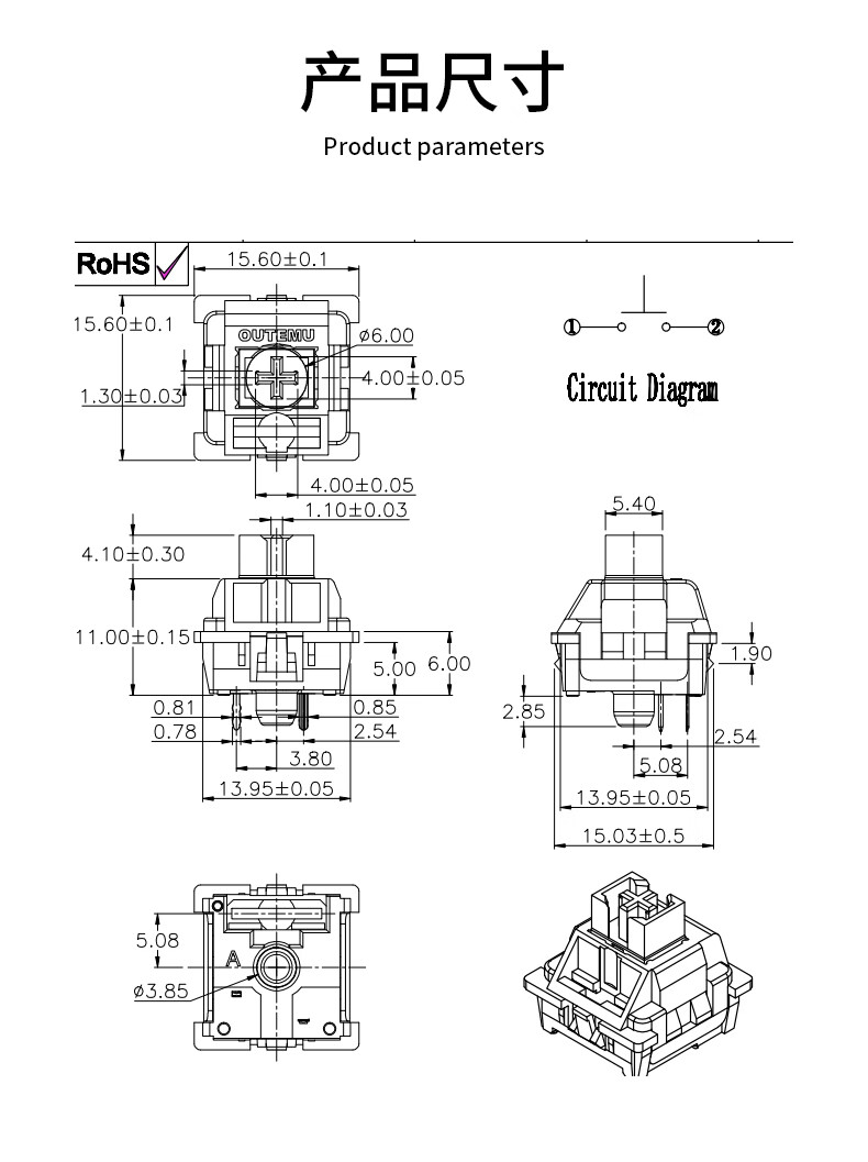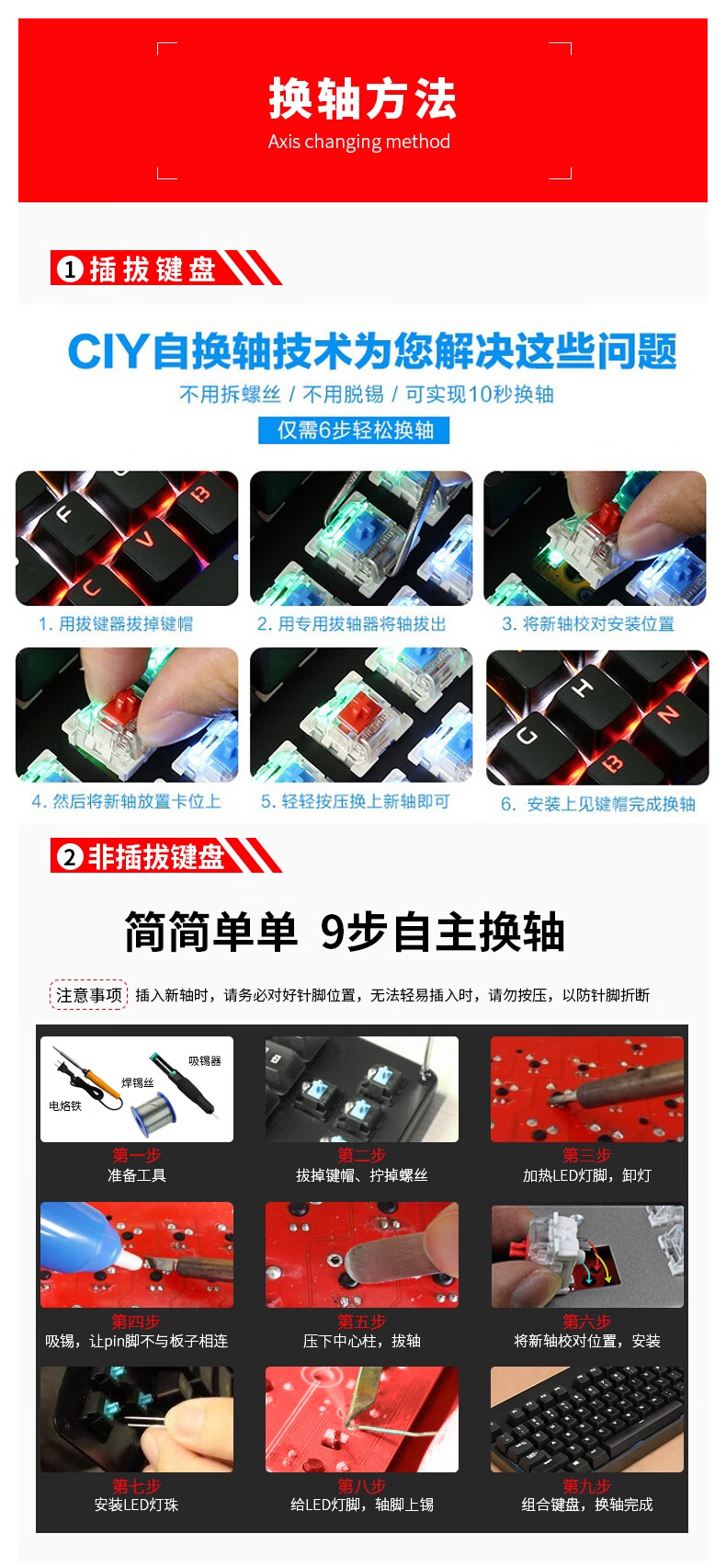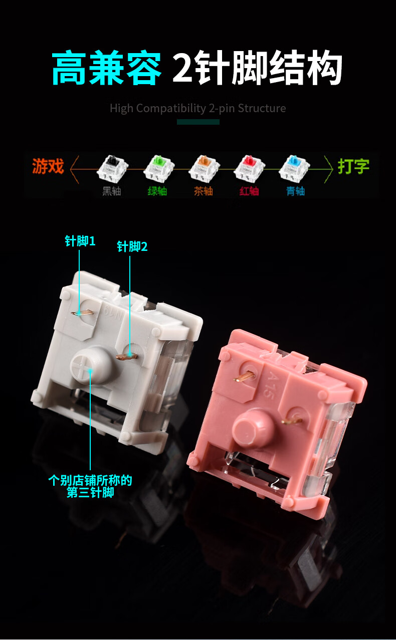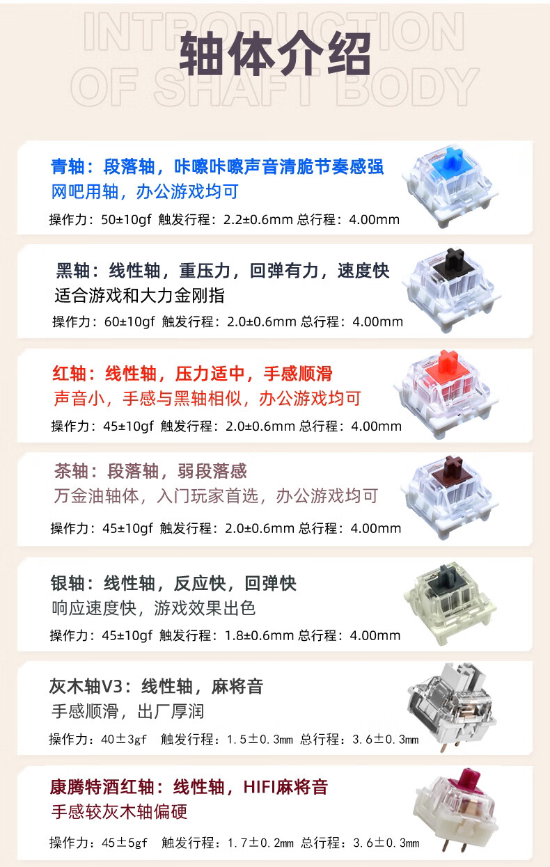 Jiuzi high-tech dust-proof mechanical keyboard shaft switch green and white ash wood silent shaft hot-swappable switch high-tech dust-proof ash wooden shaft-Mahjong sound (5 pieces)