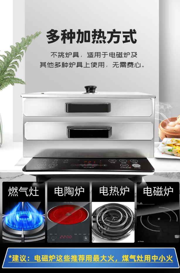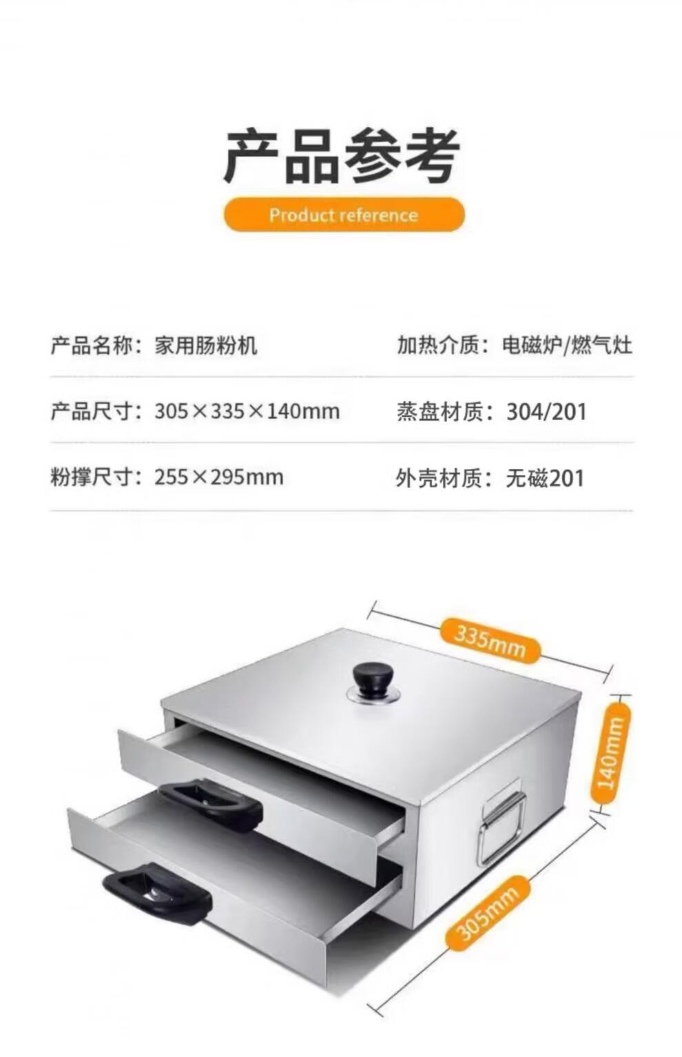 Rice roll machine, household small steamer, 304 stainless steel steaming plate, roll rice roll tool, household drawer-type steaming rice machine, 201, one layer thickened, 2 flat plates in total