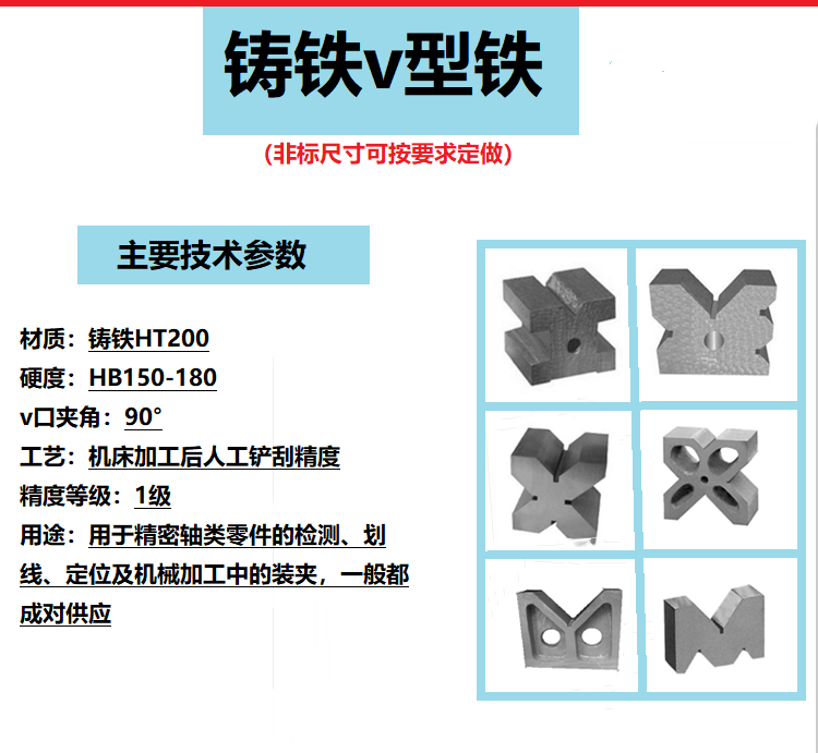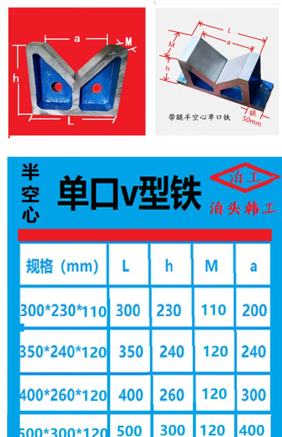 FHJQB cast iron v-shaped iron block large single-port iron milling machine v-shaped frame technical school teaching shaft type marking v-shaped iron solid single port 300*200*100 pair