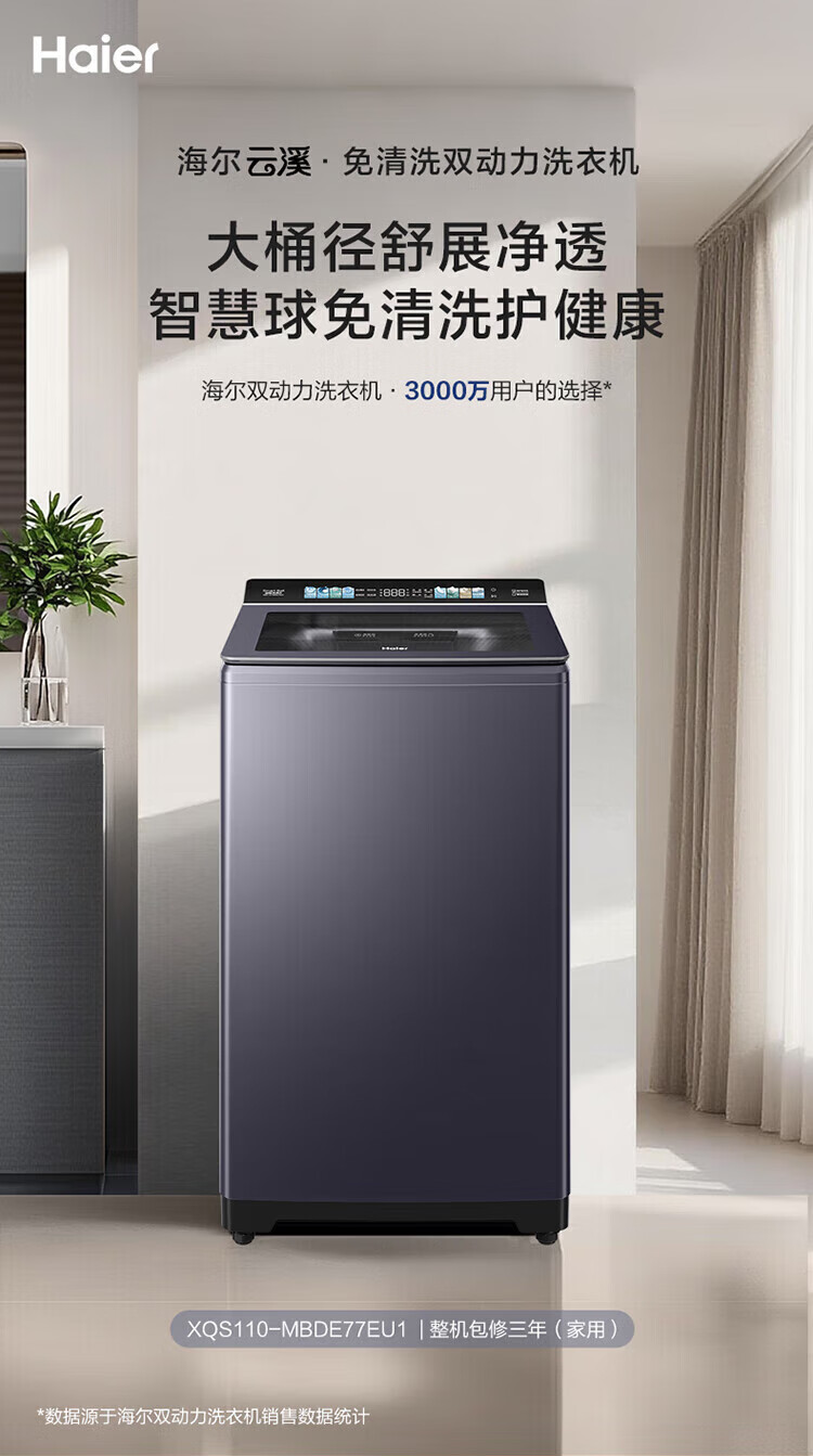 Haier Yunxi 4.0 pulsator washing machine fully automatic state subsidy 11/13KG hand scrubbing dual power direct drive frequency conversion large capacity washing machine first class energy efficiency trade-in 13KG + direct drive frequency conversion + 1.28 washing ratio + voice broadcast