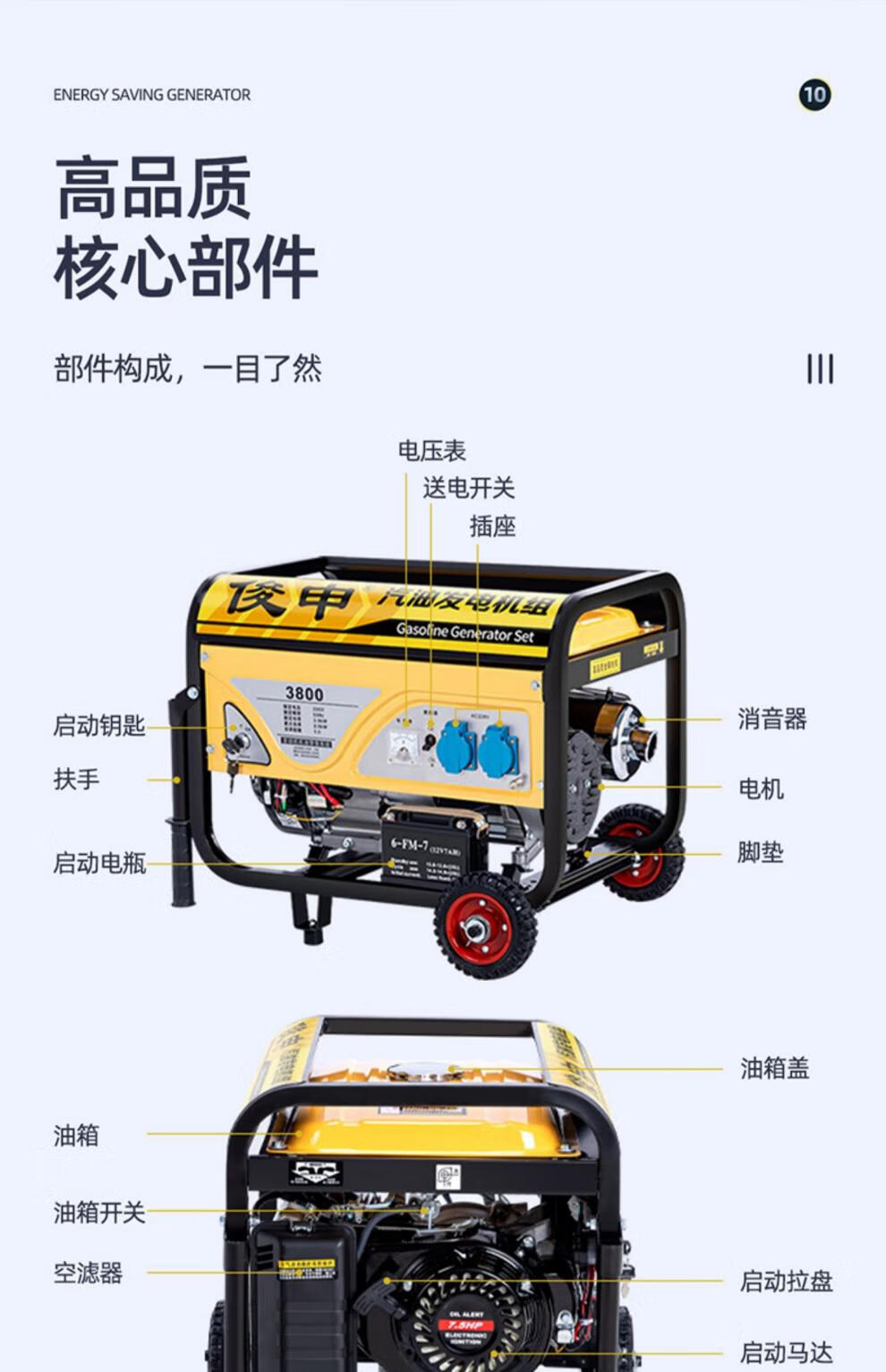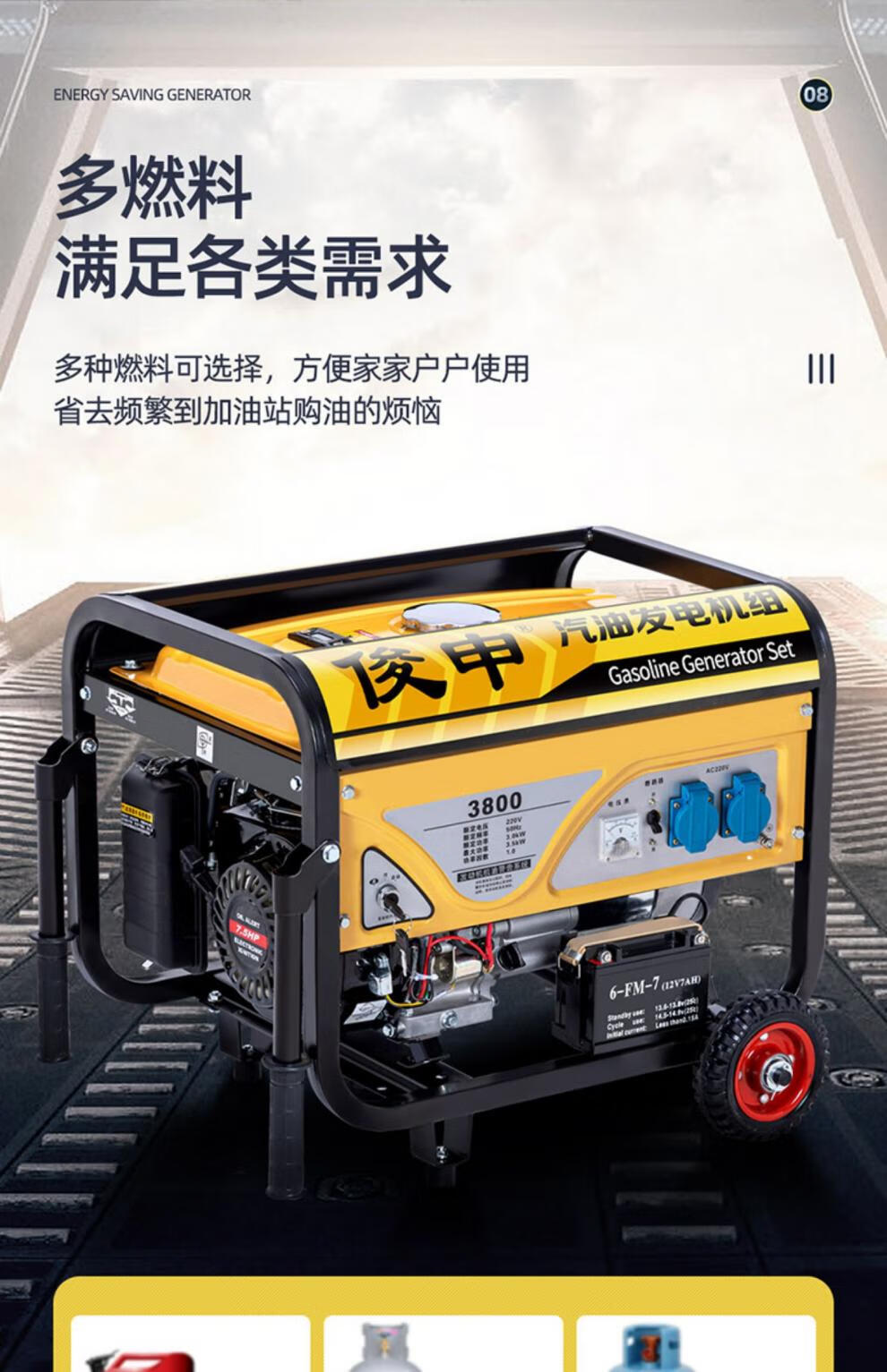 Shantou Lincun gasoline generator 220V high power household small 380V 3KW5/6/8/10kW outdoor stall camping 3500W flashlight dual start + burning gasoline 220v