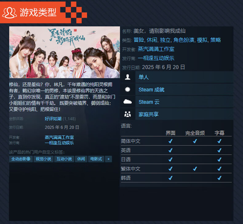 Steam Beauty Please Don't Influence Me to Become an Immortal National Region Activation Code CDKey PC Chinese Genuine Game Standard Edition