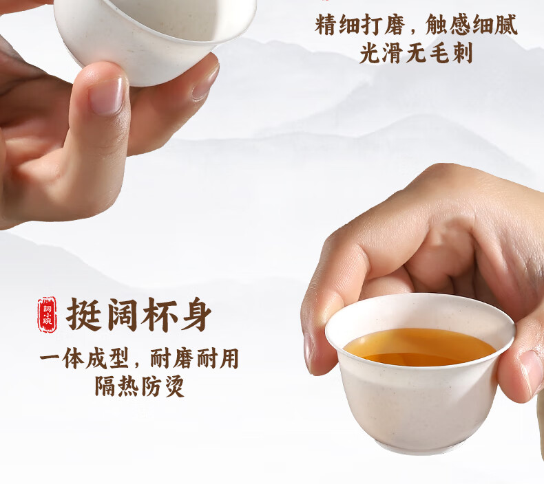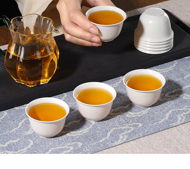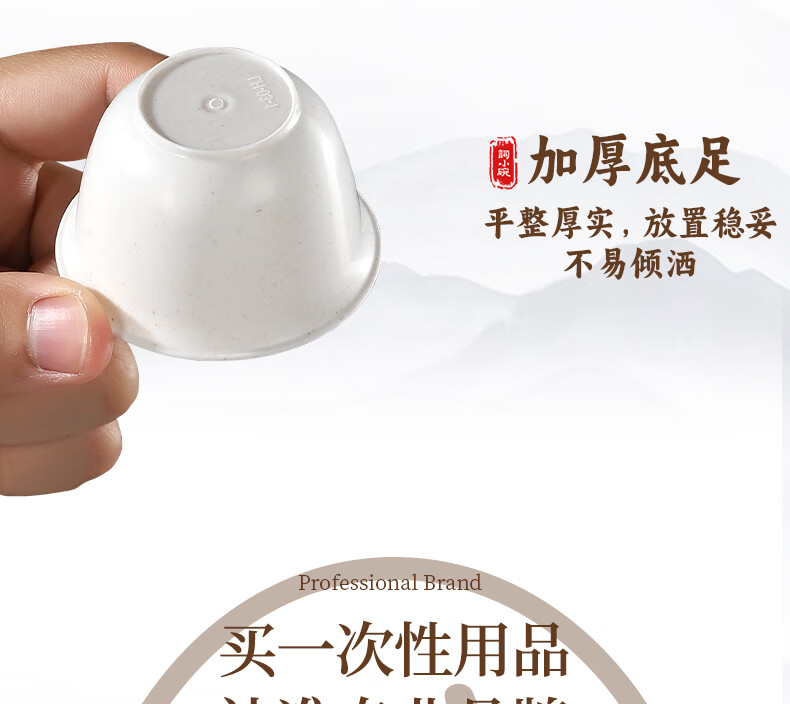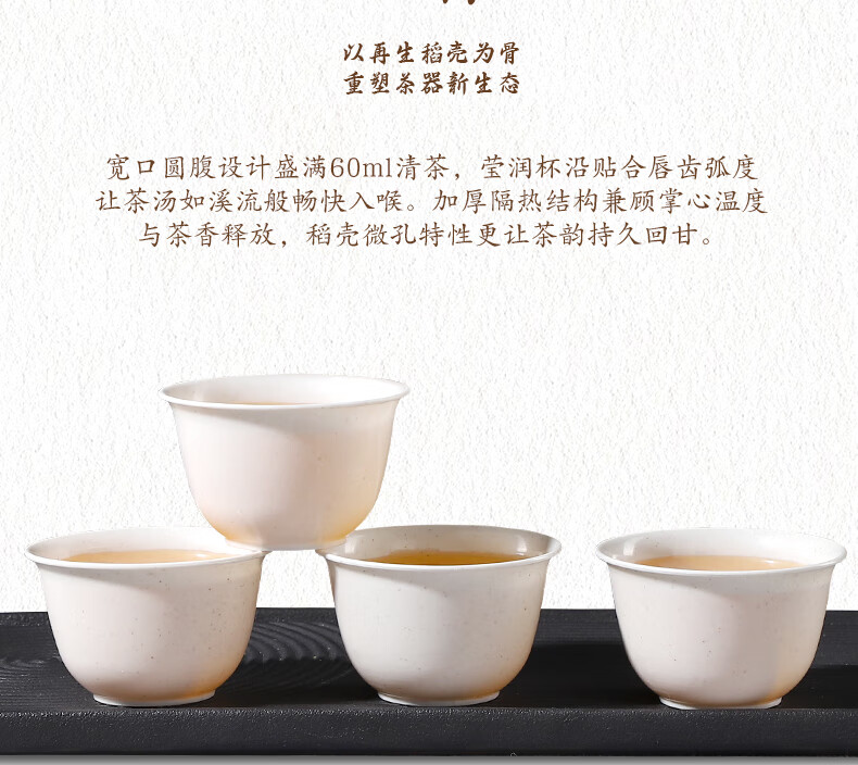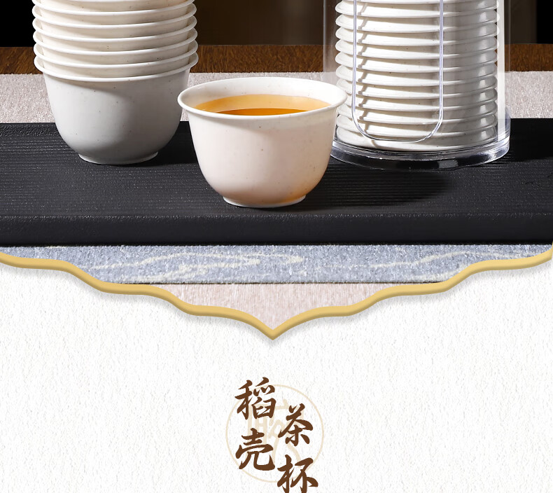 Magic Bean Shenghuo Rice Husk Disposable Water Cup Kung Fu Tea Cup Small Portable Tea Set Office Home Drinking Cup Thickened Rice Fragrance Cup 60ml 4 pack (200 pieces) + gray cup holder