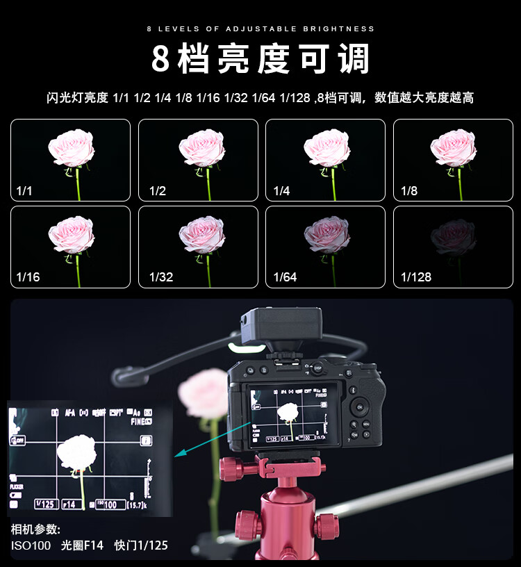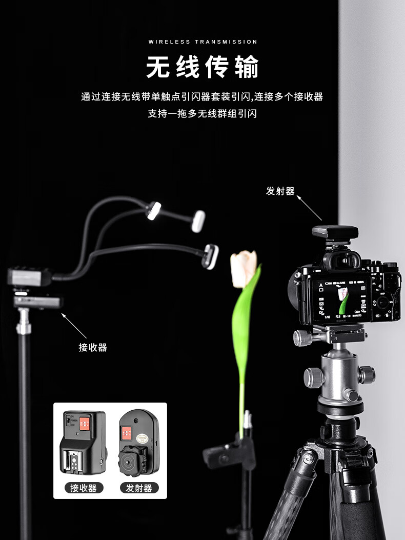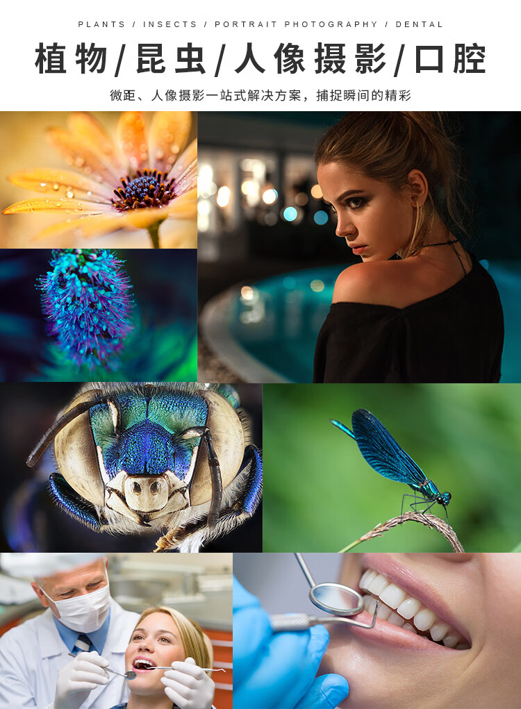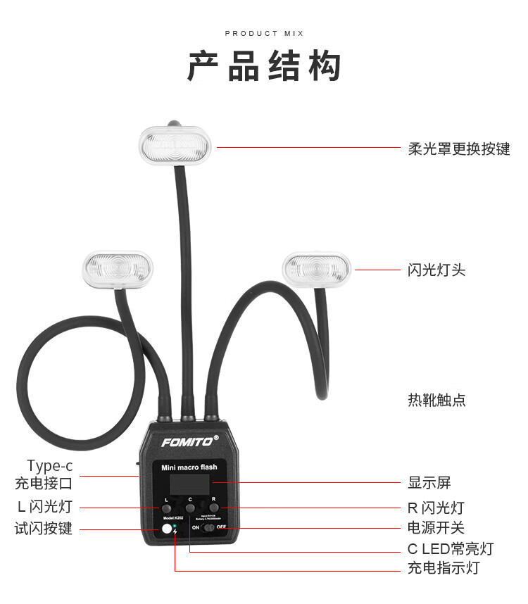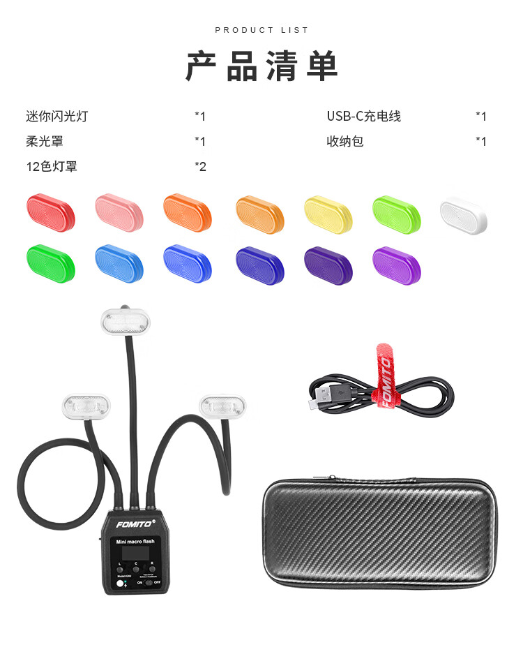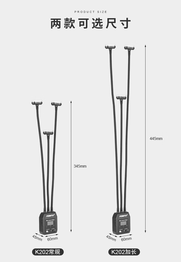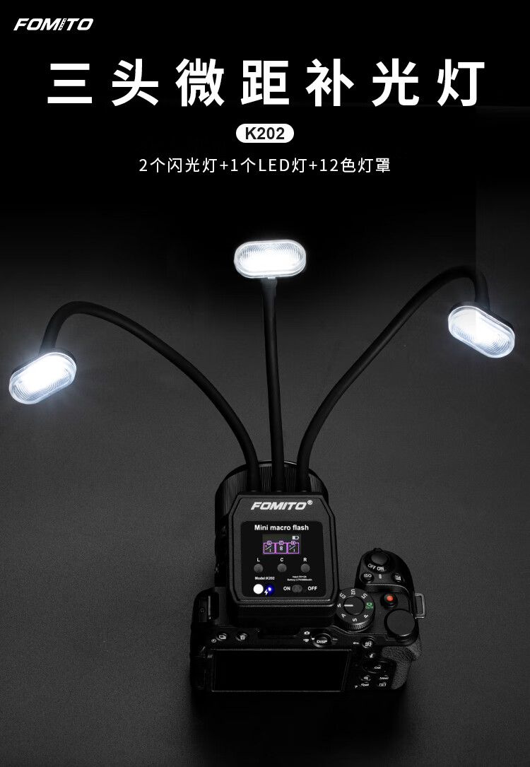 FOMITO three-head macro flash LED photography fill light macro insect jewelry dental external xenon flash with 12-color cover extended arm Three-head macro flash (extended + 12-color cover*2)