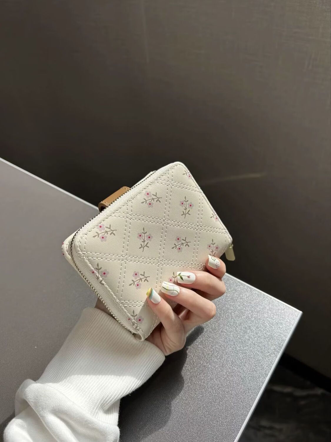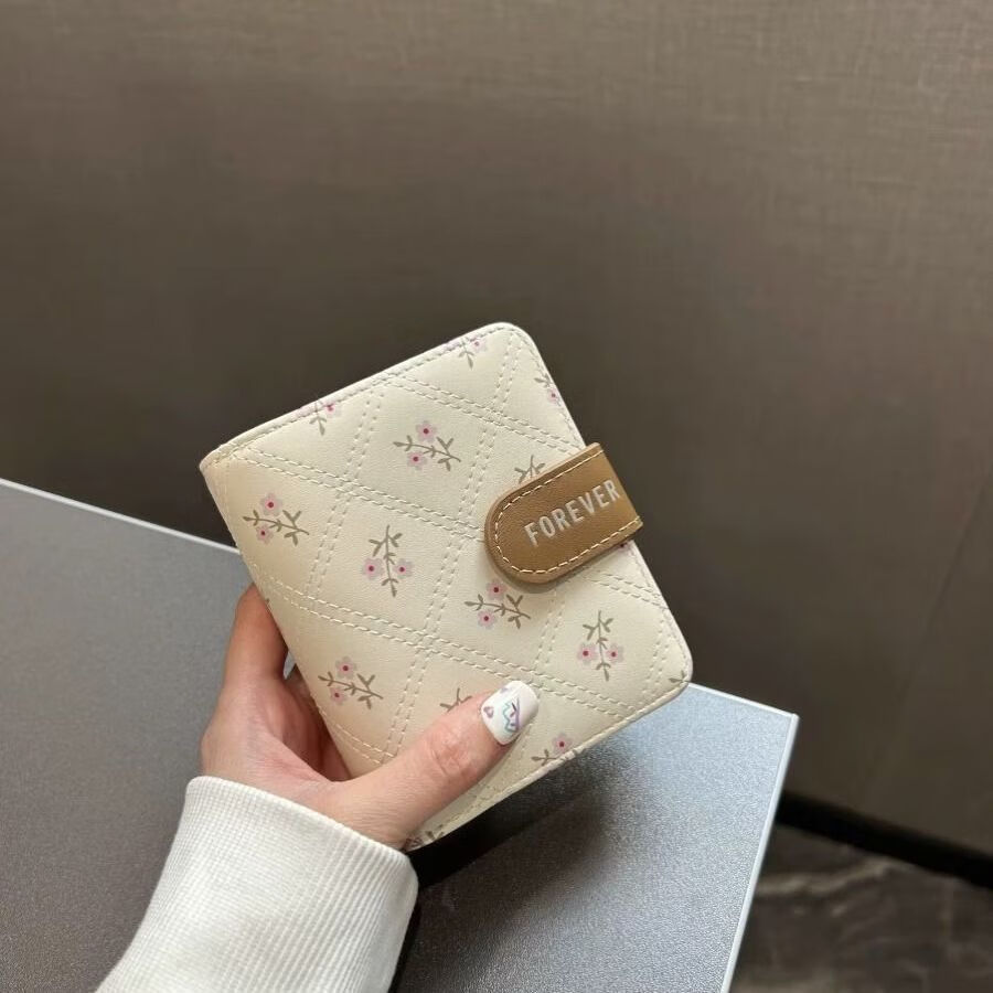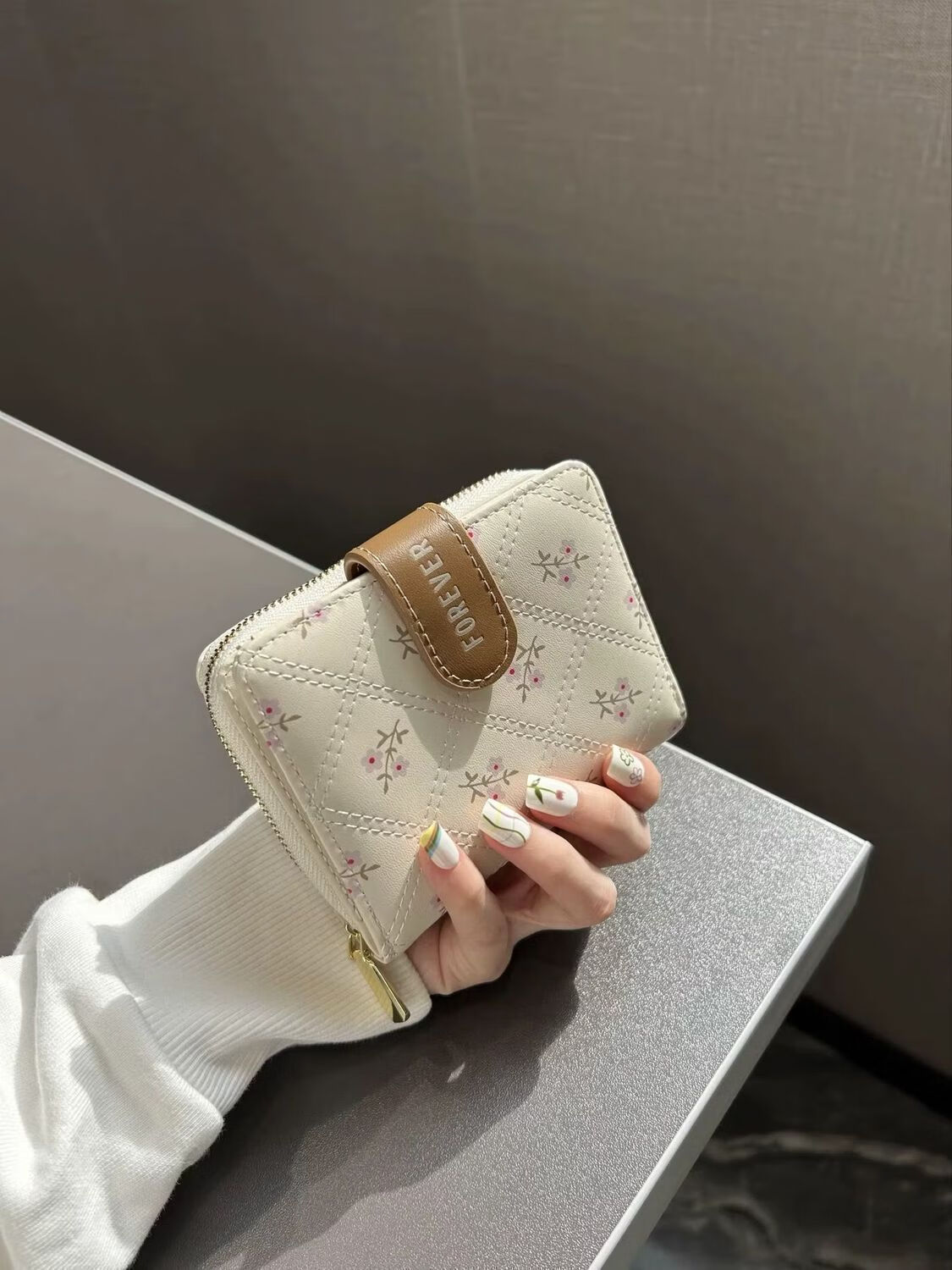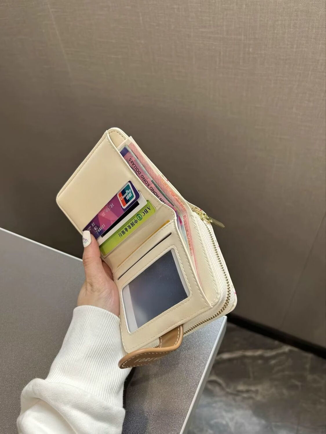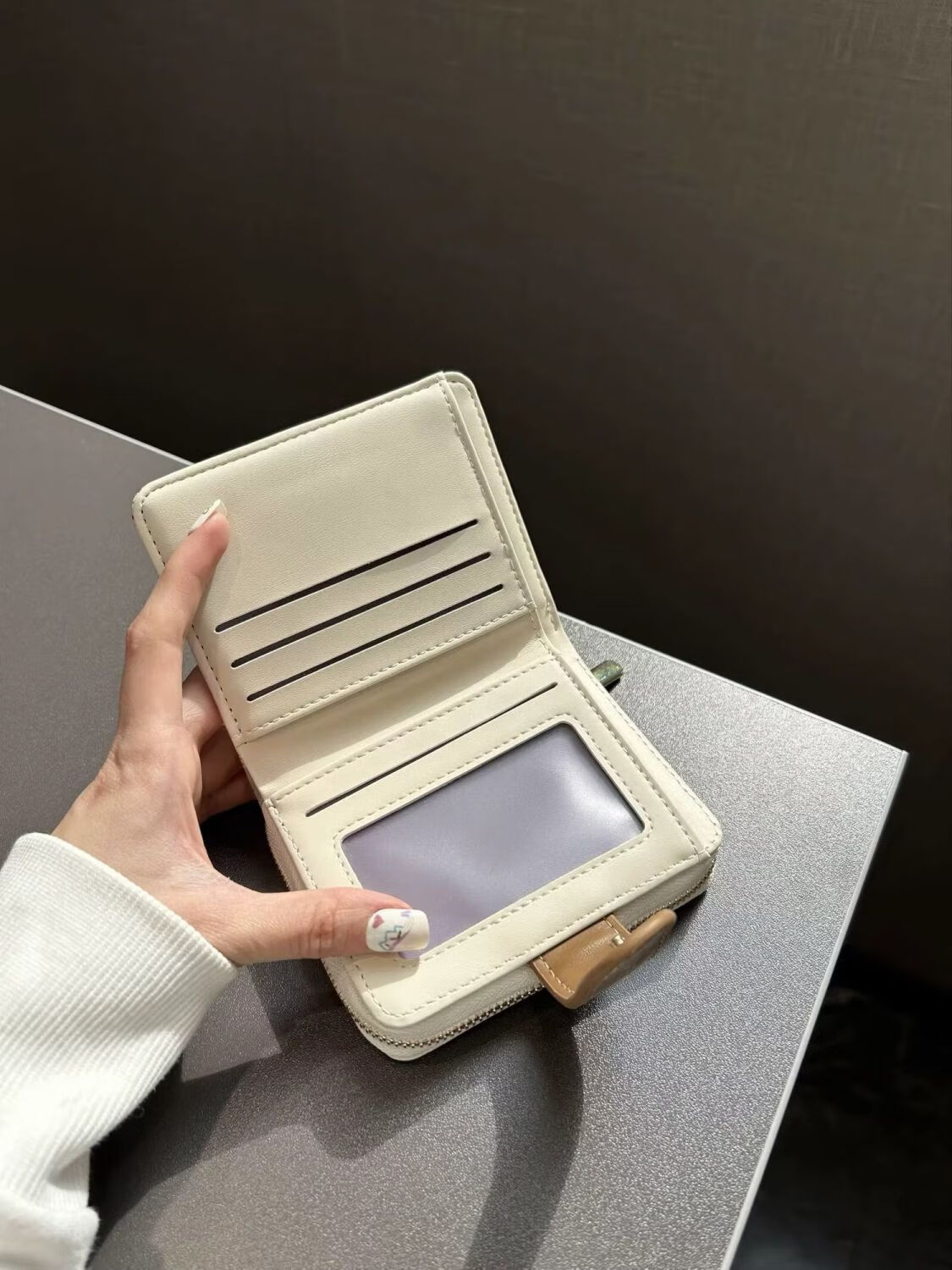 Chengyang's new women's wallet, high-looking diamond embroidery thread, simple version, small fresh coin purse, short wallet, compact card holder, beige # 11 card slots + 1 mirror window slot + 1 banknote slot, simple anti-magnetic style